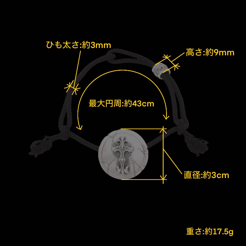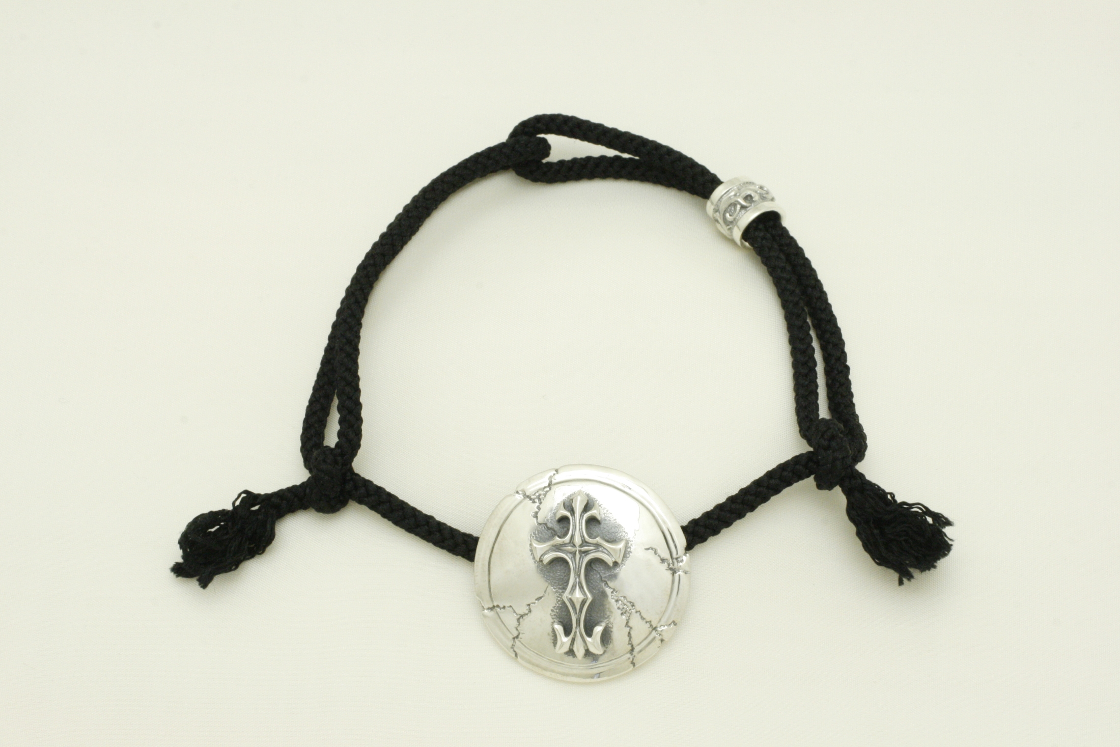 ブラッドレスクロスをあしらったコンチョをメインとしたアンクレット。コンチョの表
