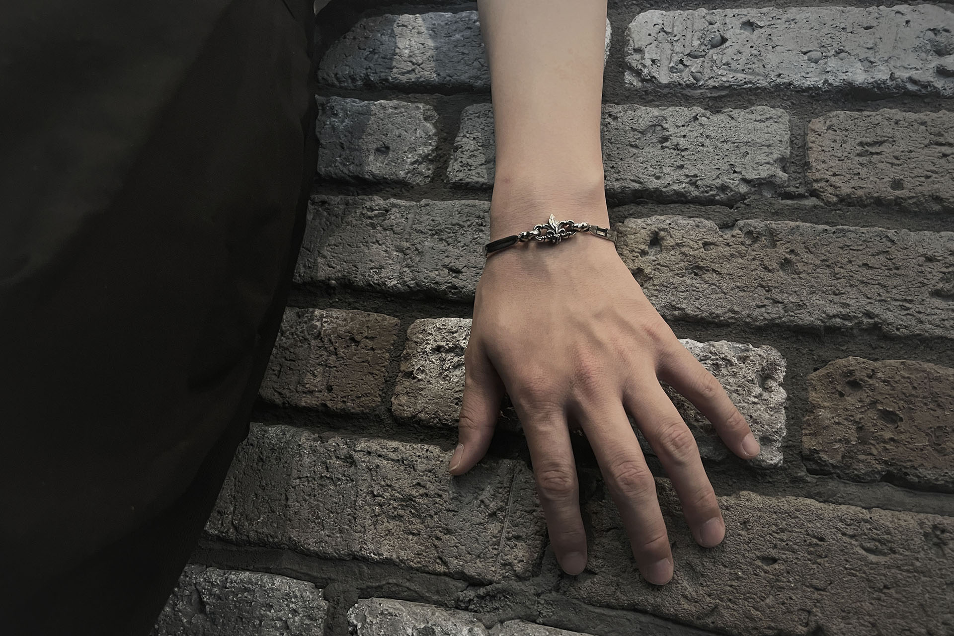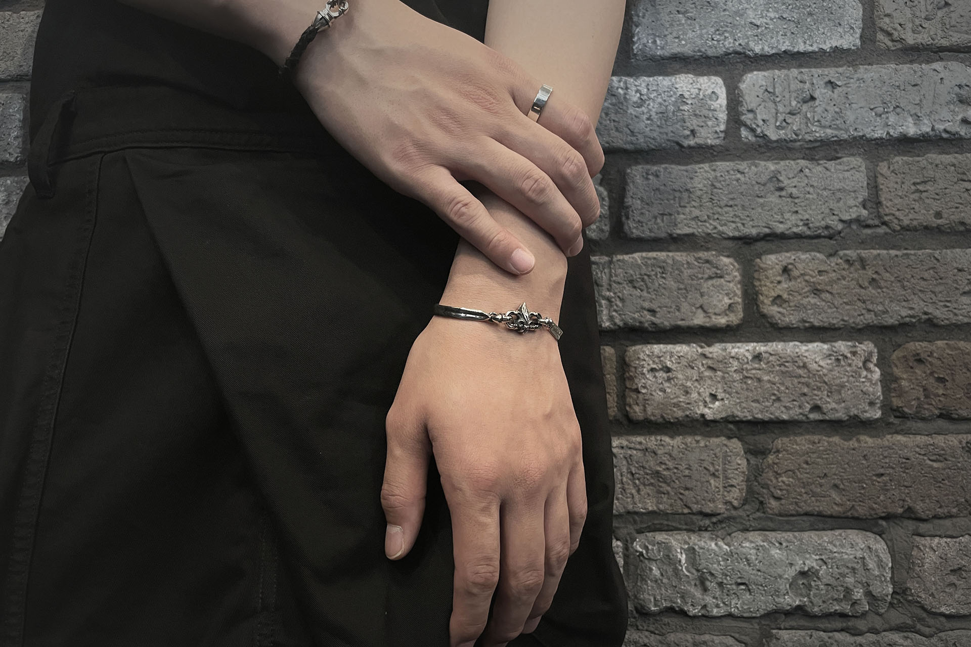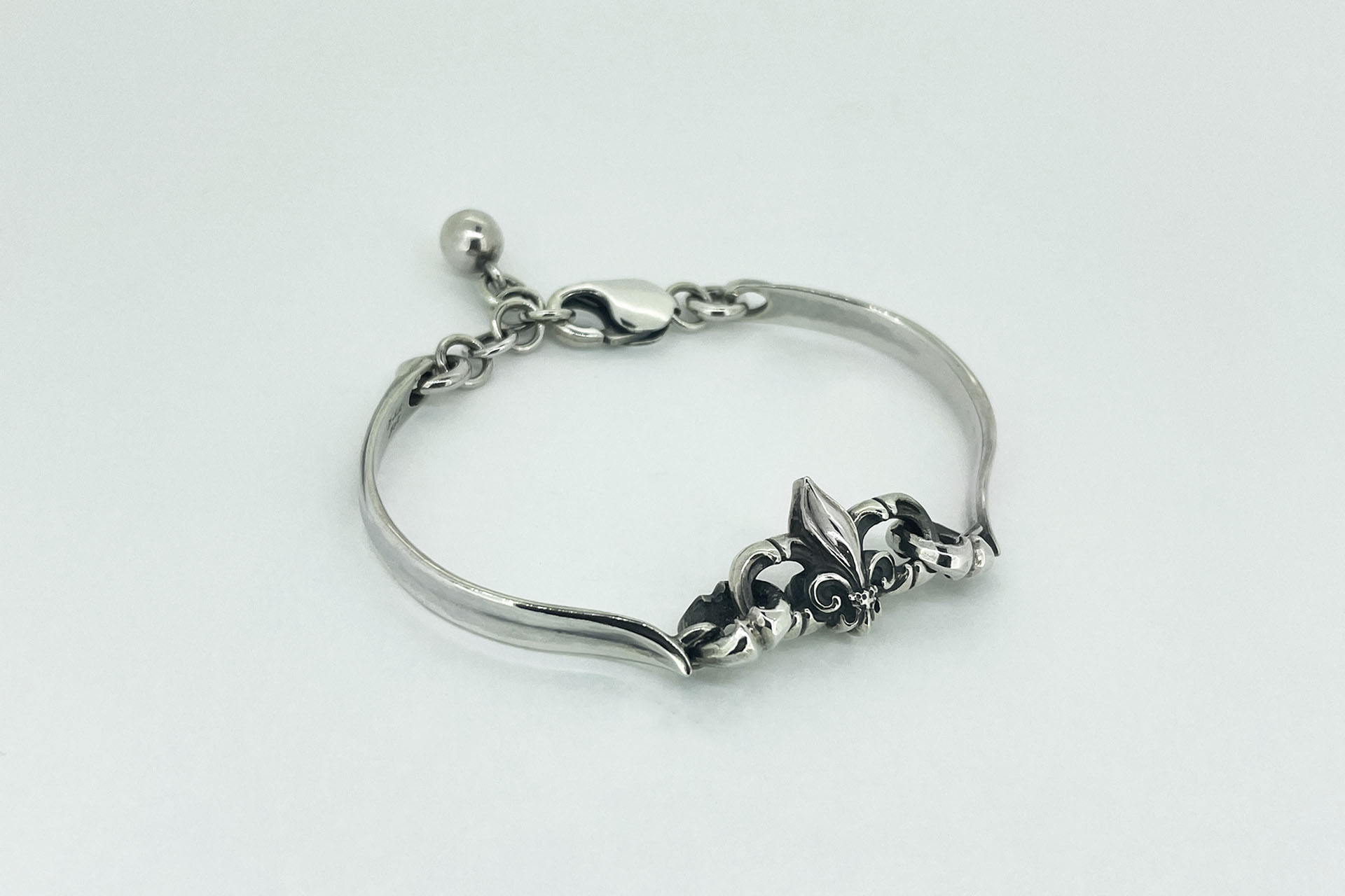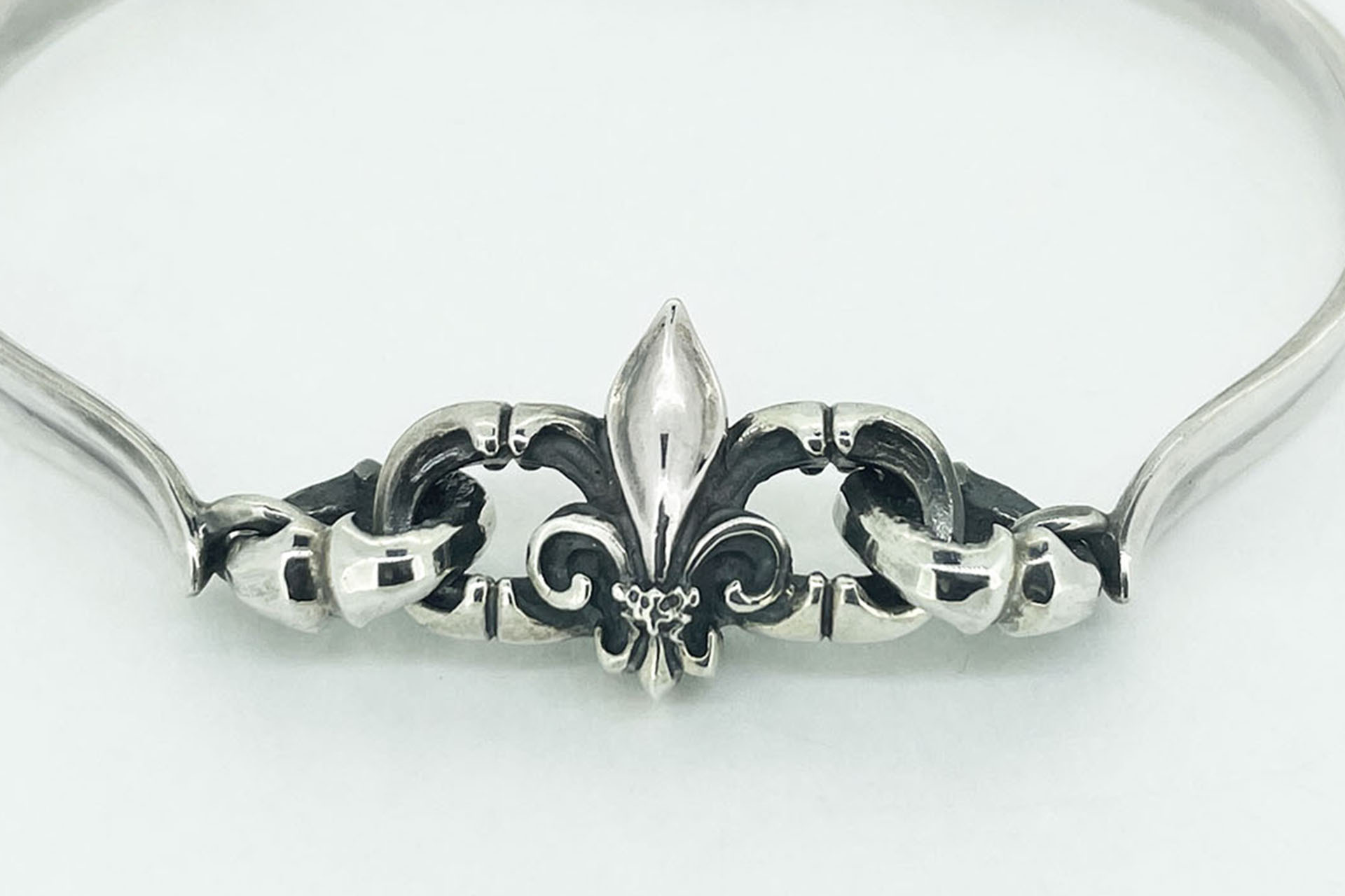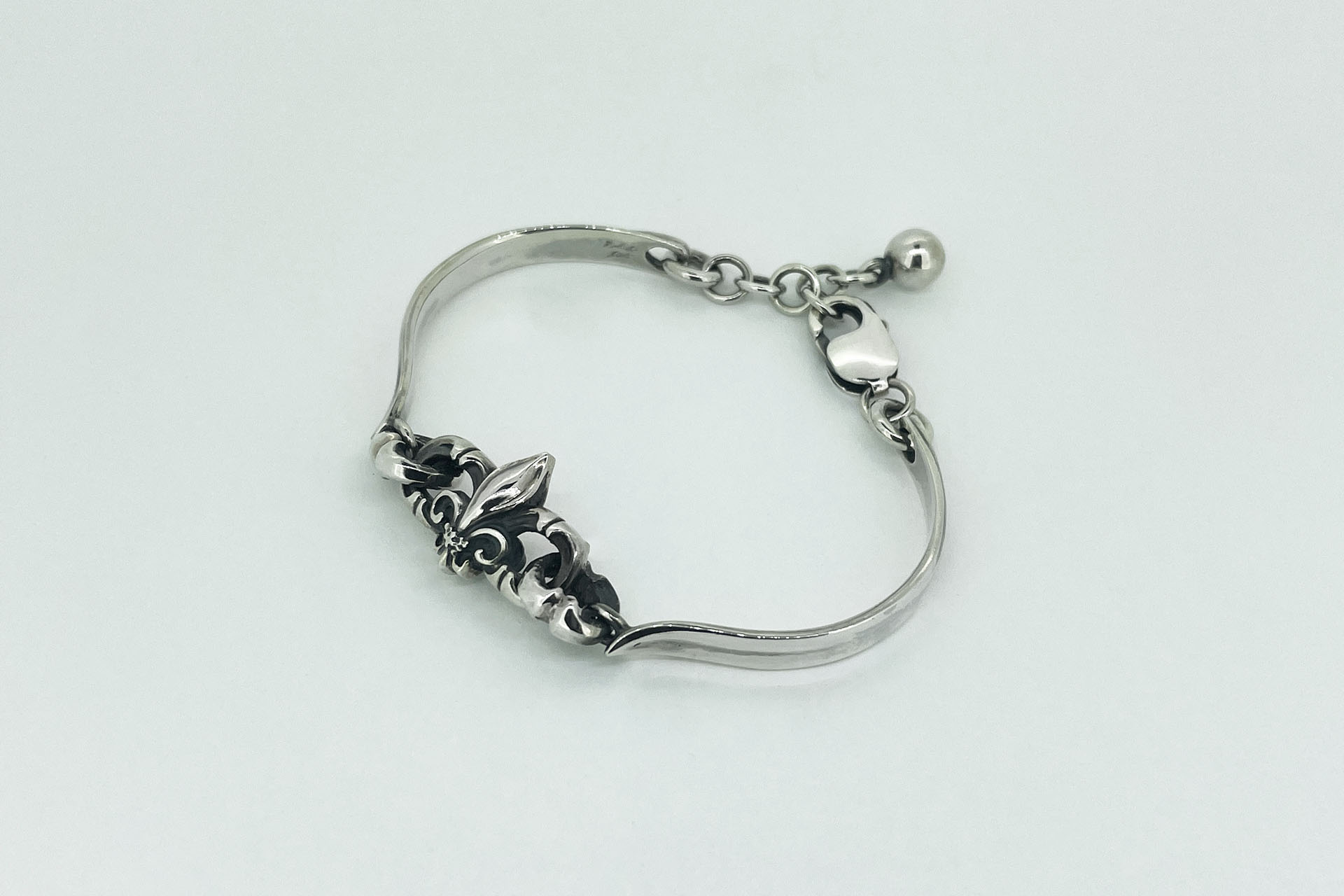 ブレスレットの正面中央に百合のモチーフをアクセントにしたバングル風のブレ