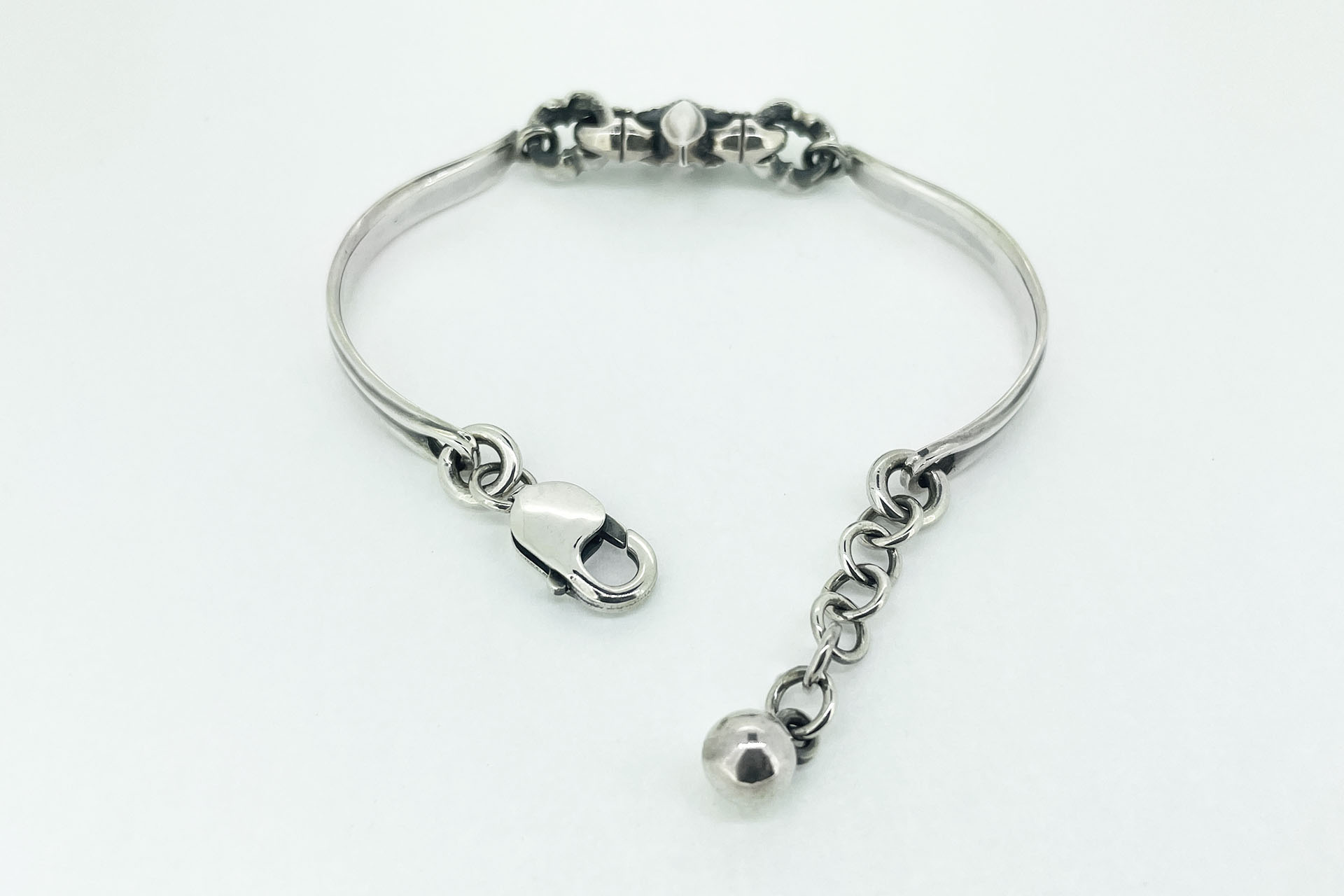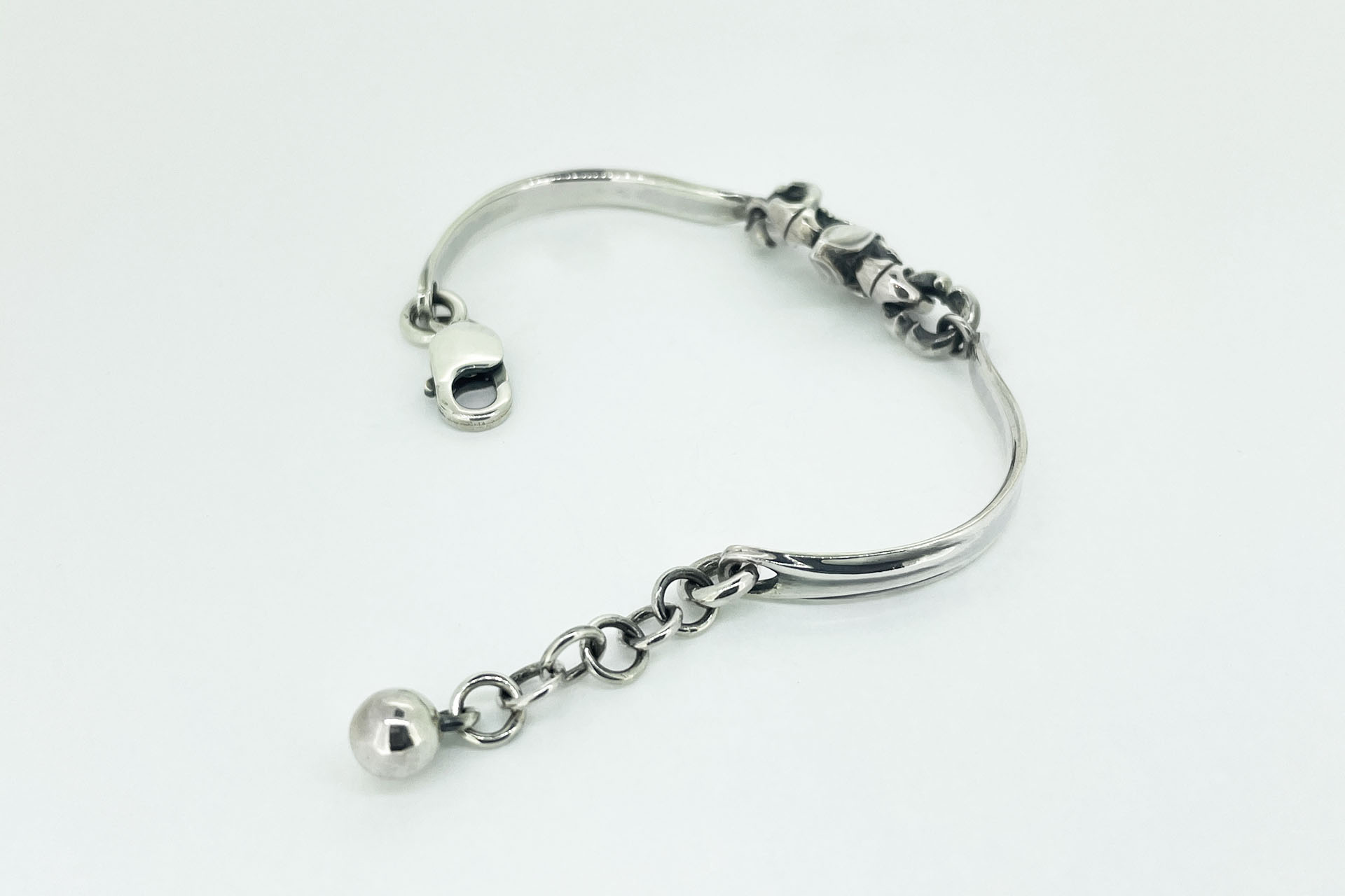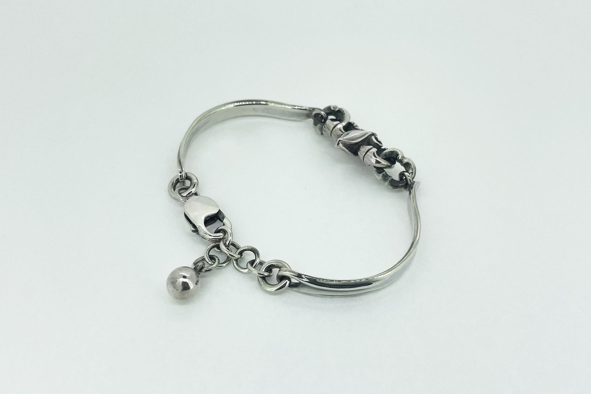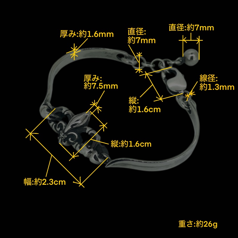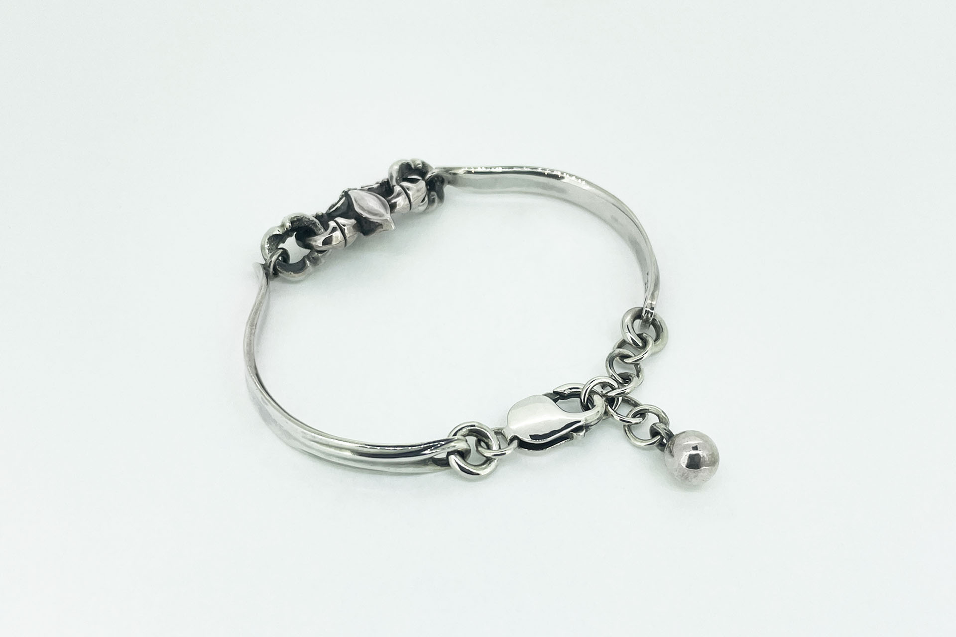 ブレスレットの正面中央に百合のモチーフをアクセントにしたバングル風のブレ