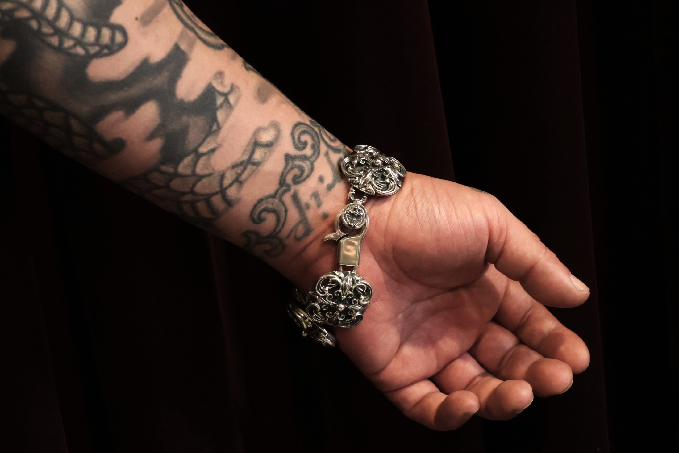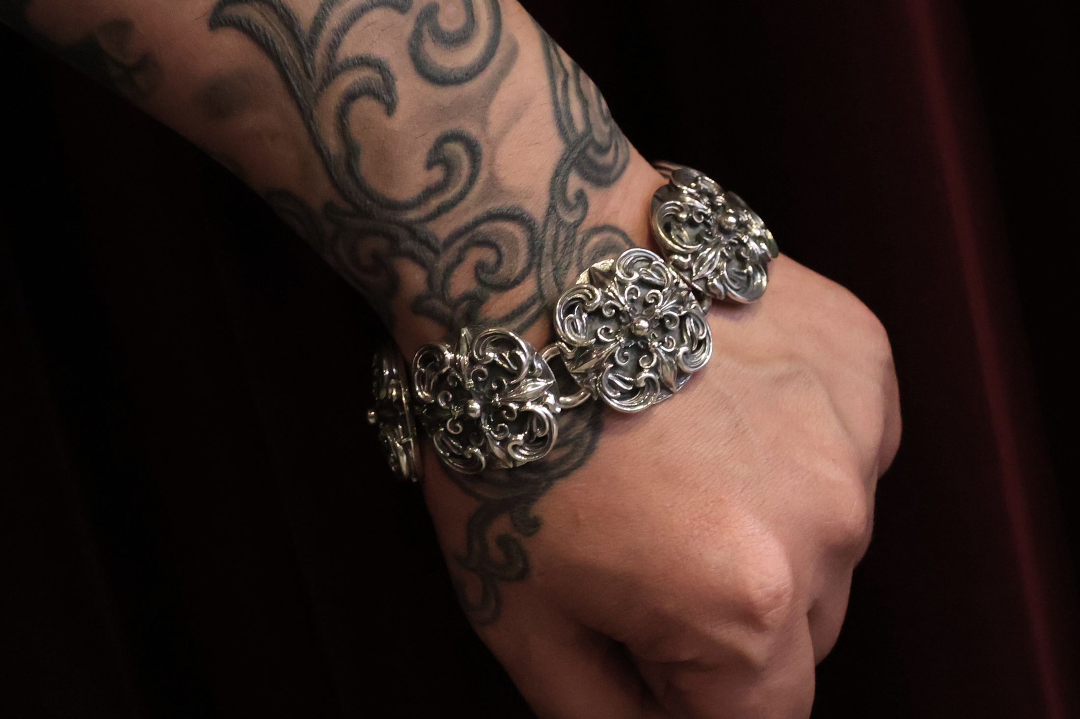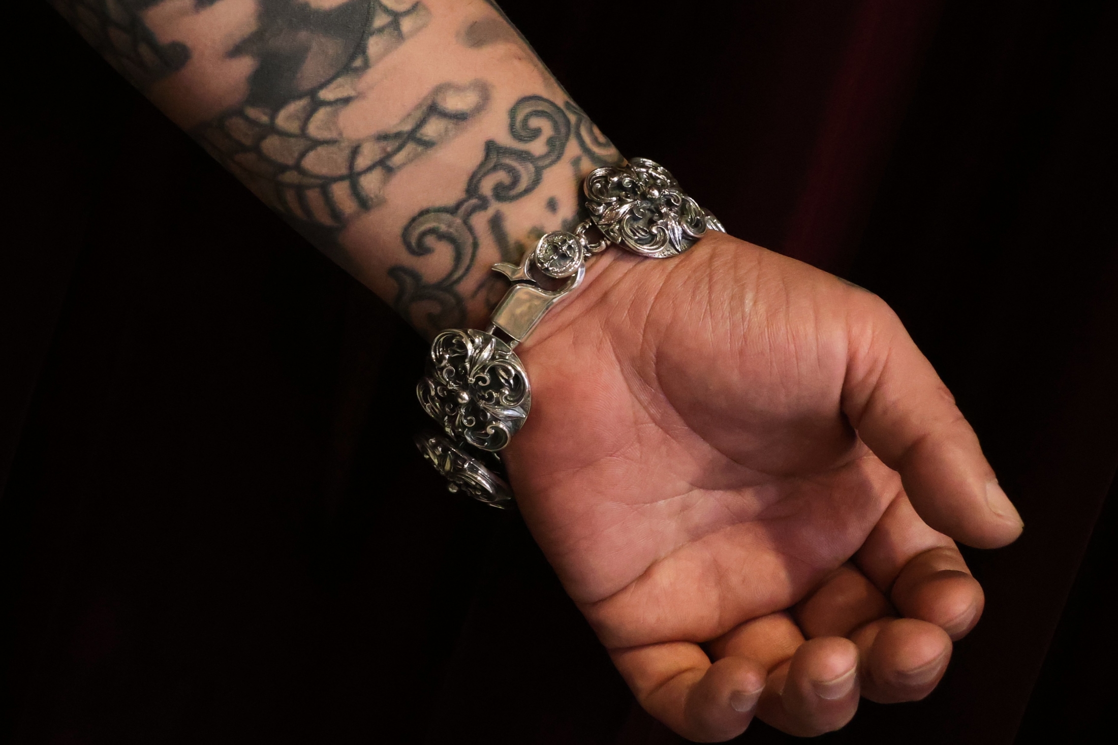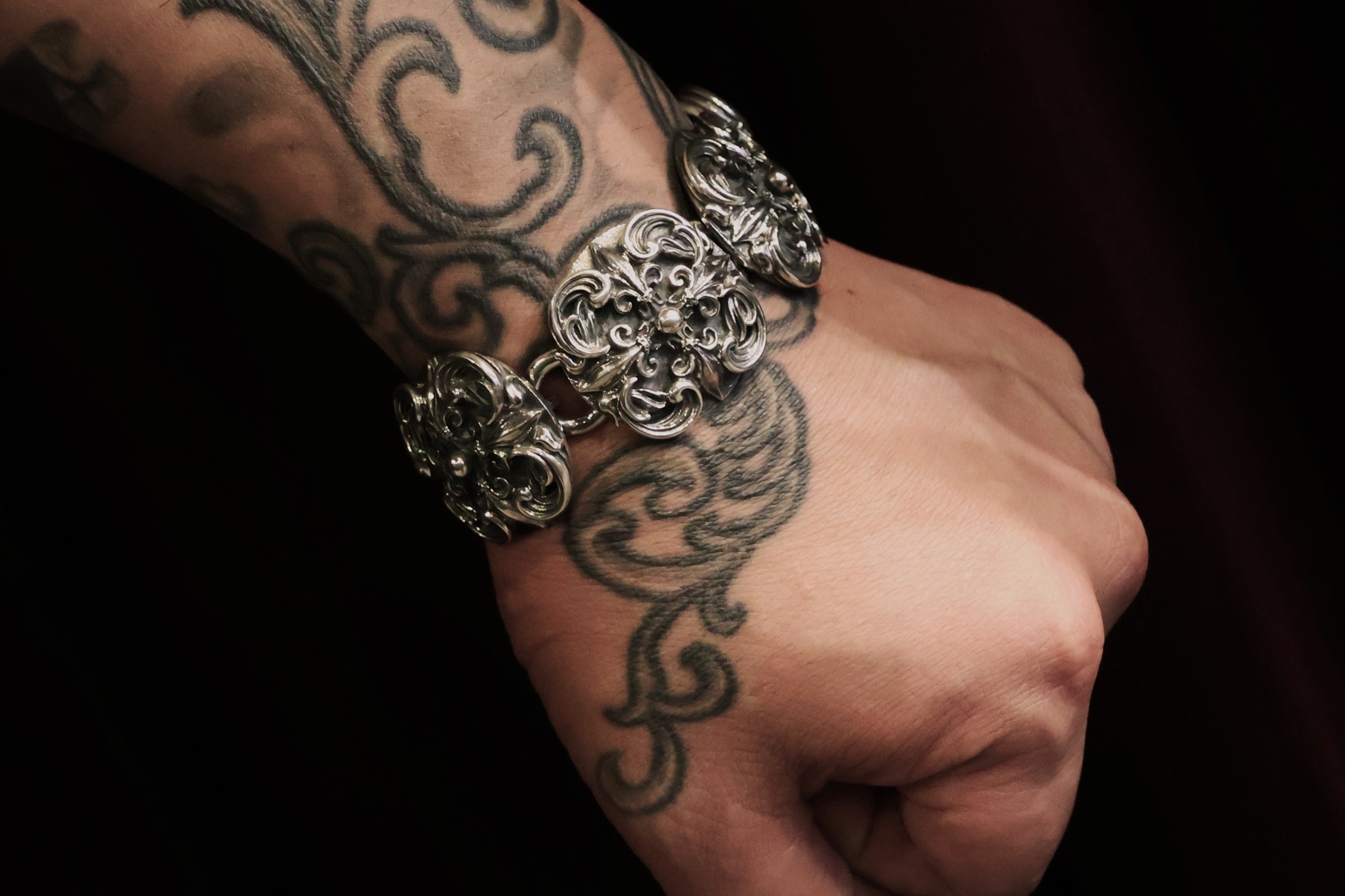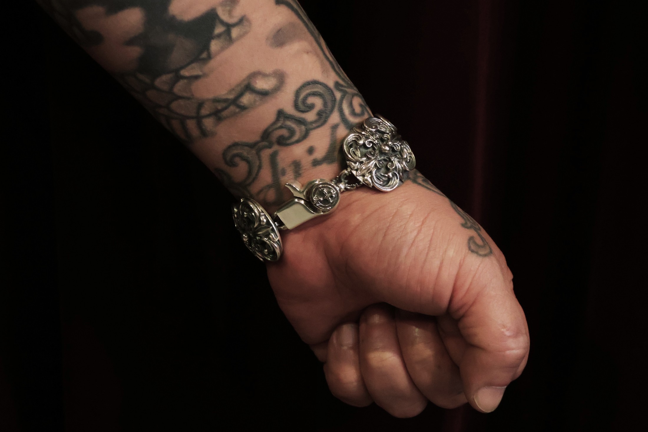 クロスをサークル型のシルエットのパーツとしてデザインしたコマが手首を一