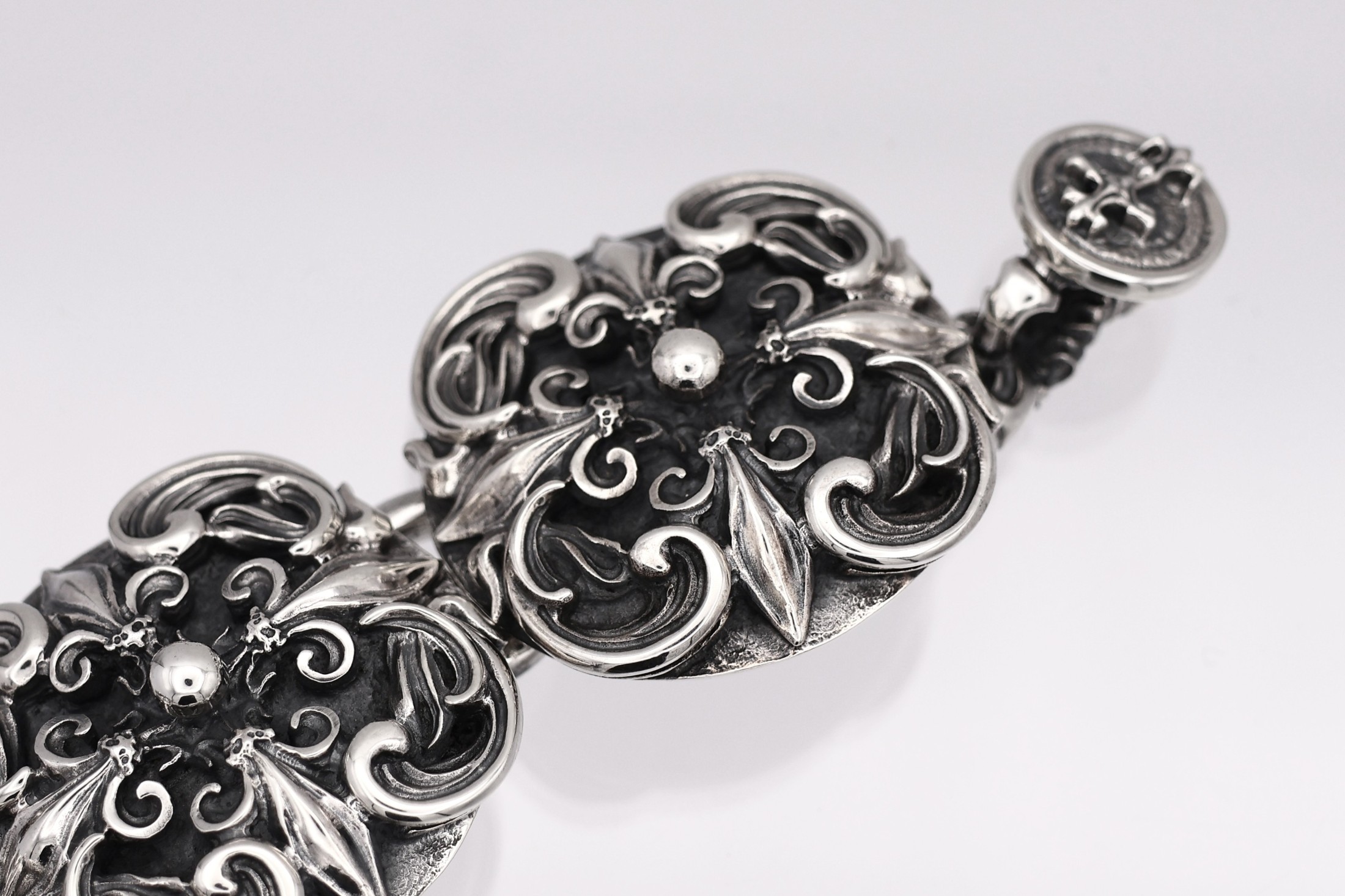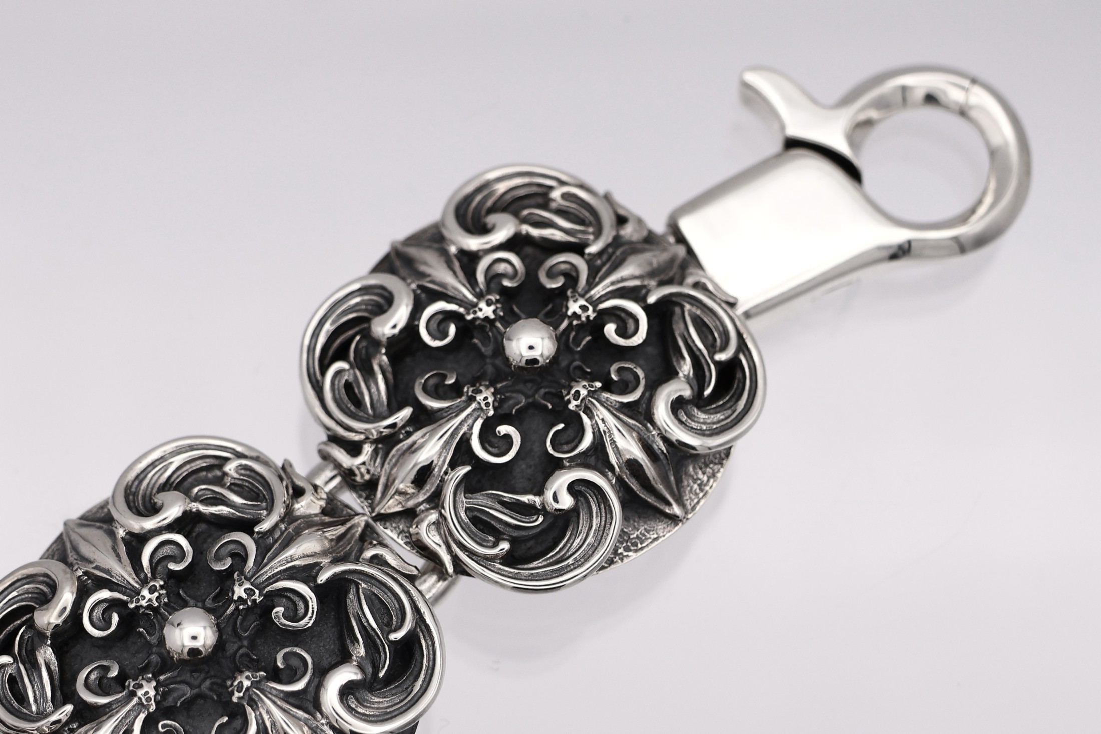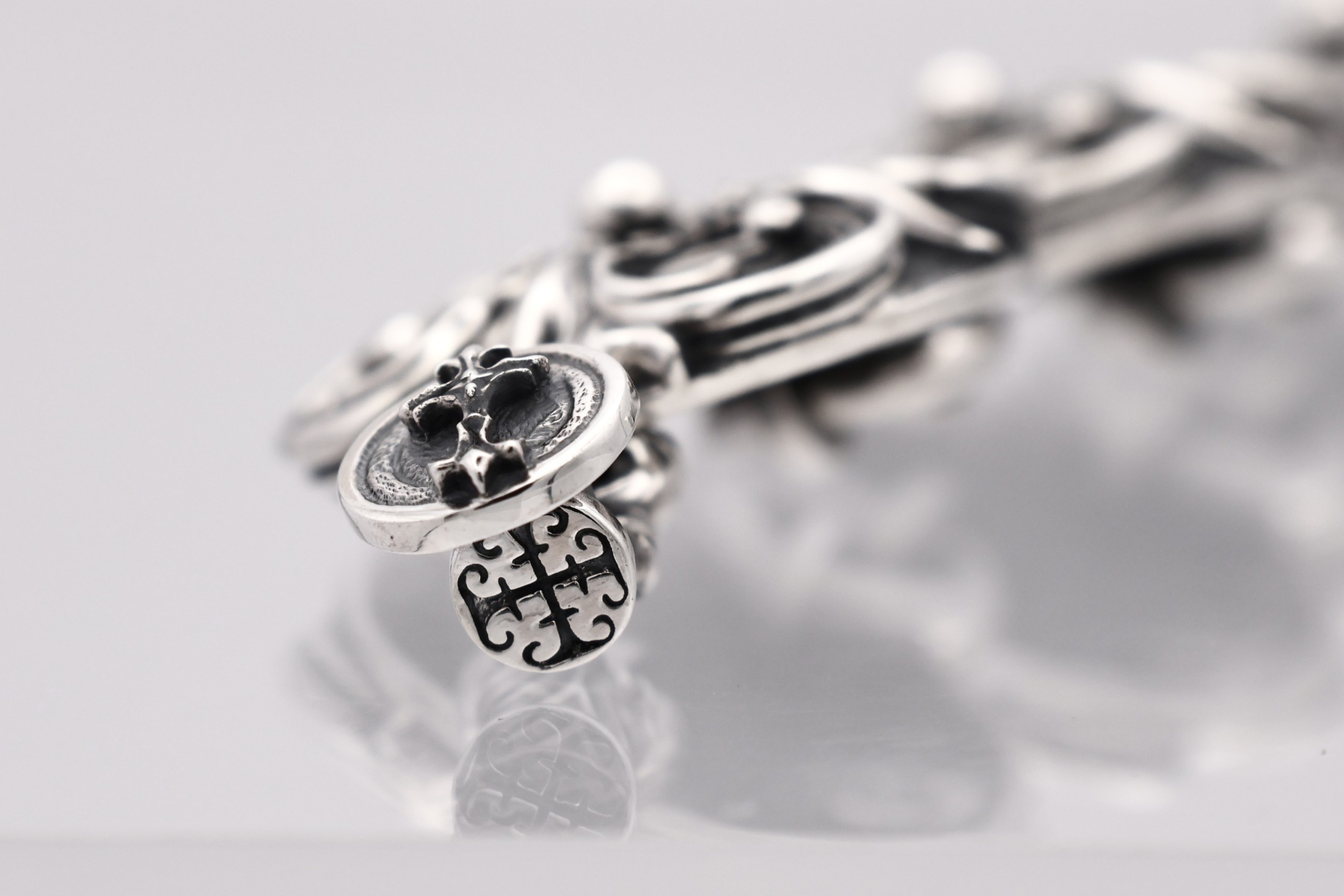 して表現している。連結する丸カンのデザインがパーツの内側にくるように造