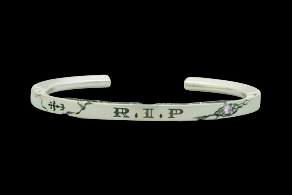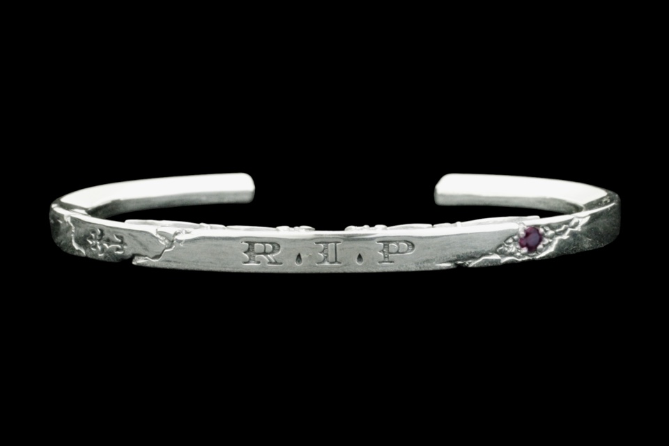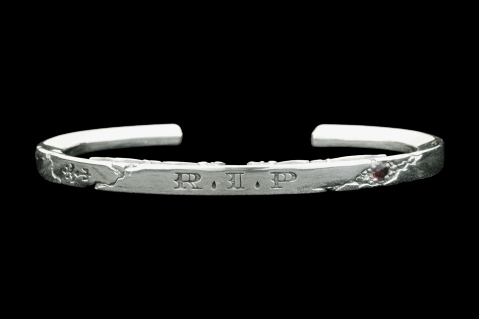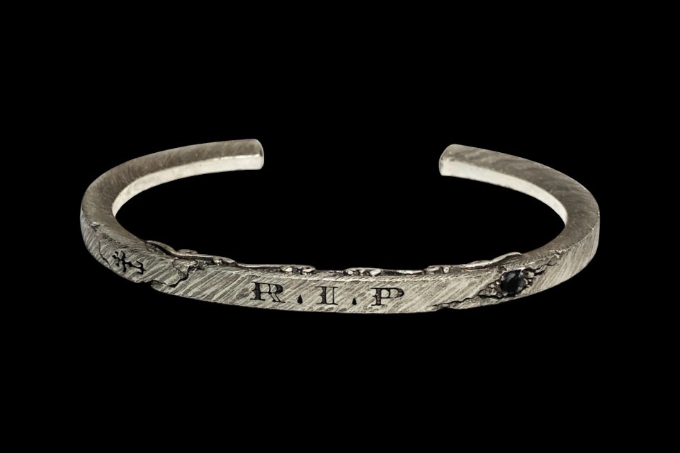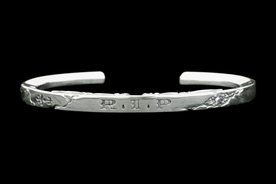 ◆INTRODUCTION 「R.I.P」はRest in peaceの略で、和訳は"安らかに眠れ"という意味。故人を想う言葉だが、「R.I.P」の文字を全面に押し出すこのバングルの解釈としては、愛する人との永遠のつながりや尊く思う気持ちを意味して製作されている。R.I.Pの文字デザインは欧米的なフォントのイメージでF.A.Lオリジナルにデザインをしていて、ドットの部分はティアドロップ状の涙型のデザインになっている点も特徴的。幅広いコーディネートが可能となるようにアプローチしたシンプルでありながらも個性を主張できる一品。