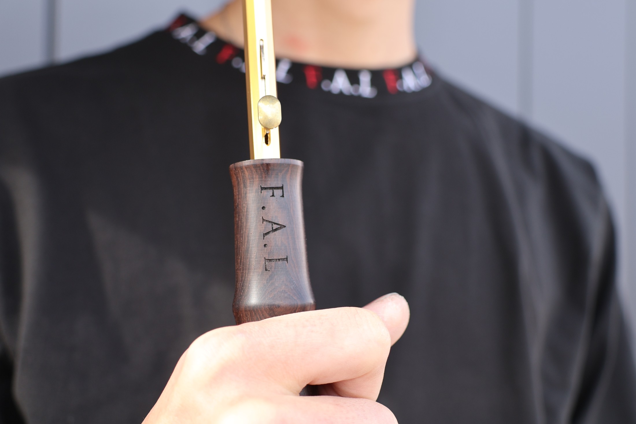 金色のシャフトに、ステッキのような木製ハンドルを組み合わせたF.A.Lのオリ