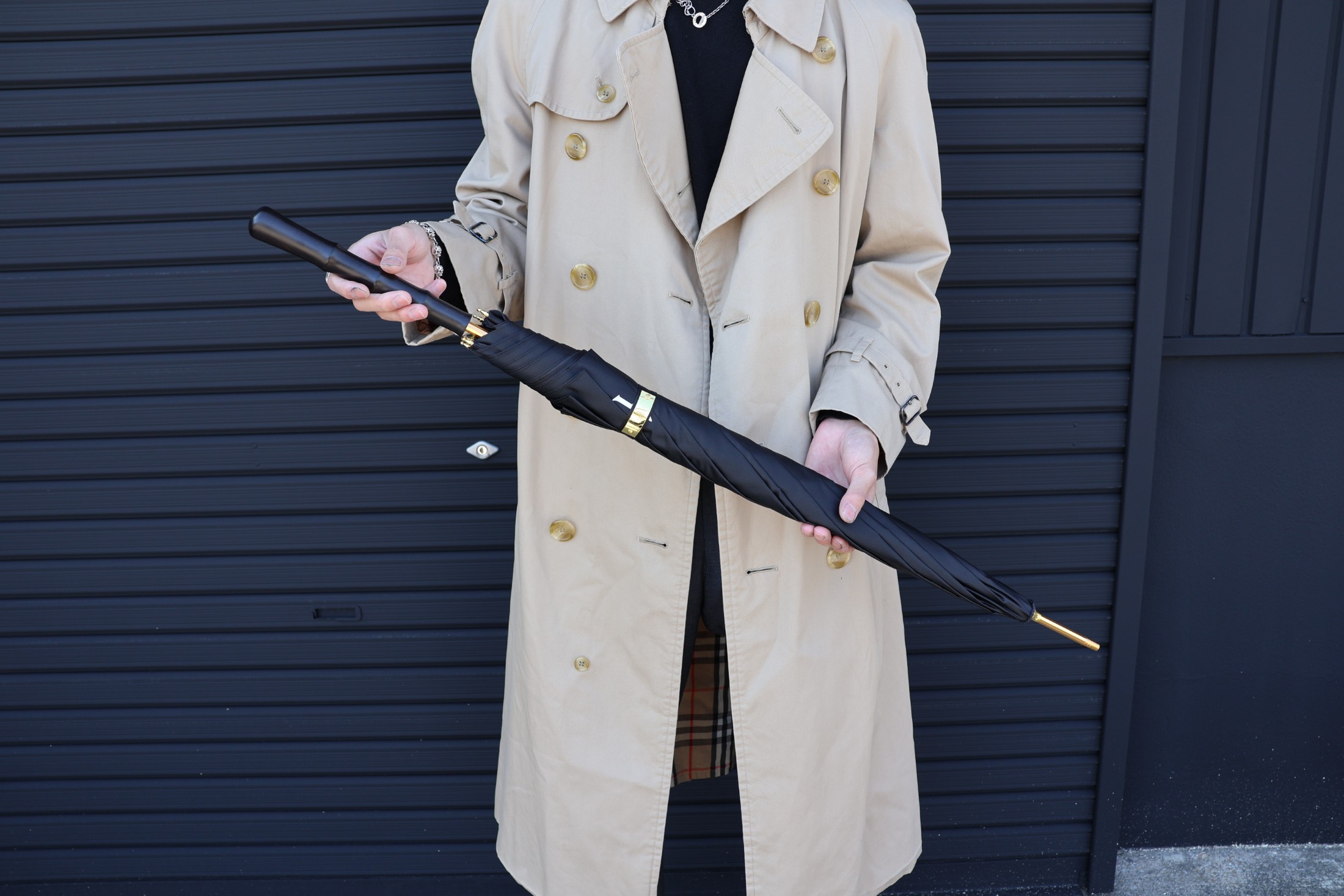 ジナル傘。外側はブランドロゴのみのシンプルな仕上げで、内側には大きく
