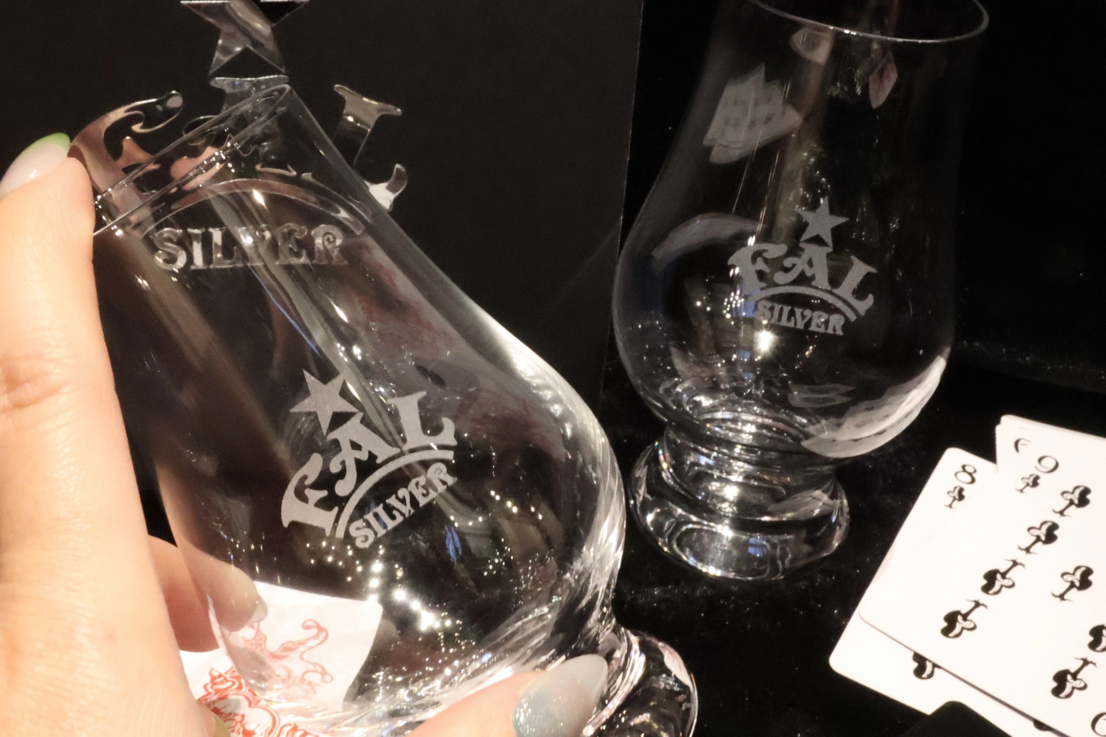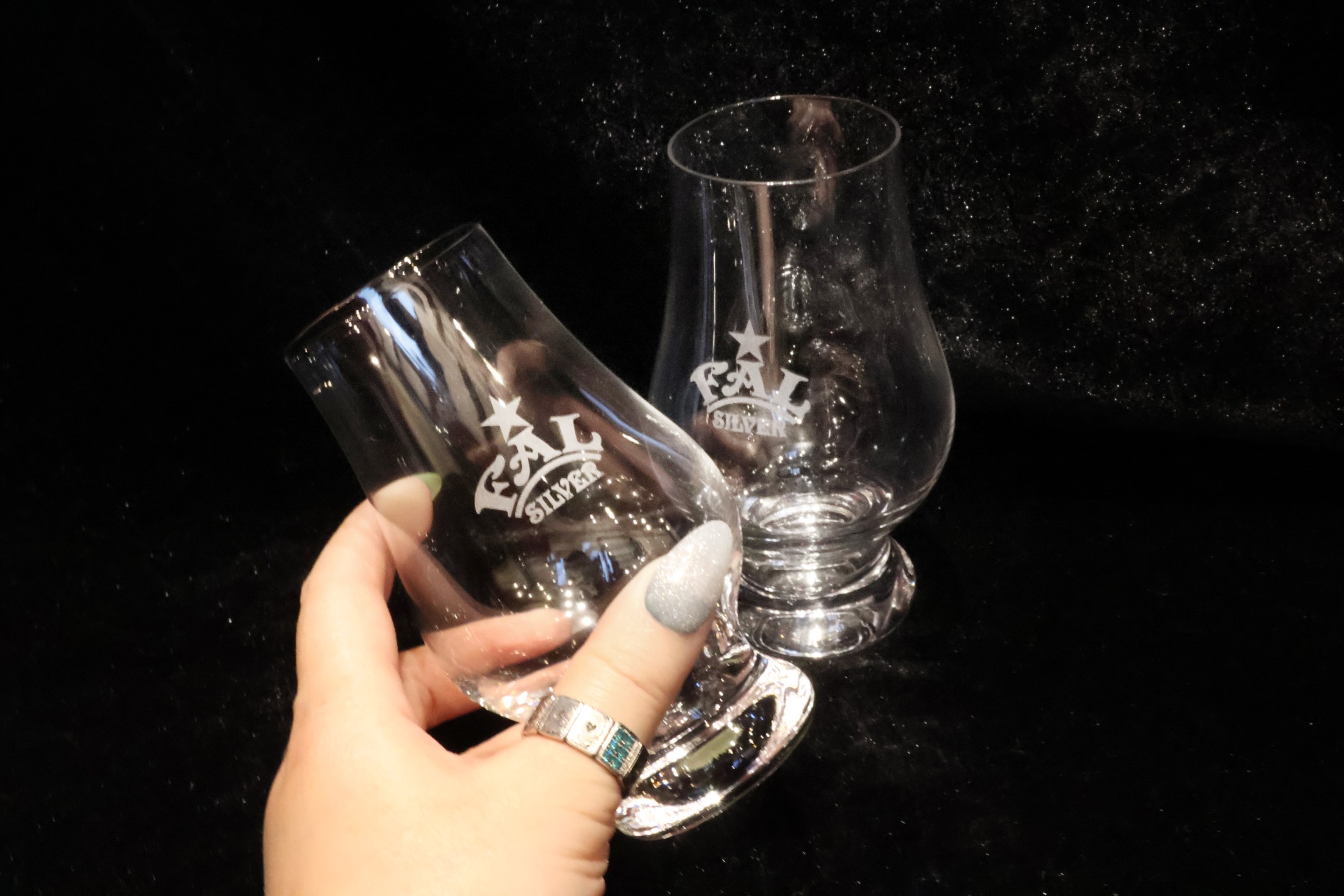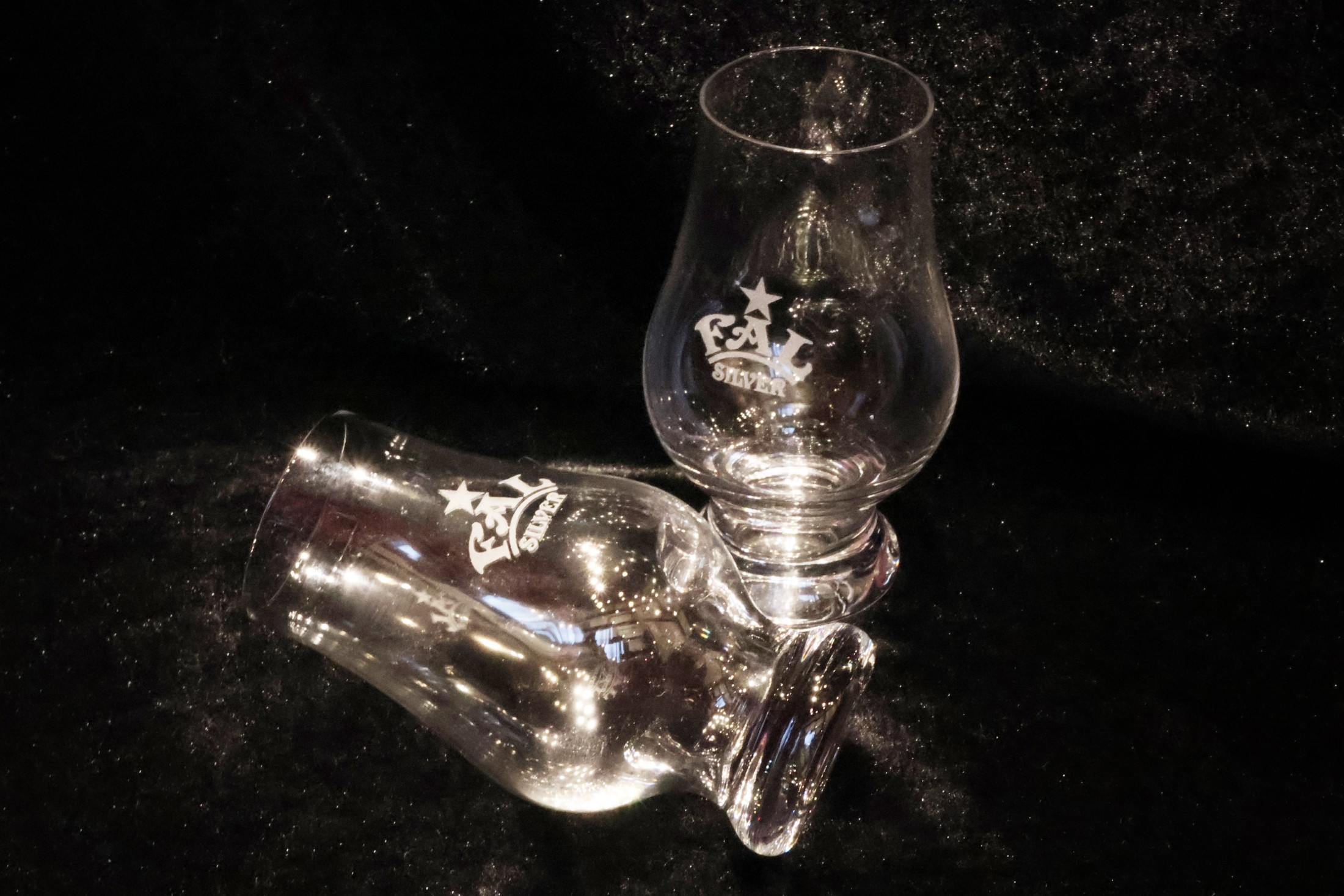集めやすく、テイスティングに適した形状。グラス本体はF.A.Lロゴのみを刻ん