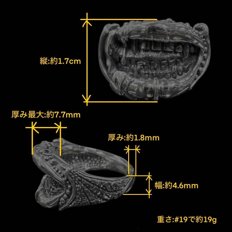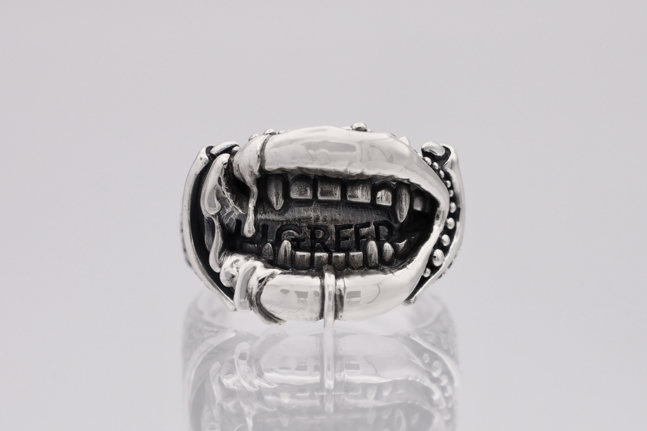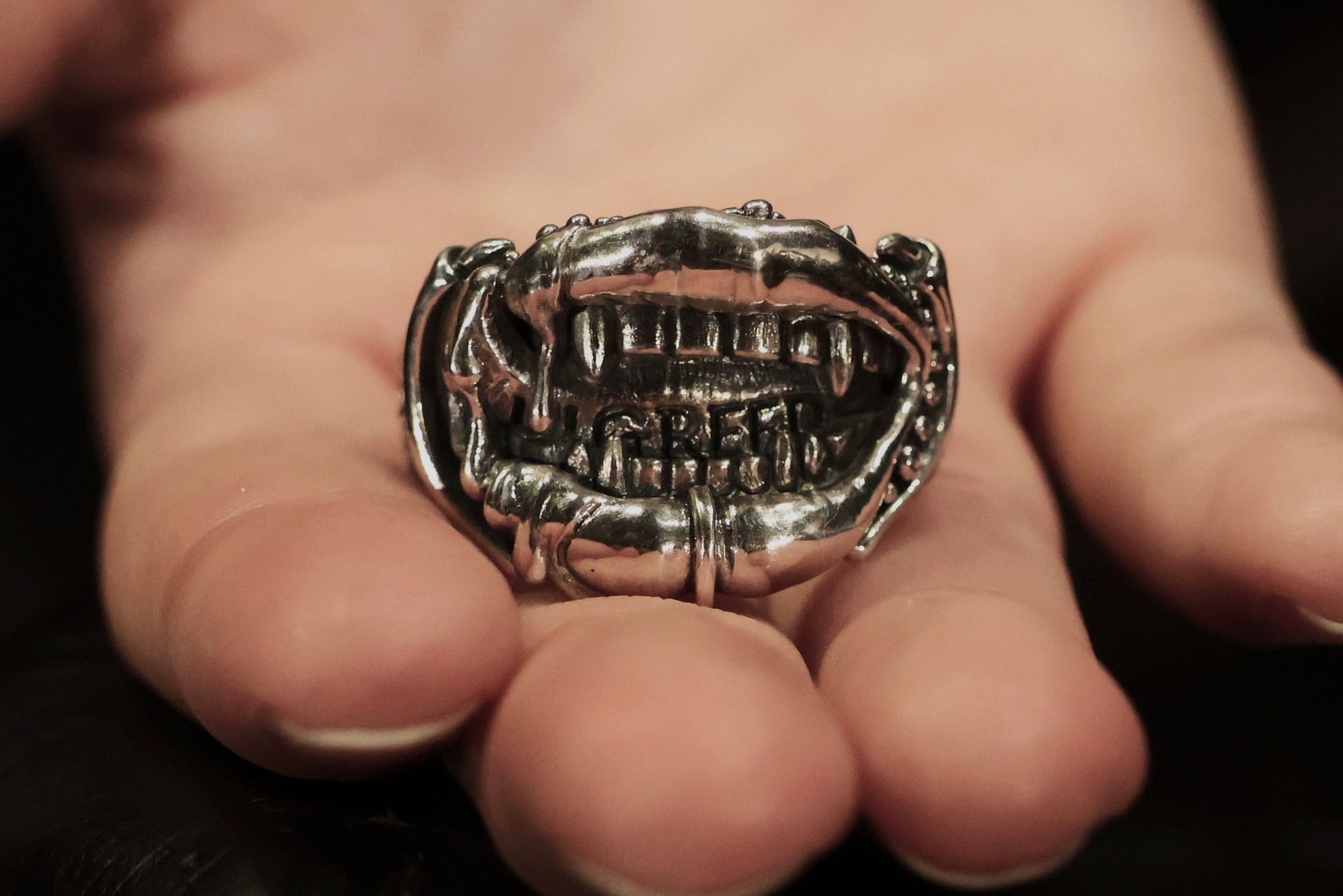 ンのリング。犬歯の位置に吸血鬼の牙を想像させる造形がされており、唇の中