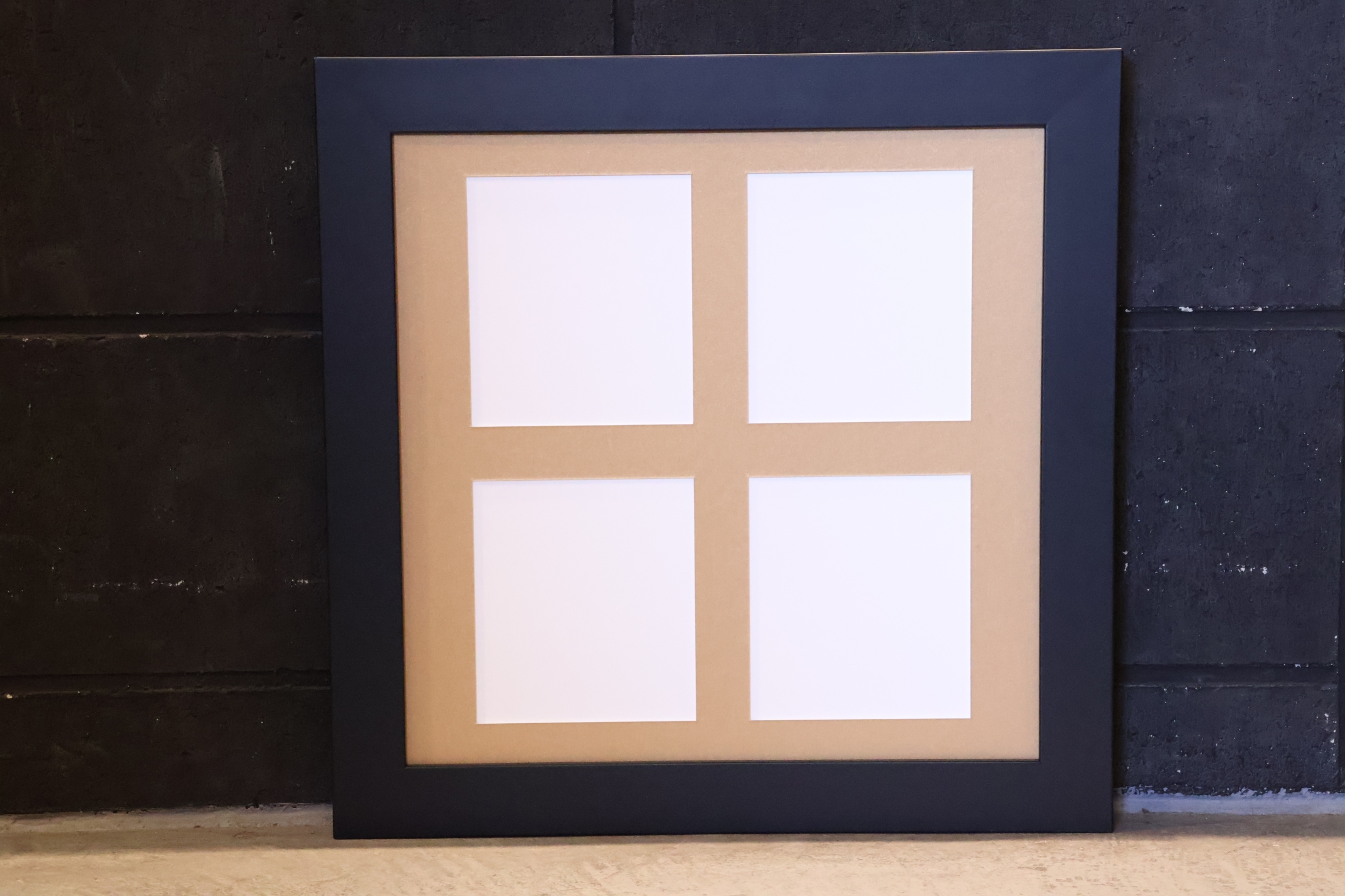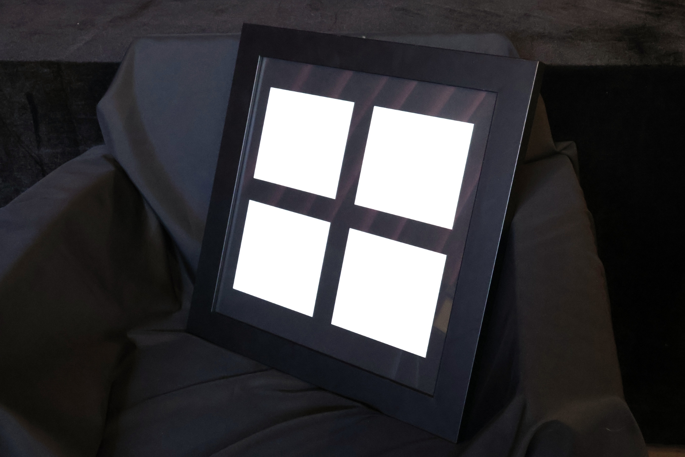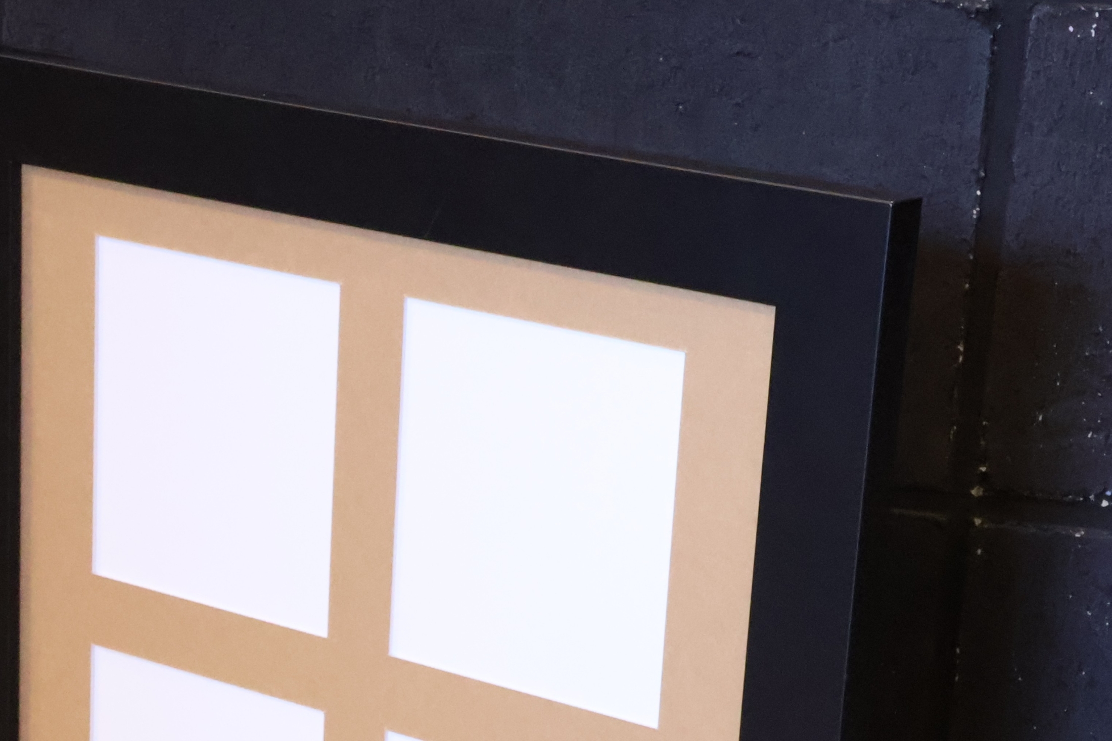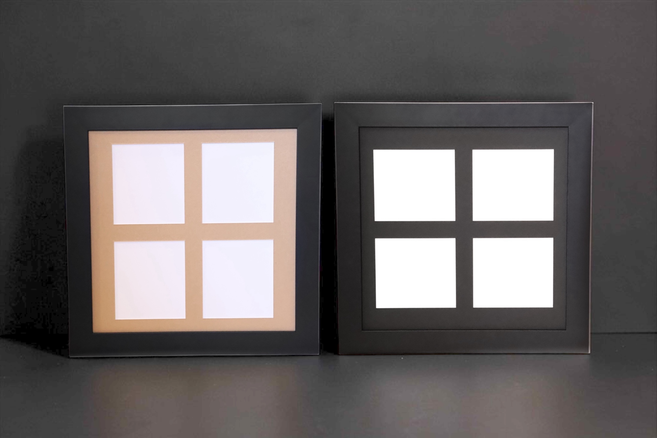 額縁:ミニ色紙4枚組用、フラットフレーム、額縁マット:(台紙)ブラック