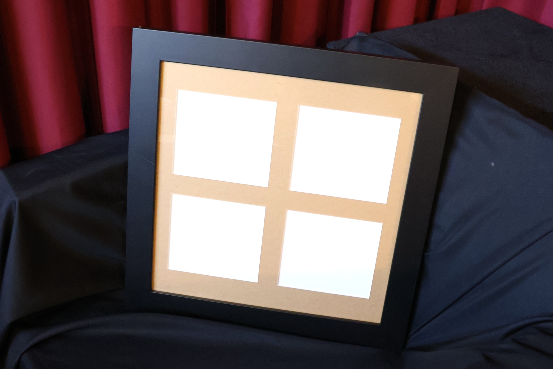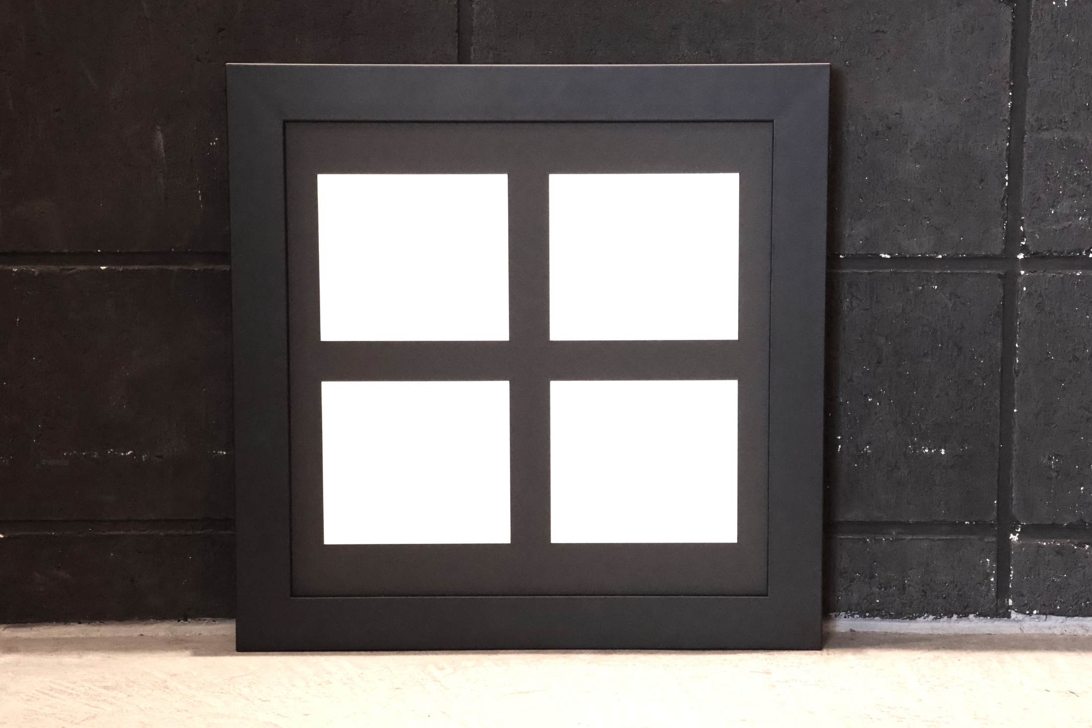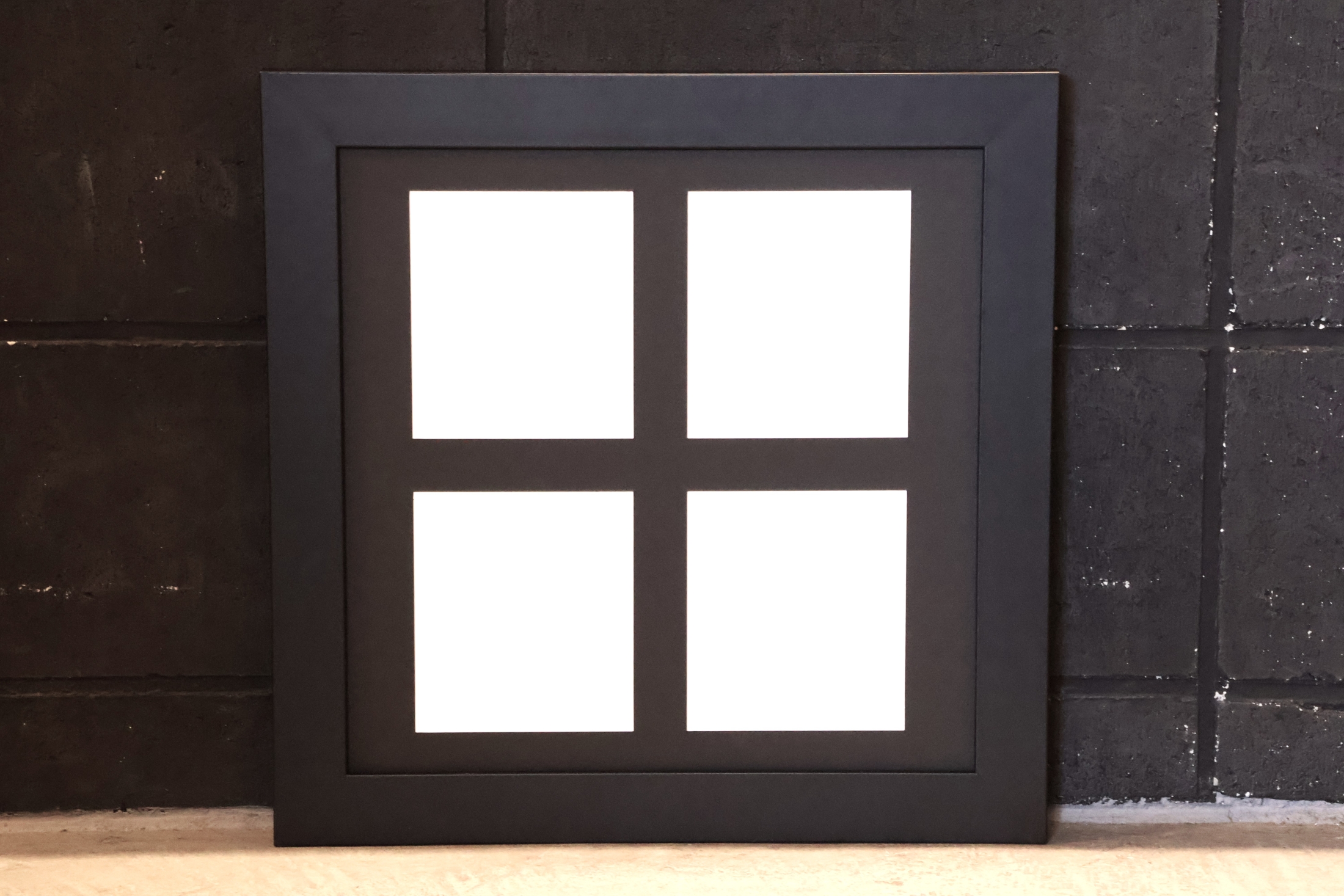 額縁:ミニ色紙4枚組用、フラットフレーム、額縁マット:(台紙)ブラック