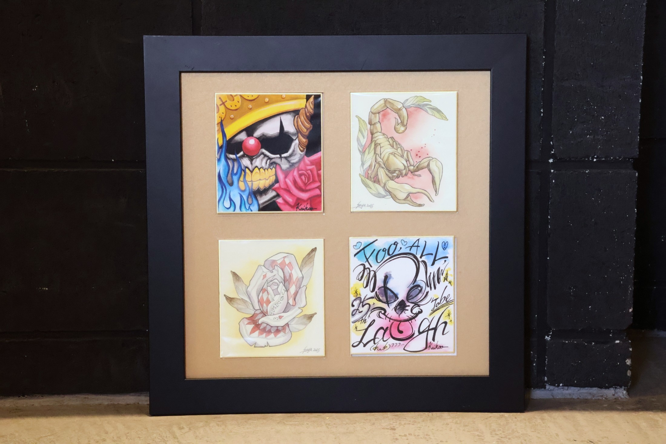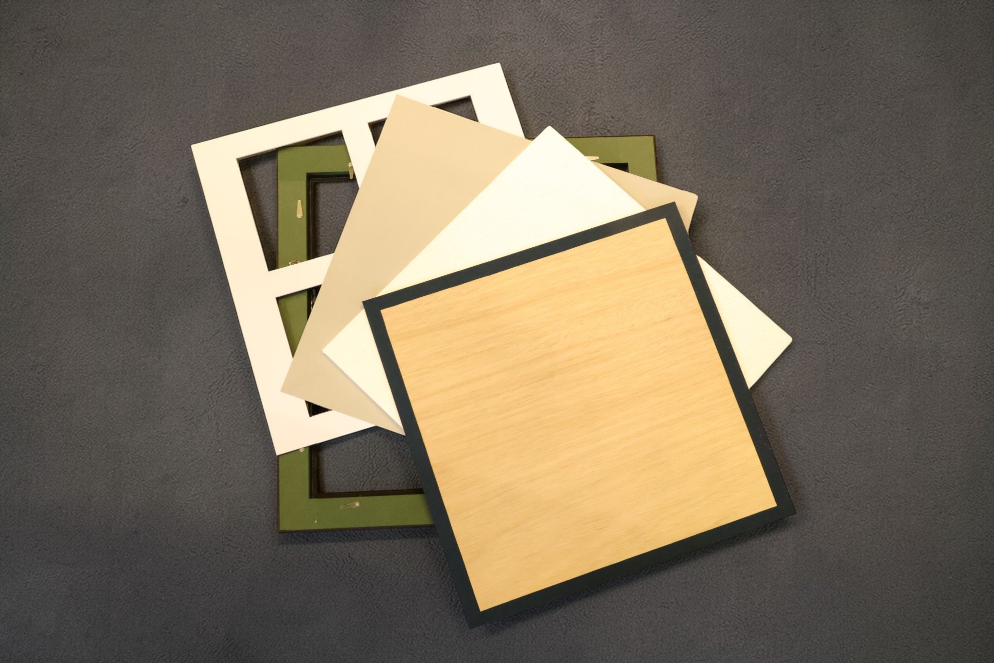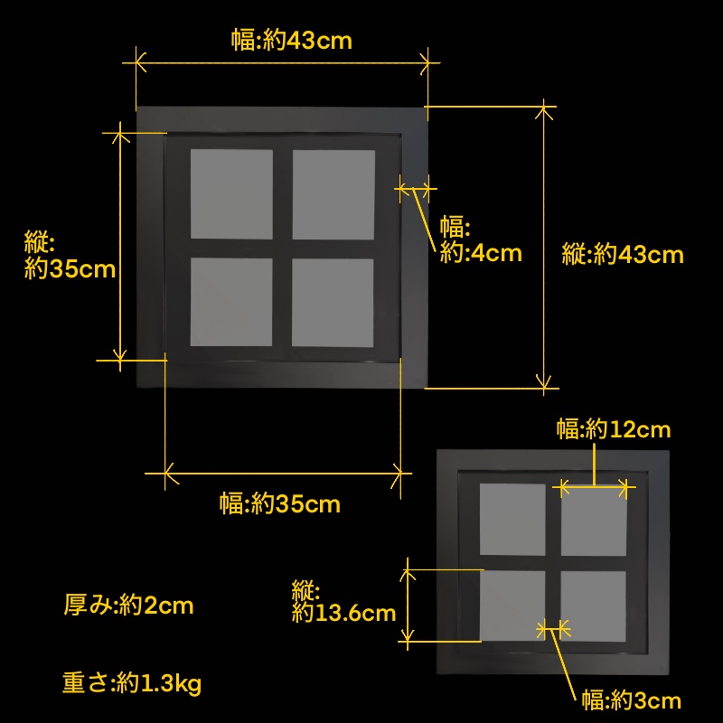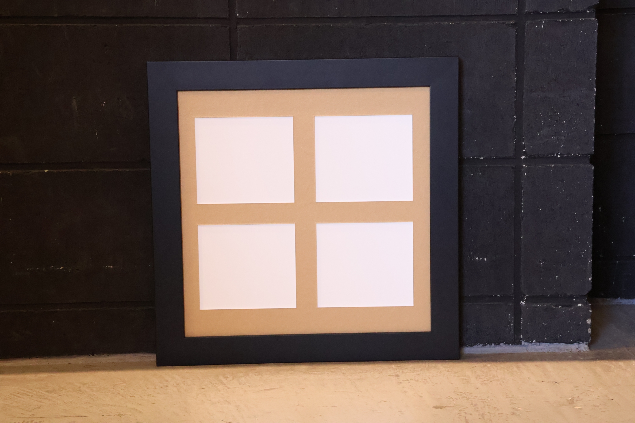 額縁:ミニ色紙4枚組用、フラットフレーム、額縁マット:(台紙)ブラック