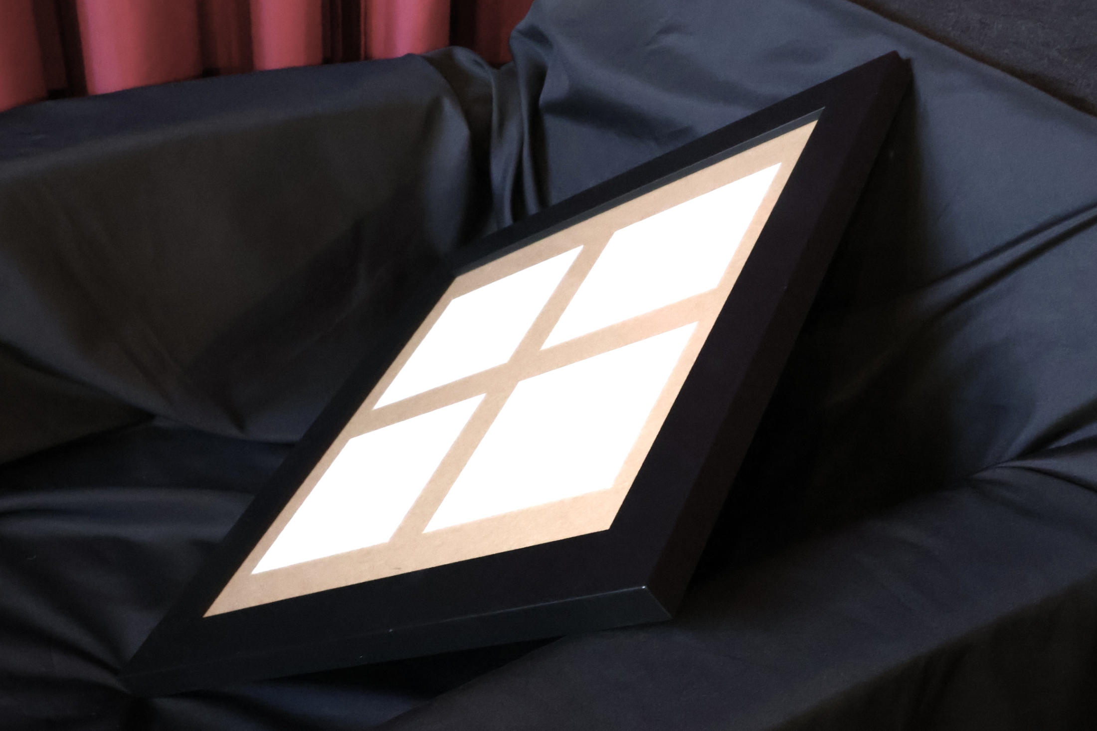 を採用。背面の台紙は黒、またはゴールドの2色。フラットなフレームはど