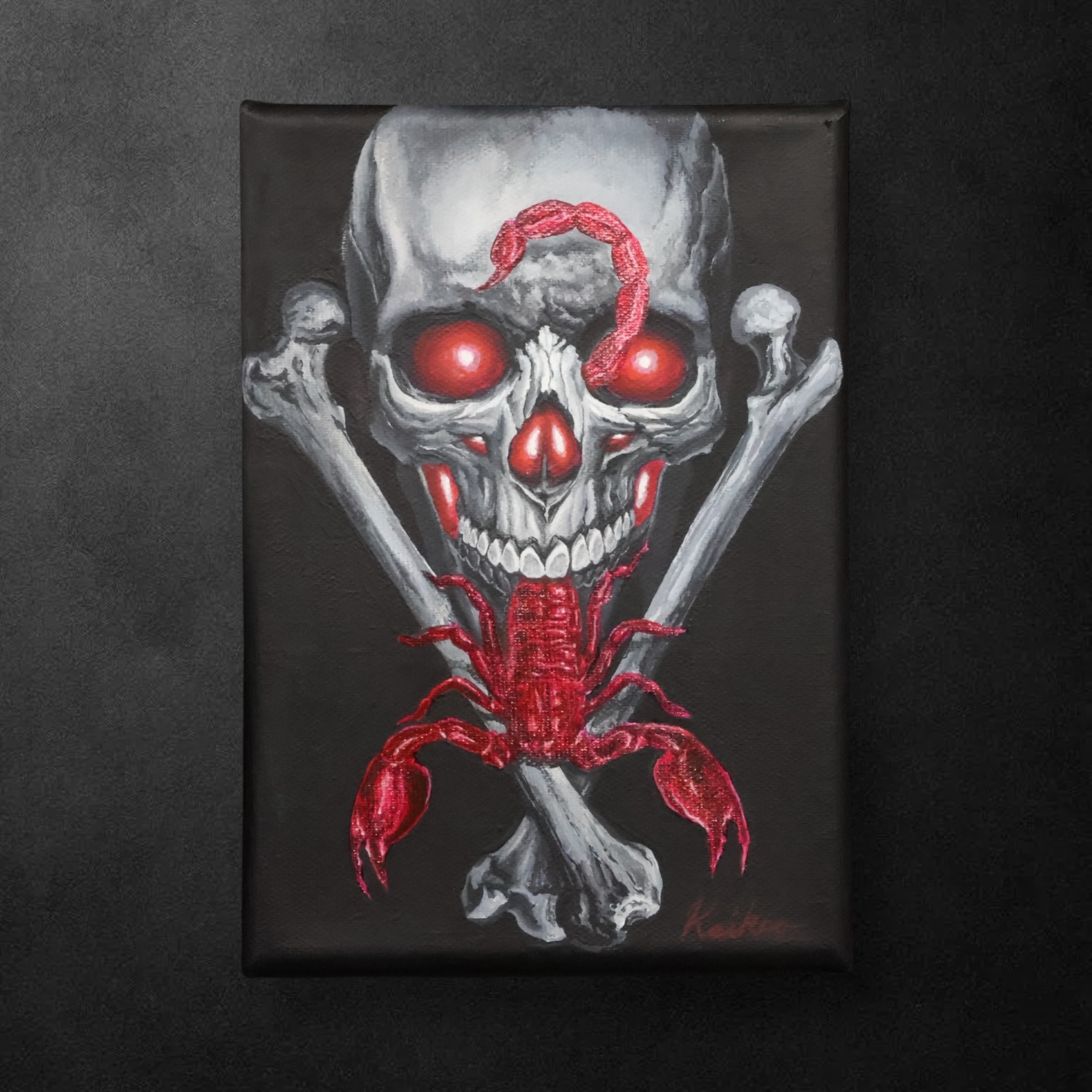 り、サソリを食べるスカルの口、そしてその口から伸びるサソリの尾はスカルを