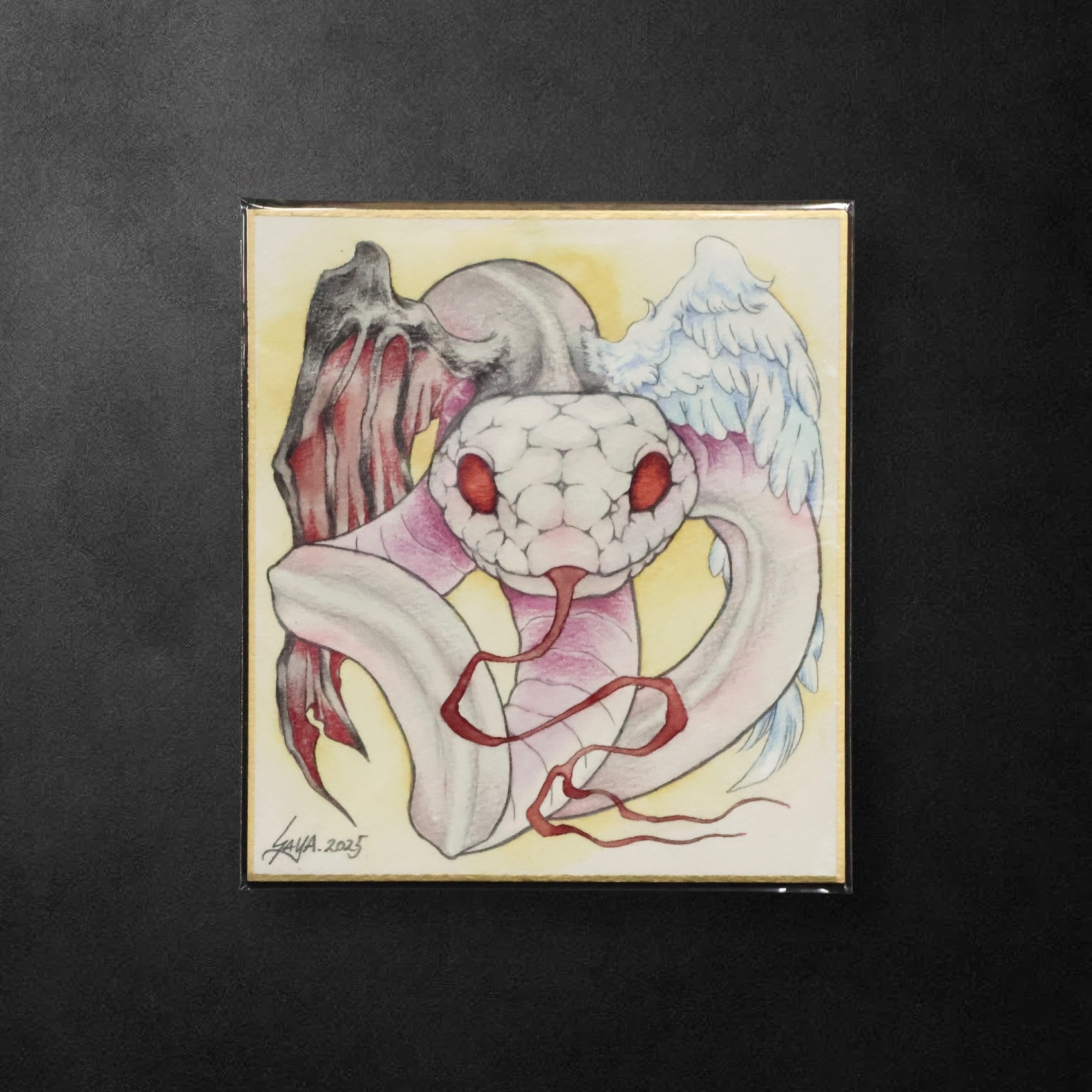 F.A.Lのリビアルモチーフからインスパイアされた、天使と悪魔の羽を持つ白蛇