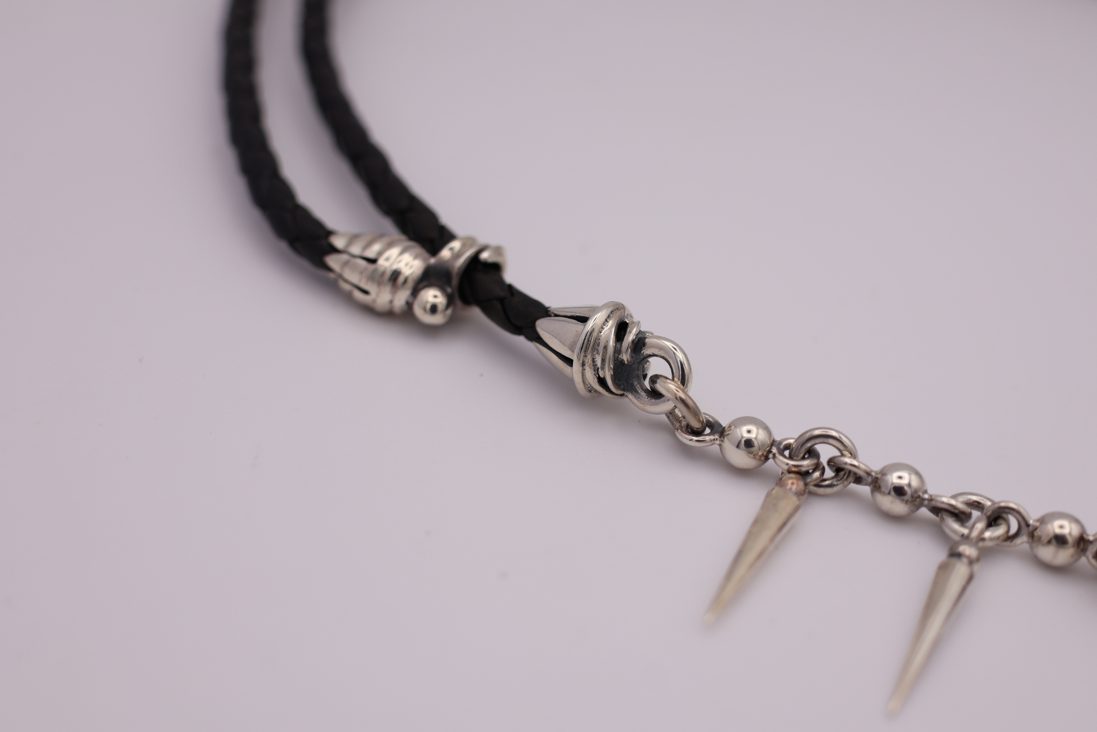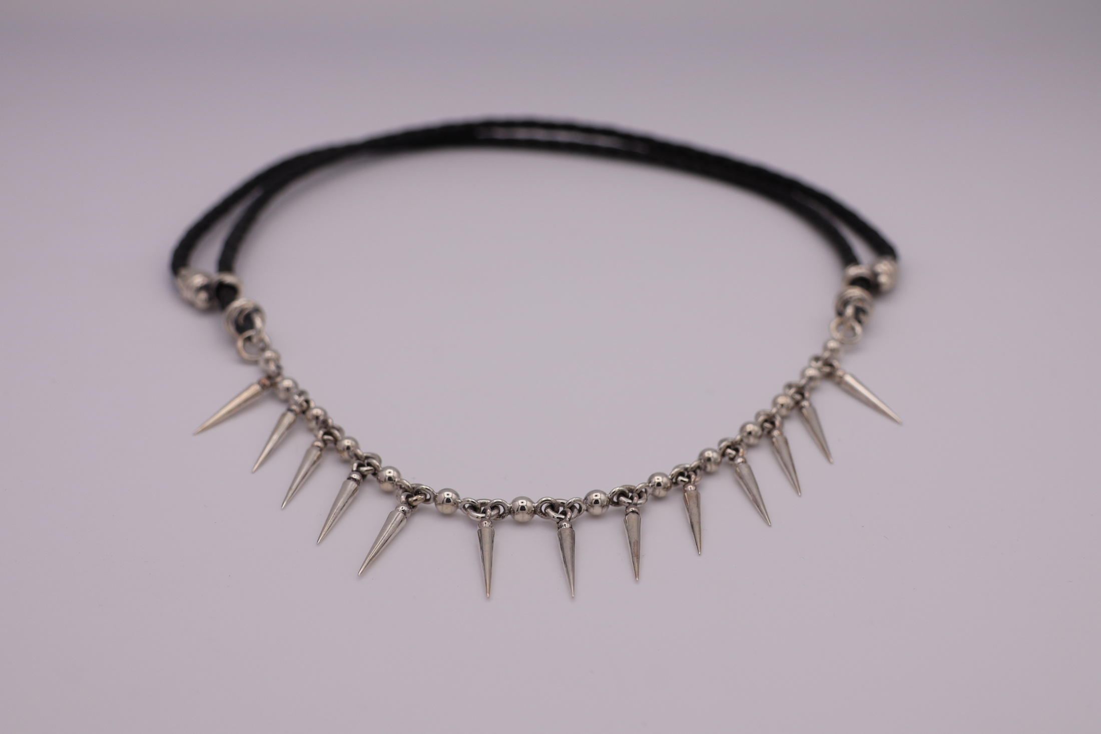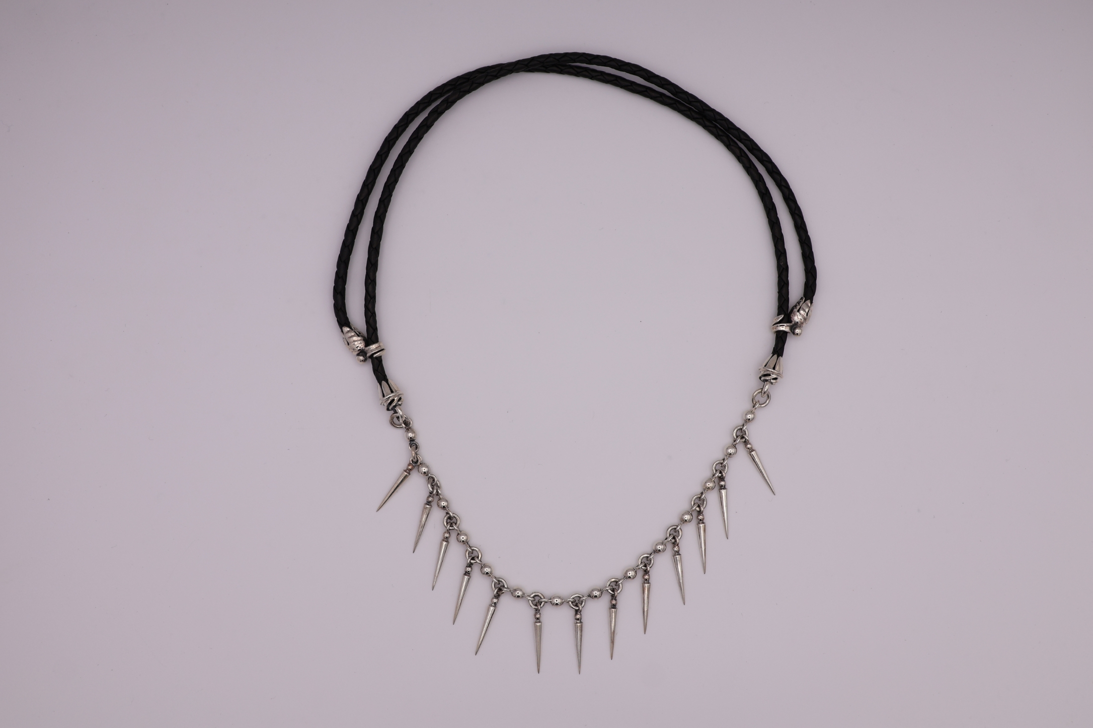 に組み上げたレザーチョーカー。自然の厳しさの中で生きる民族装身具の要