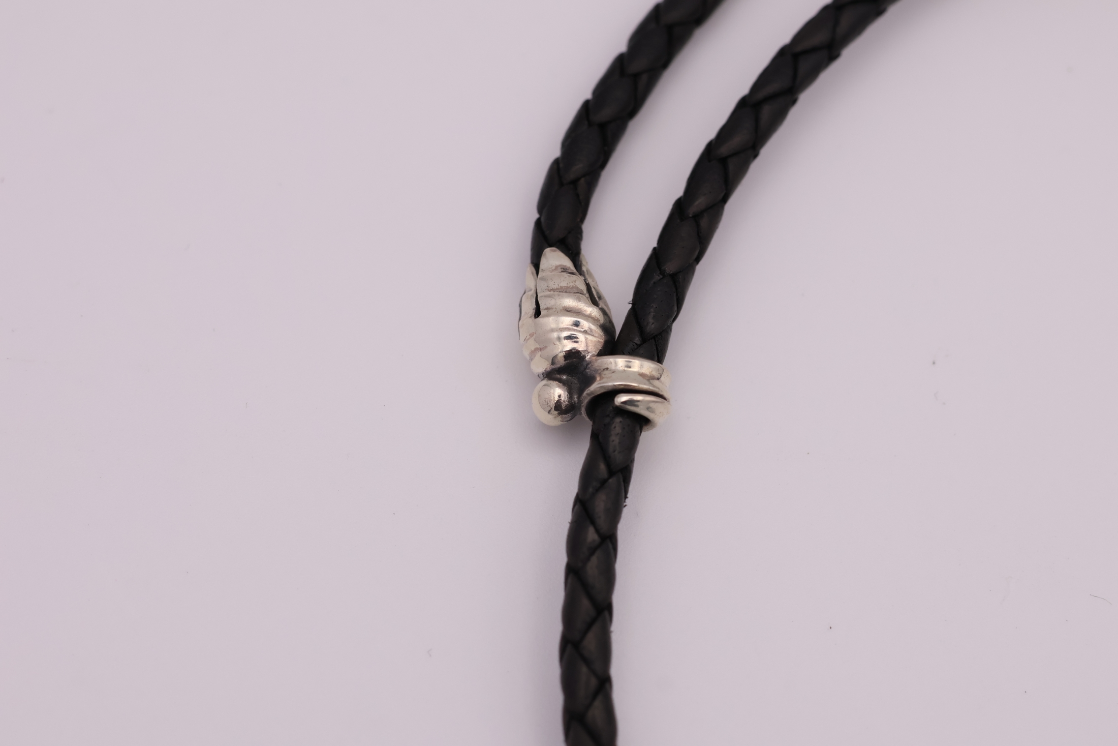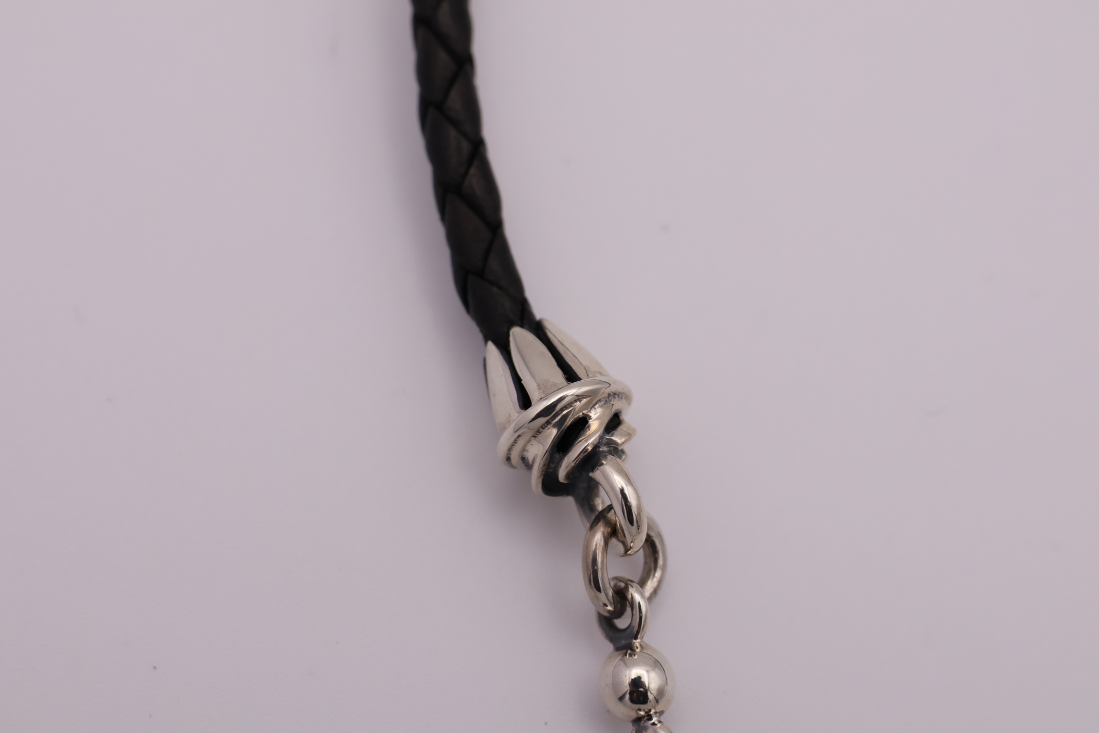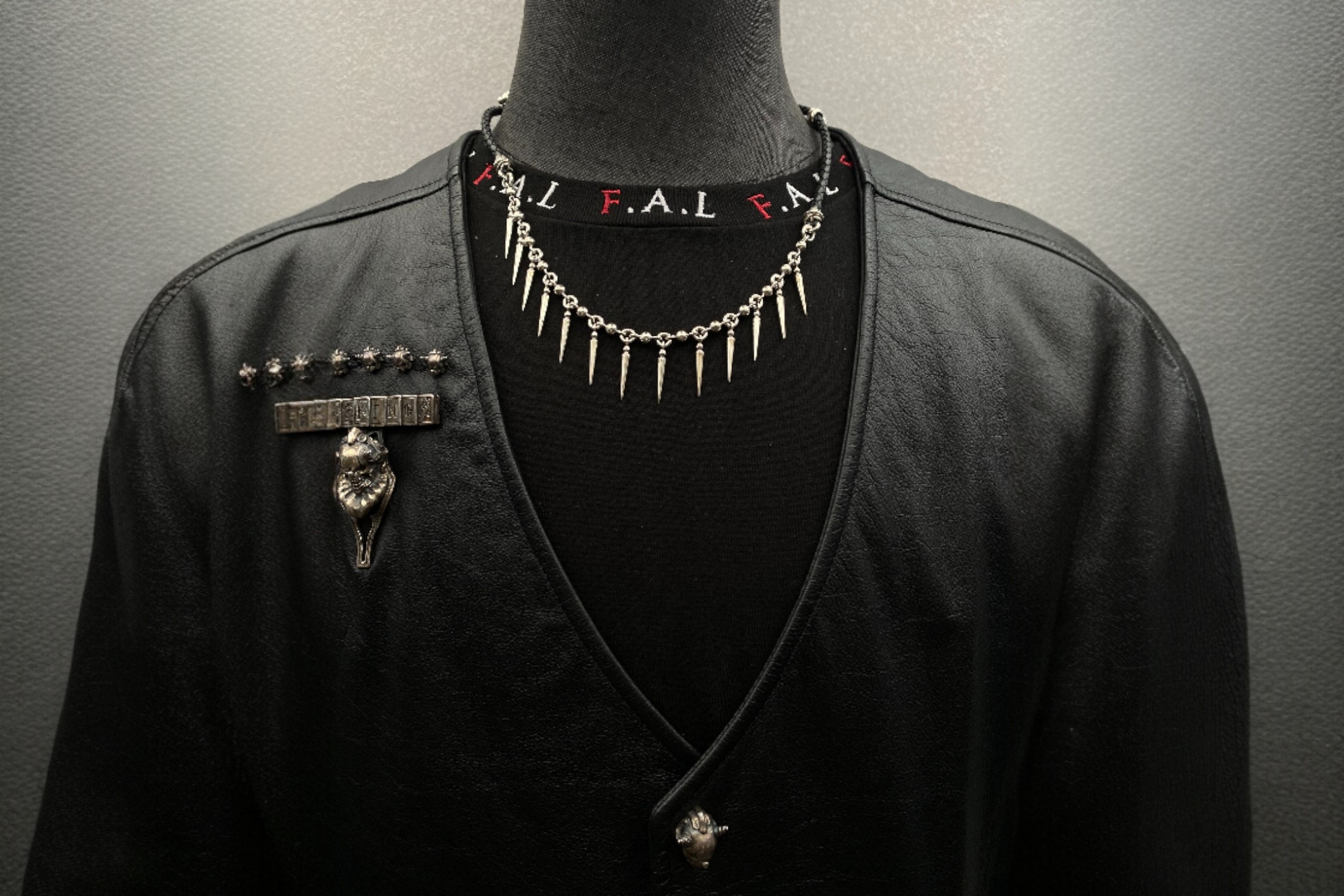 に組み上げたレザーチョーカー。自然の厳しさの中で生きる民族装身具の要