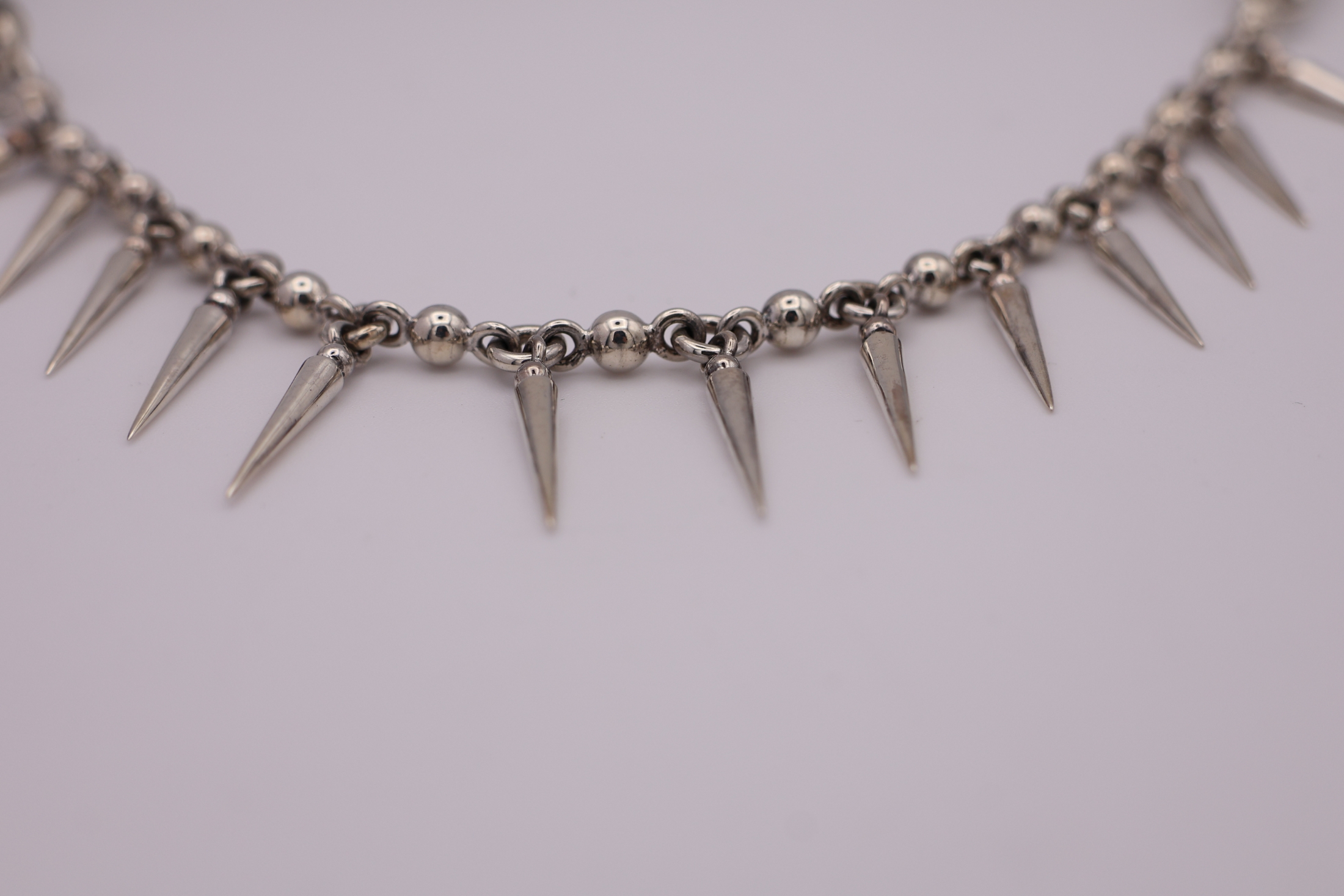 「棘」を連想させるスパイク型パーツと、「種」を思わせる球体パーツを連続的
