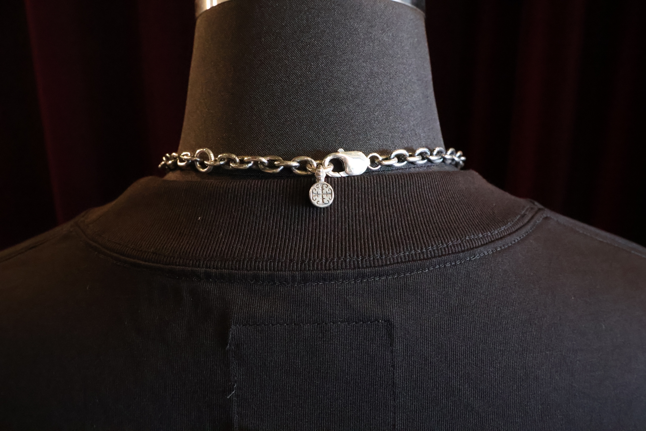 着用も可能。チェーンの先端にはアイアンフレーム(鉄柵)をイメージしたクロス