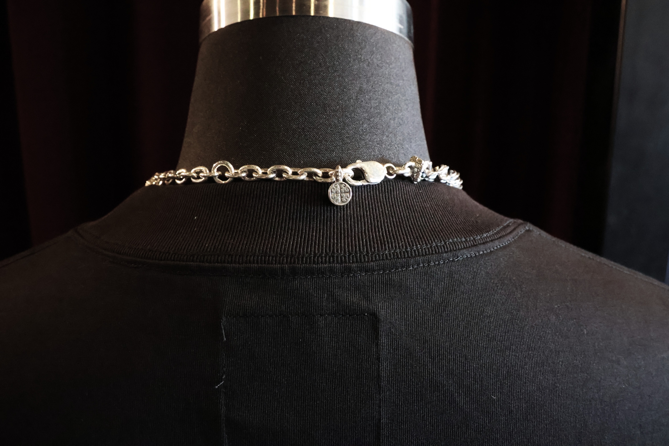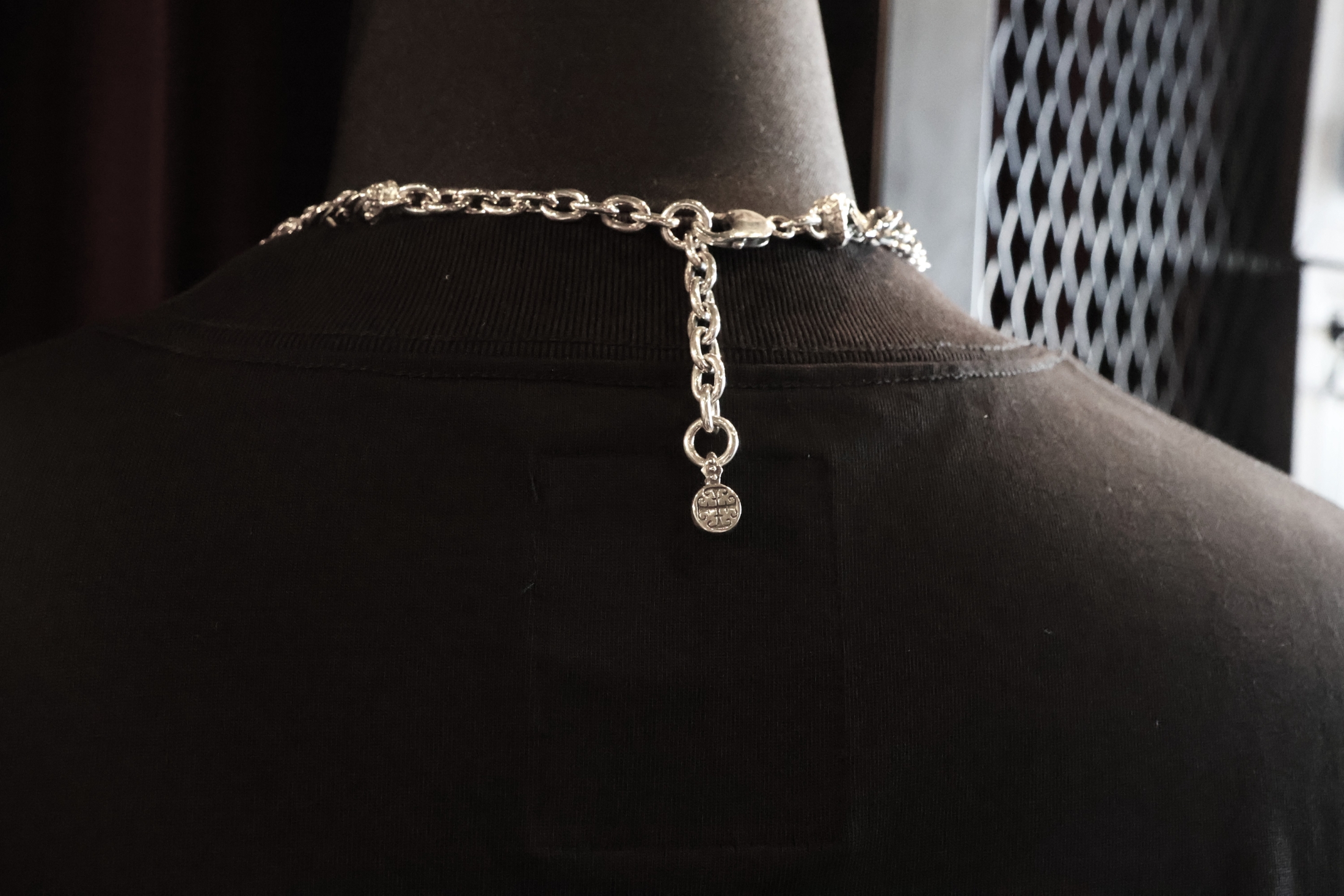 ネックレス。ブラッドレスクロスのコマは八の字を描くような構造で両面に彫刻