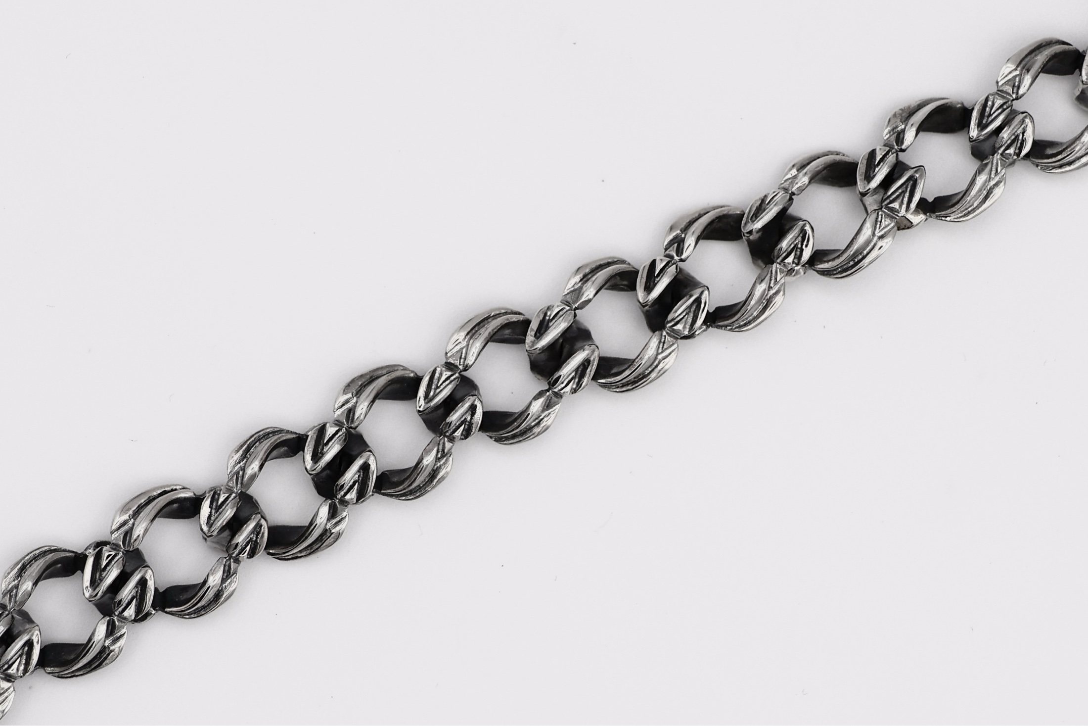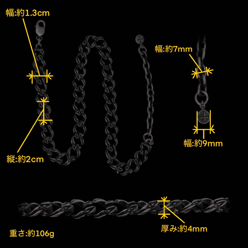 ブラッドレスクロスイメージした喜平のコマが連なる、喜平チェーンデザインの