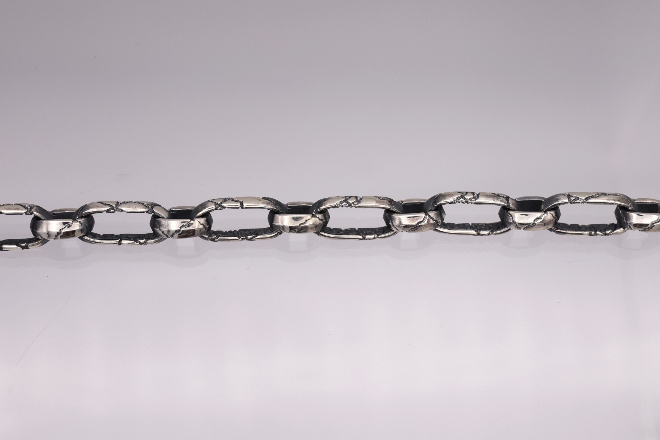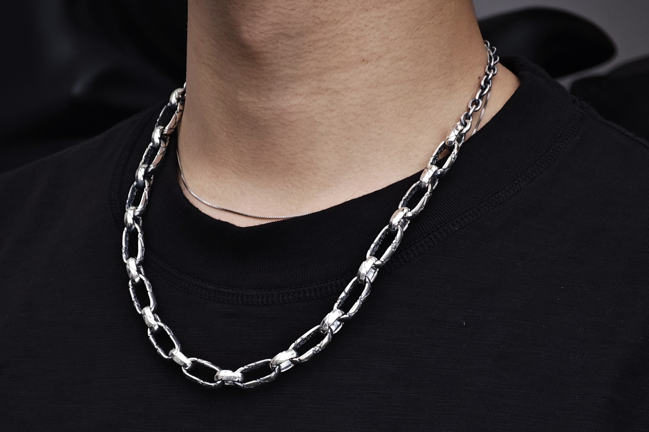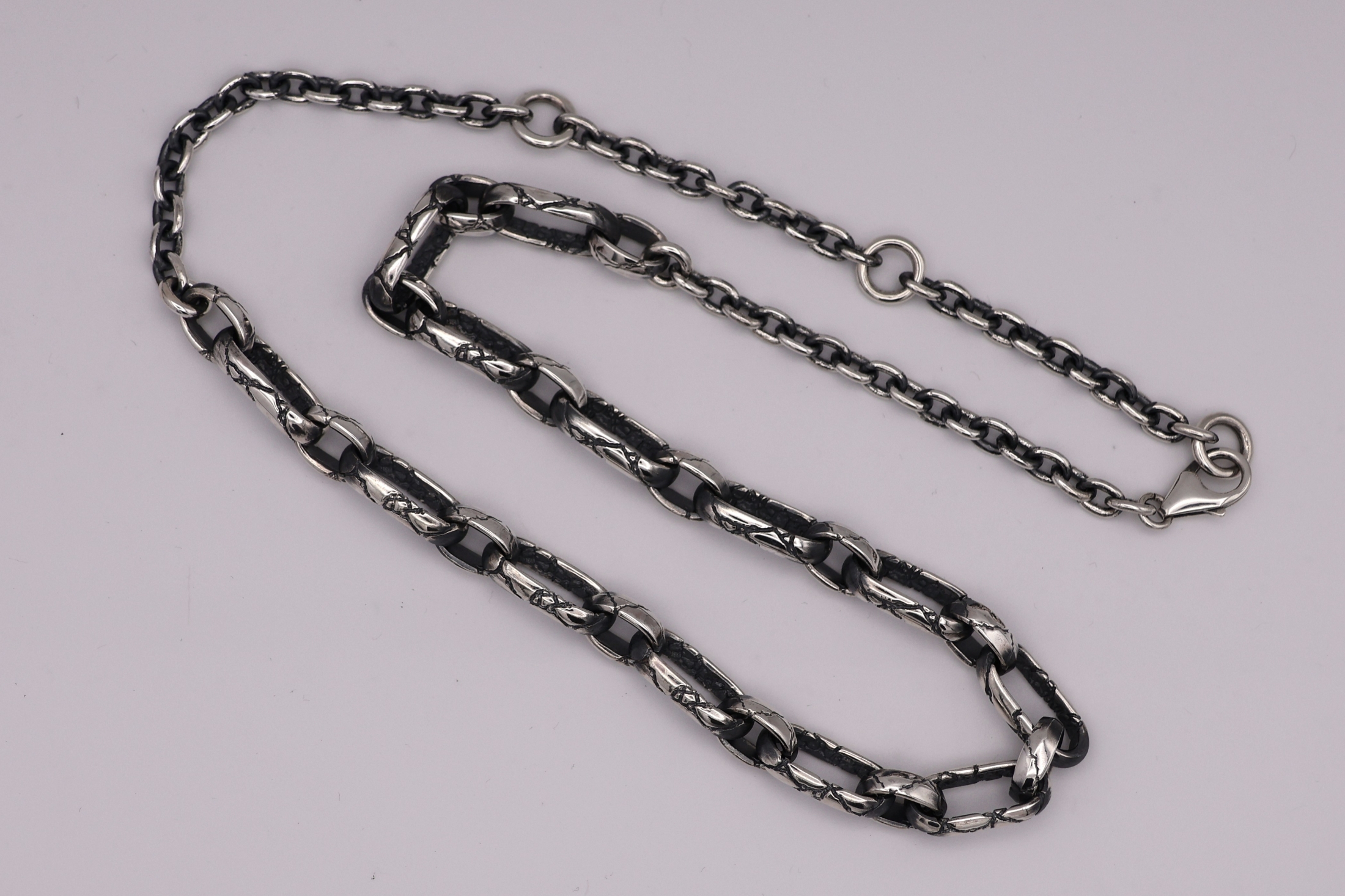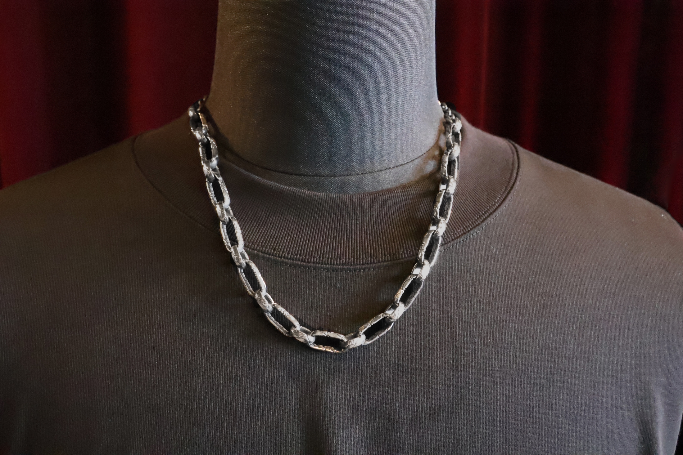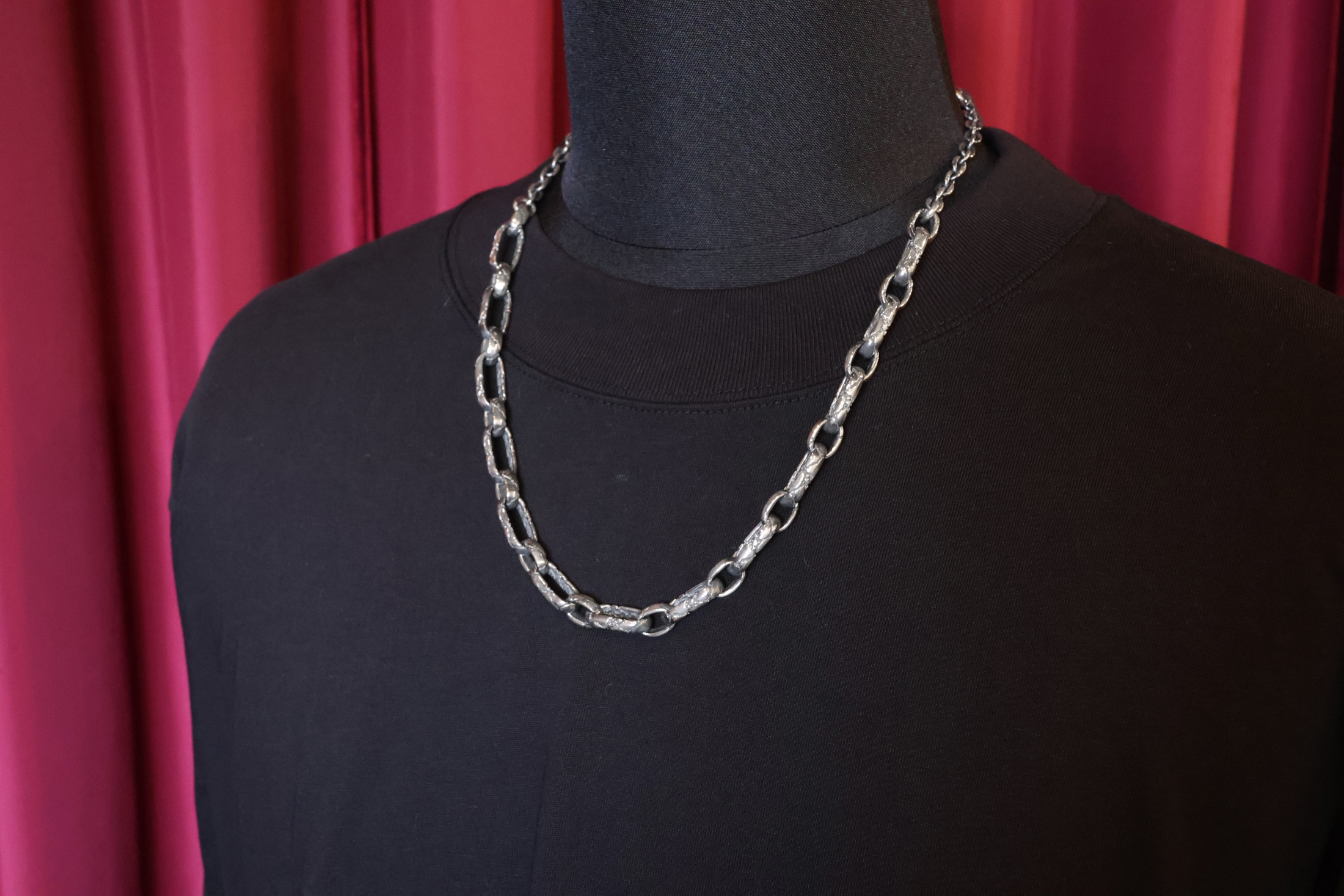 施されたクラックの彫刻で落ち着いたクラシカルな印象になっているネックレ