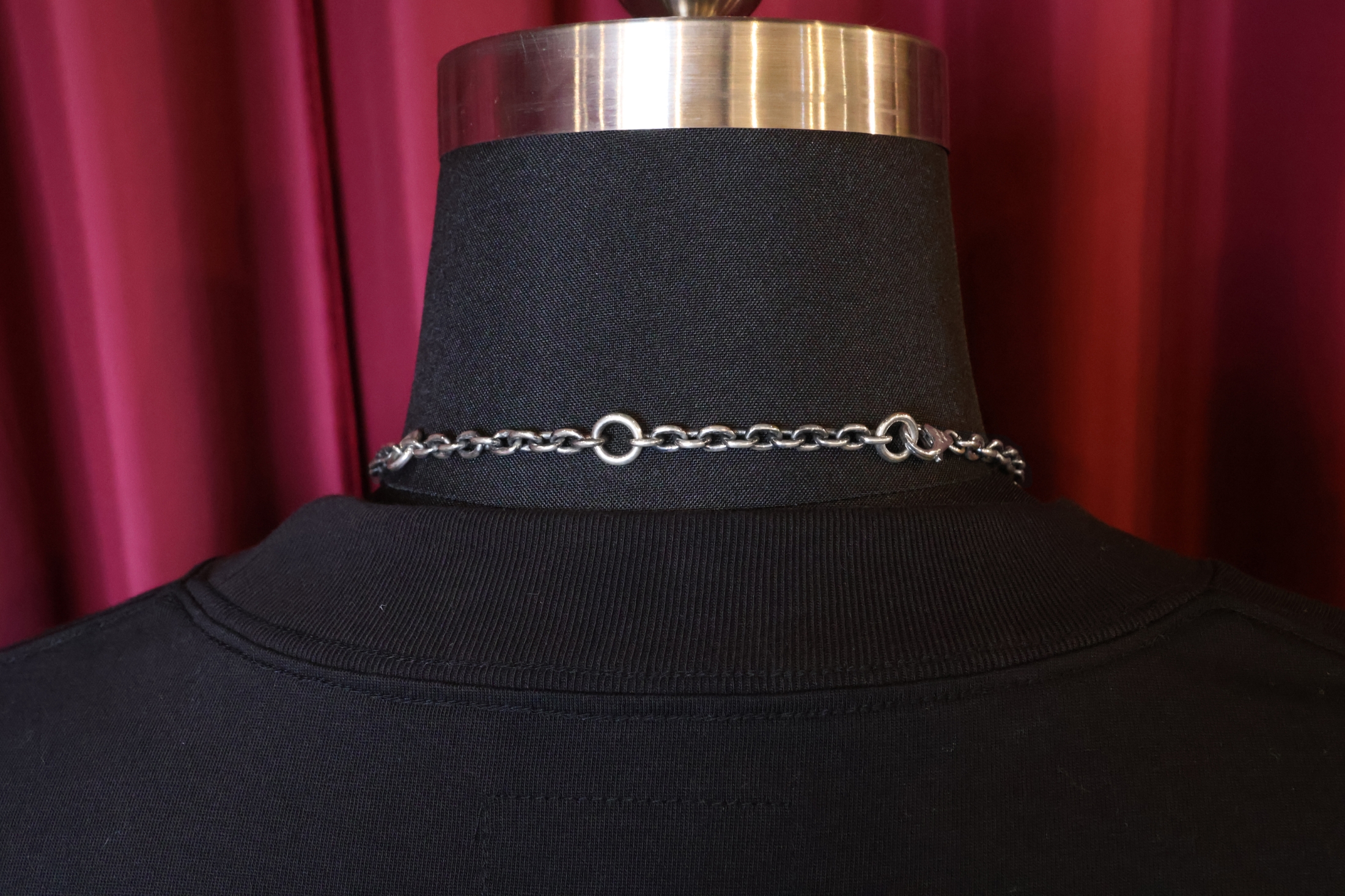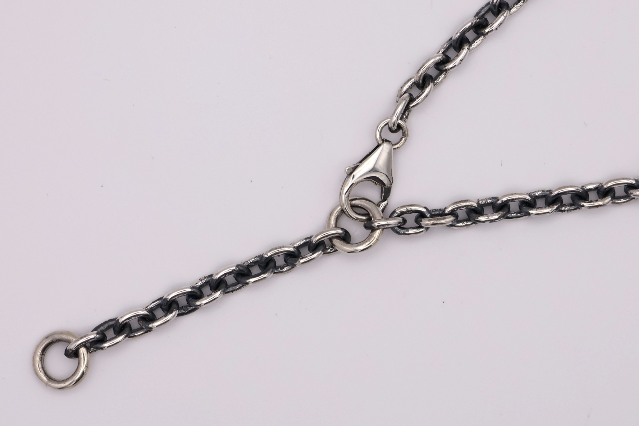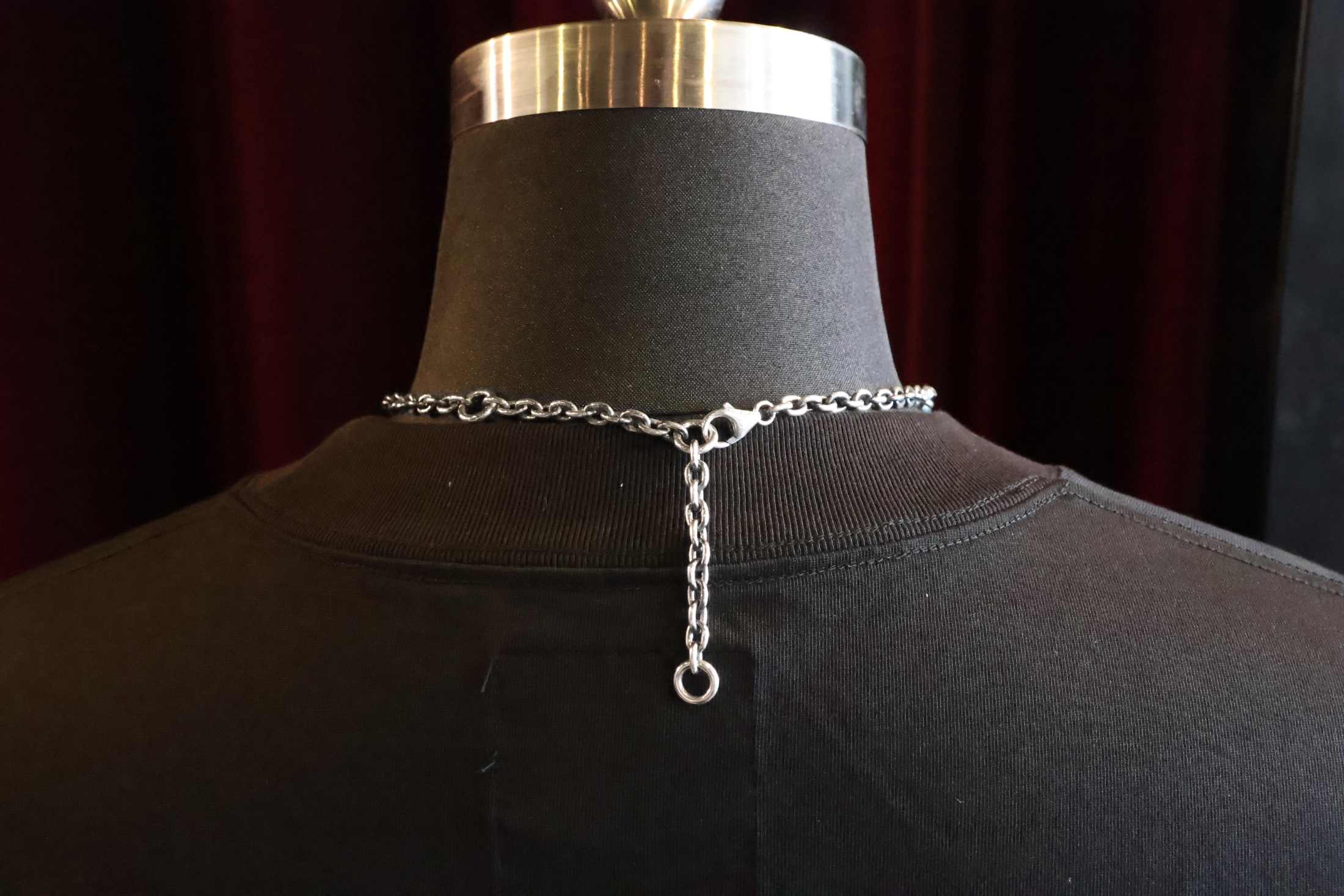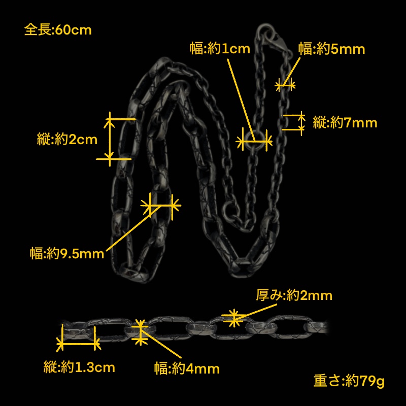 ス。留め具の部分はバネ式のプレーンなフックで、チェーンの途中にはアジャ