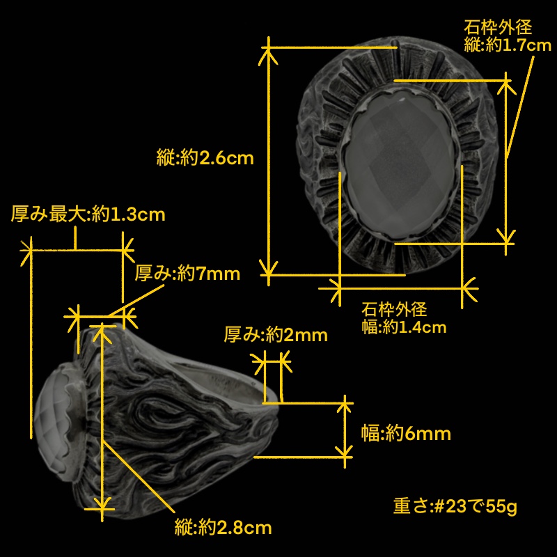 ことで、石が更に際立つ。リング全体をヴィンテージフィニッシュで仕上げること