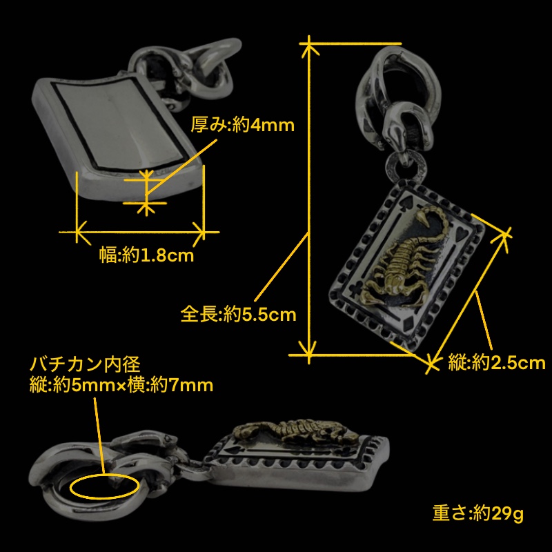 図のペンダント。カードパーツは着用しやすい大きさながら厚み4mmとシルバ