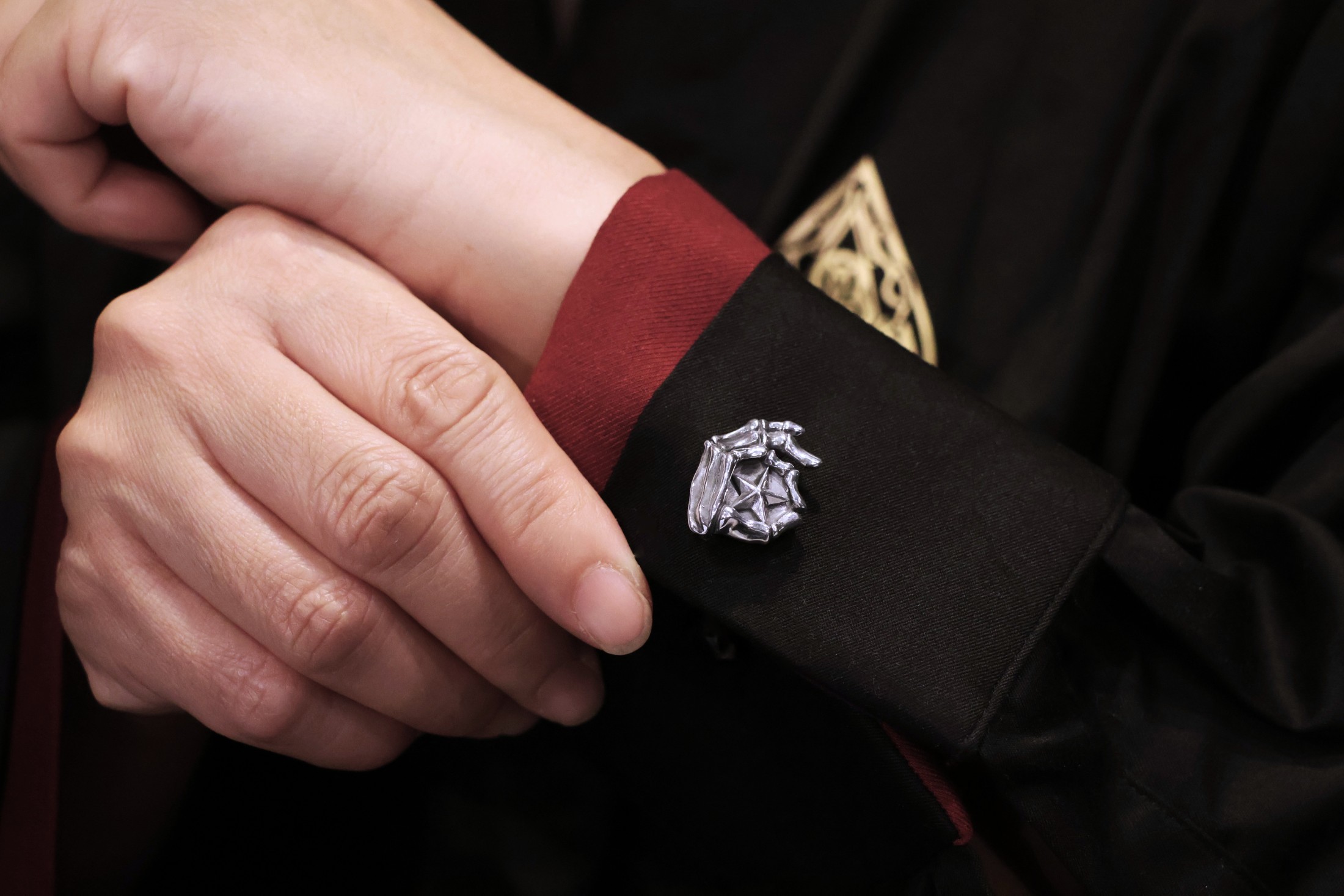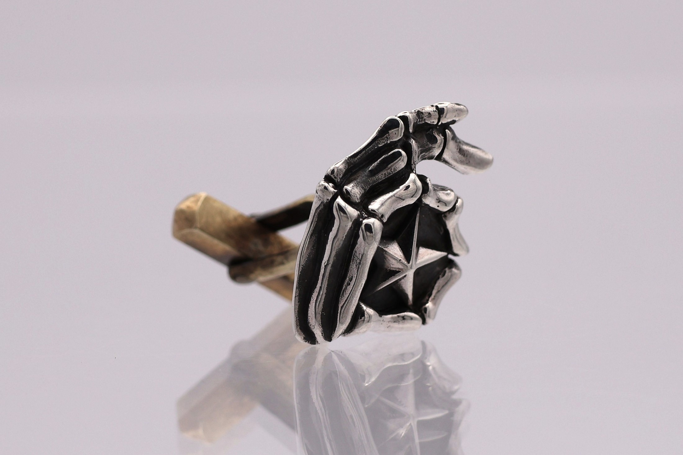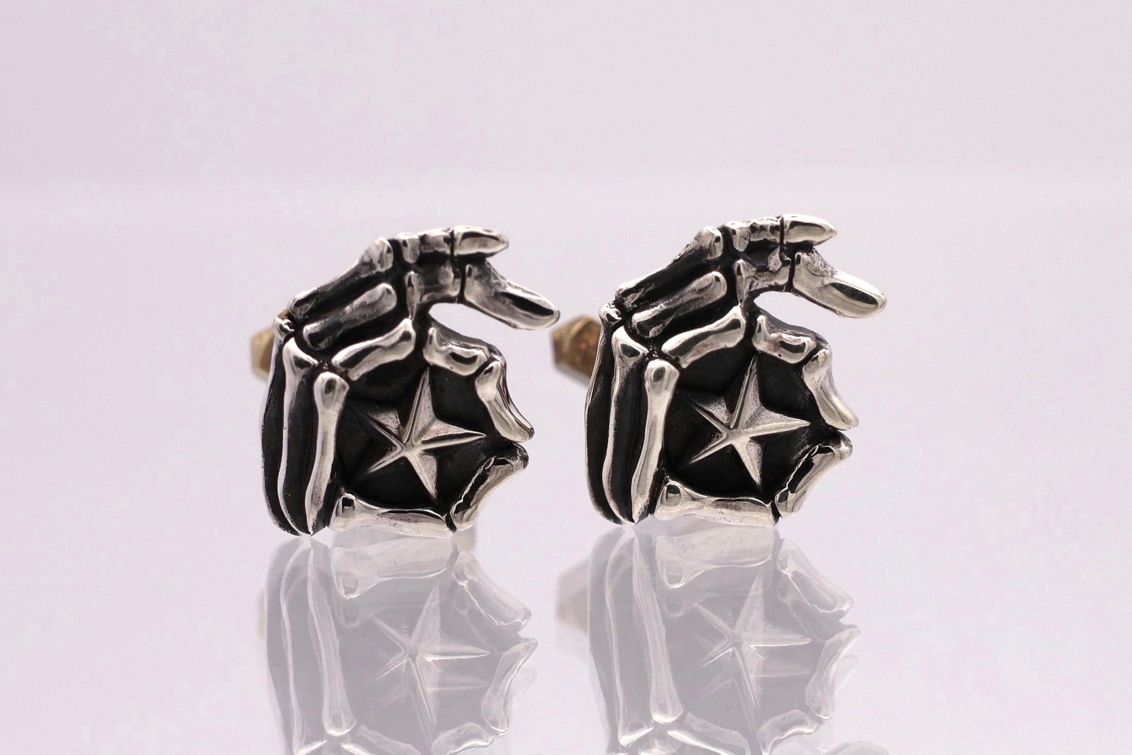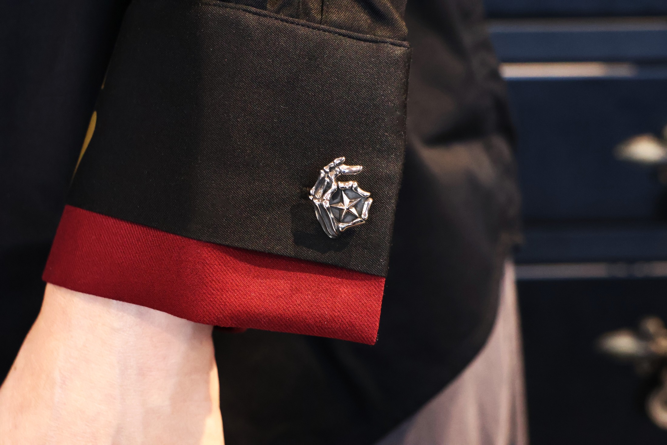 指でOKの輪を作ったピエロスカルの左手にスターを造形したカフス。ジャケット