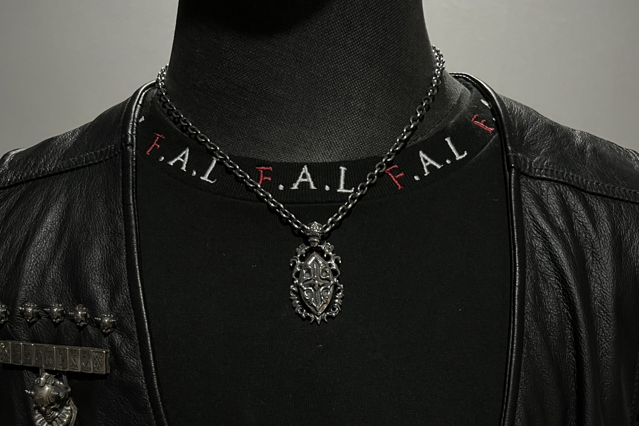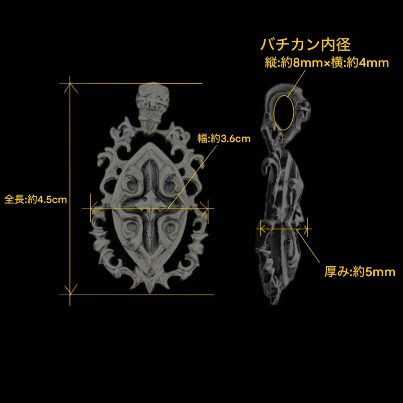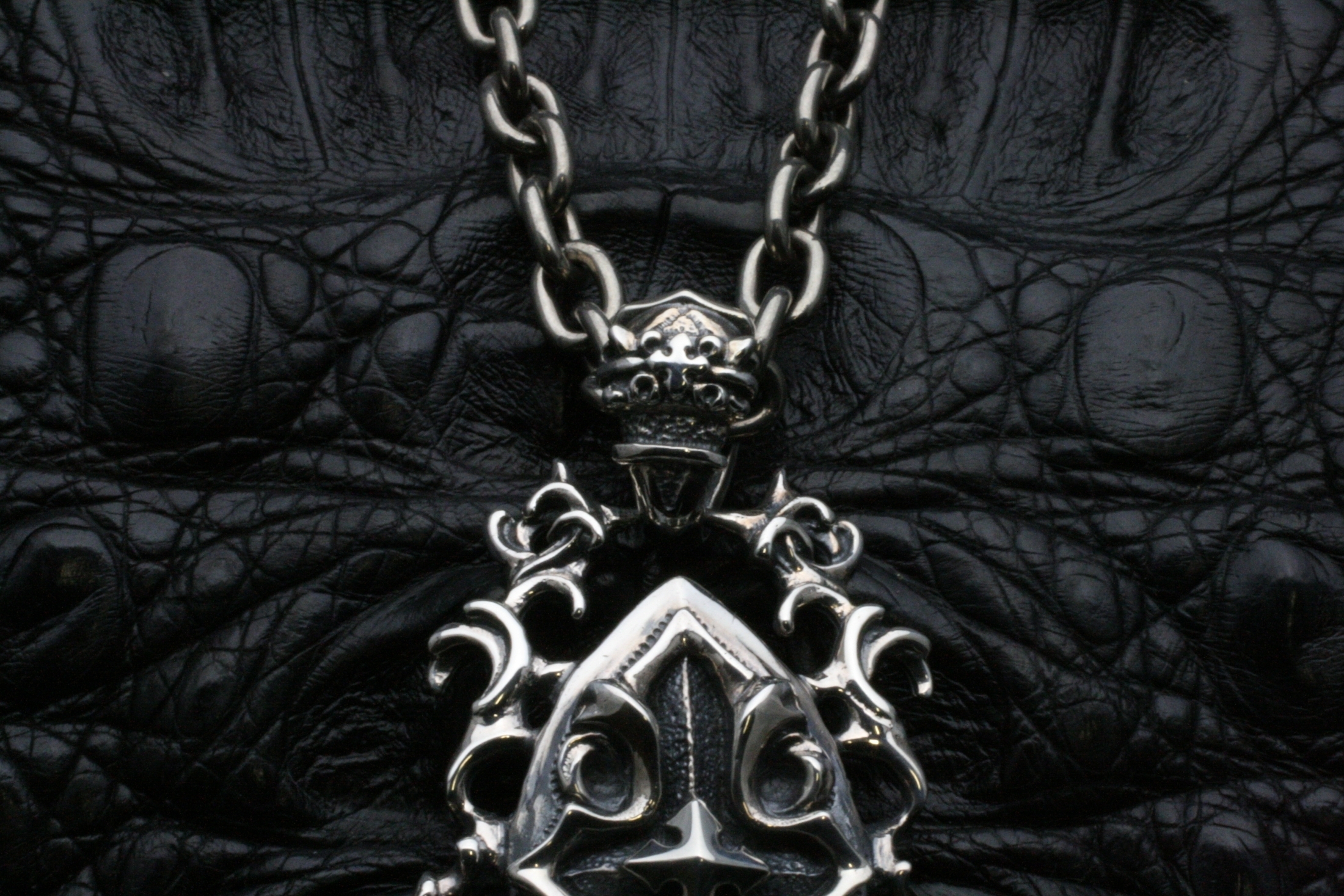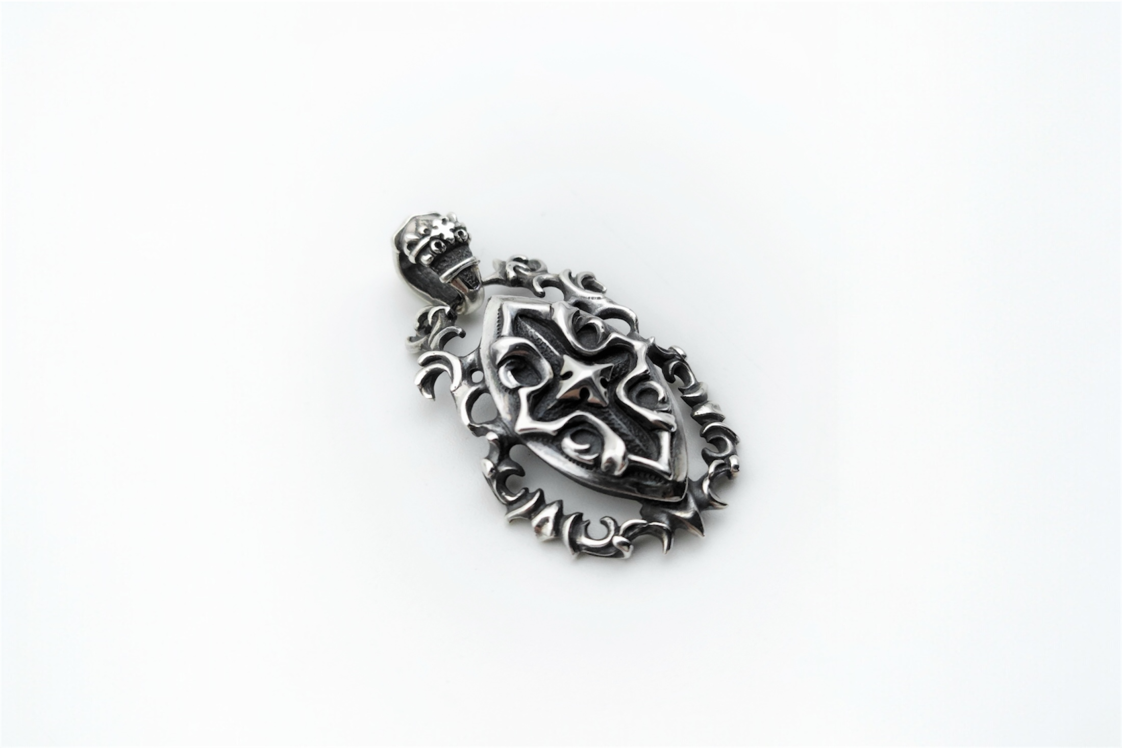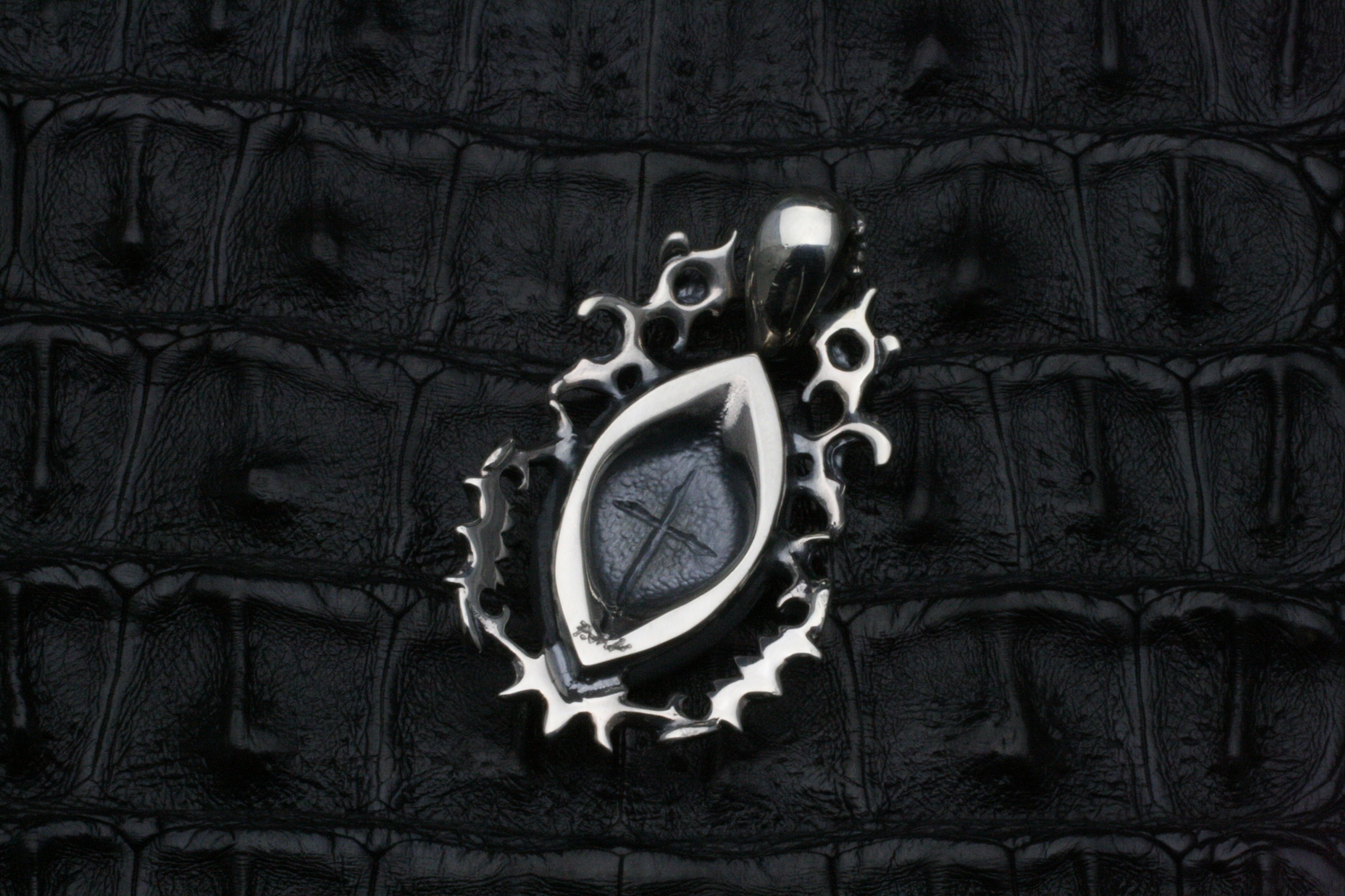 大きなクロスの上に小さいクロスを乗せたマーキス型のペンダント。周りには