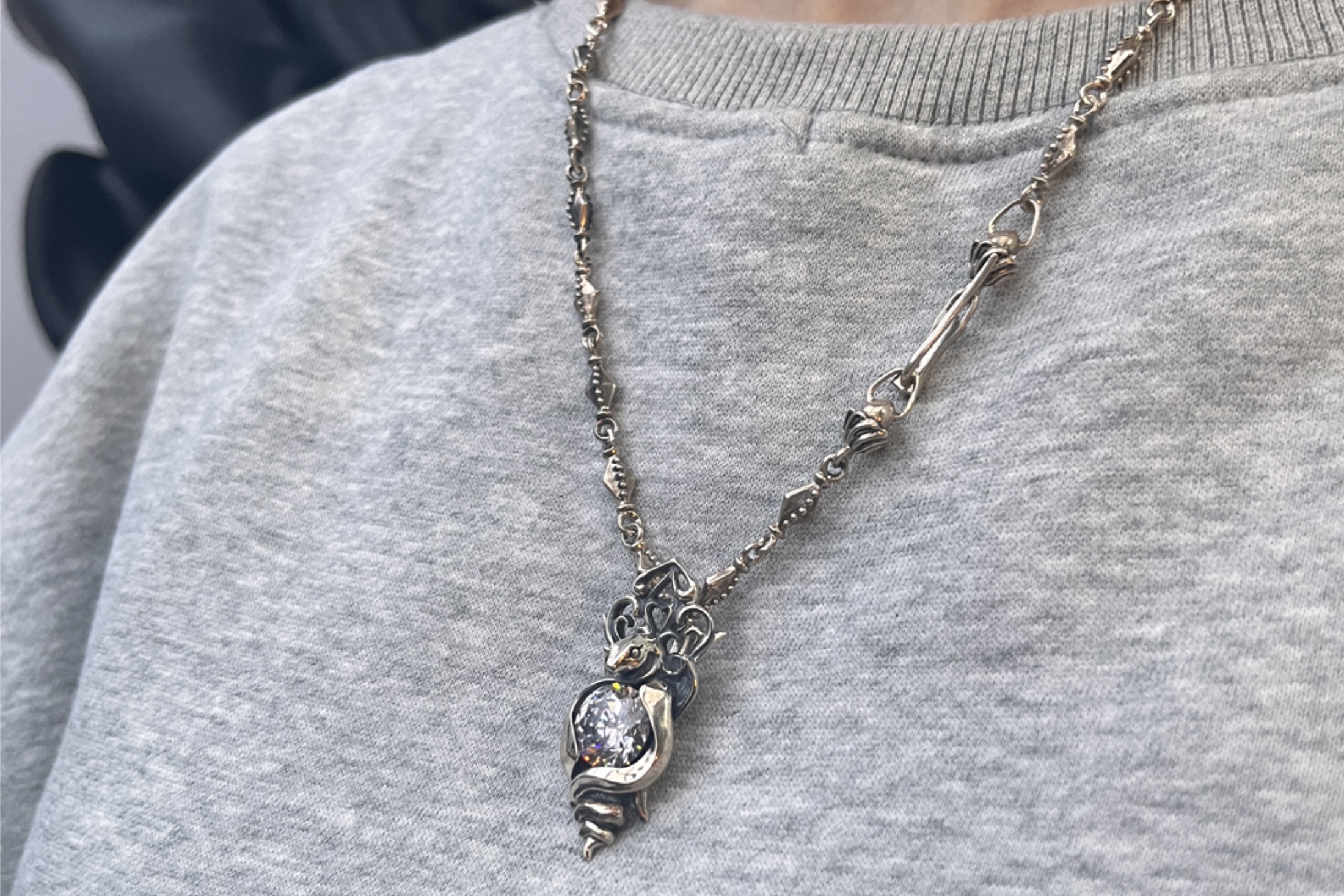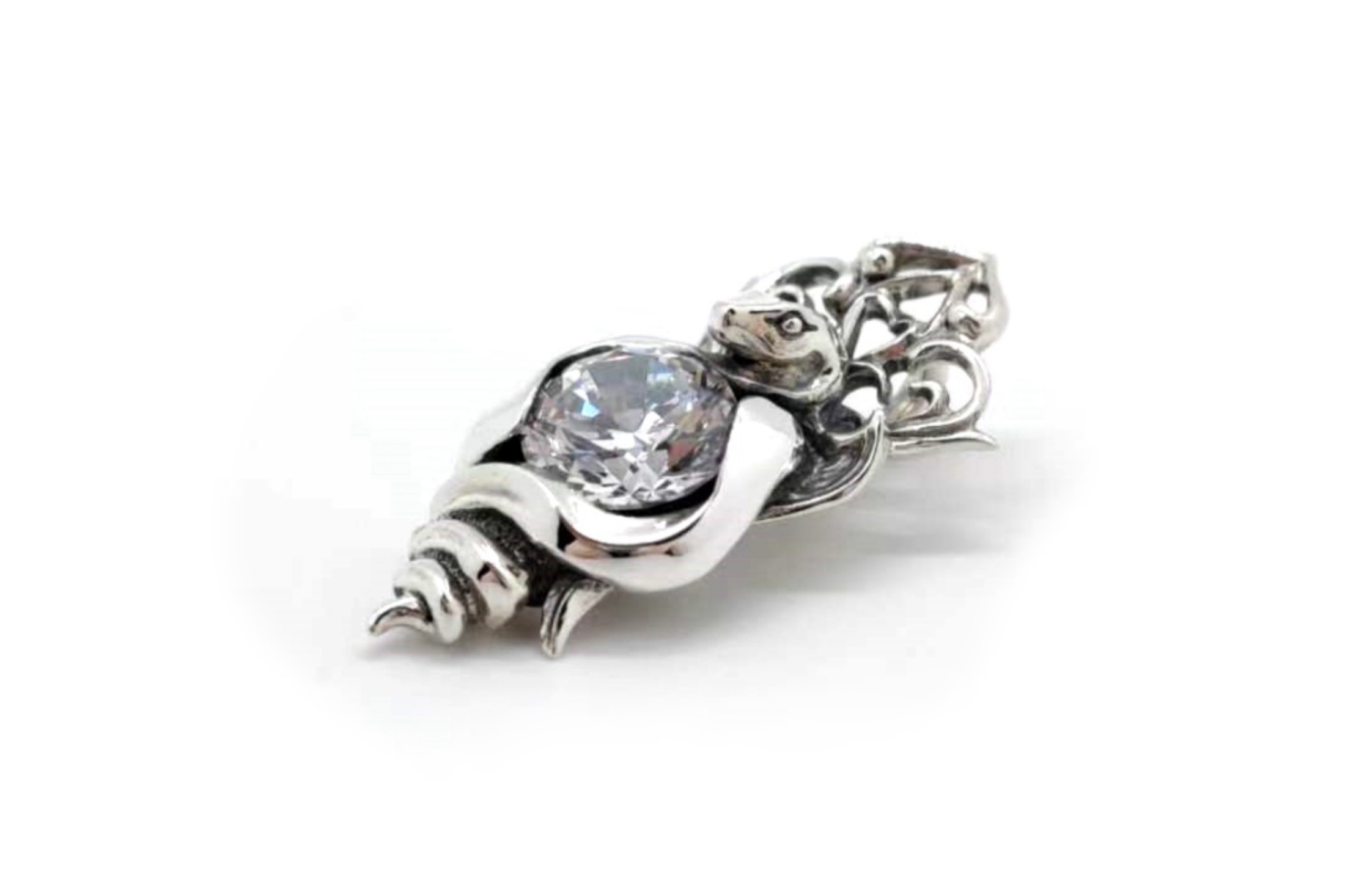 (蛇)がストーンに巻きつく様にデザインされており、バランスを崩さずに石留め