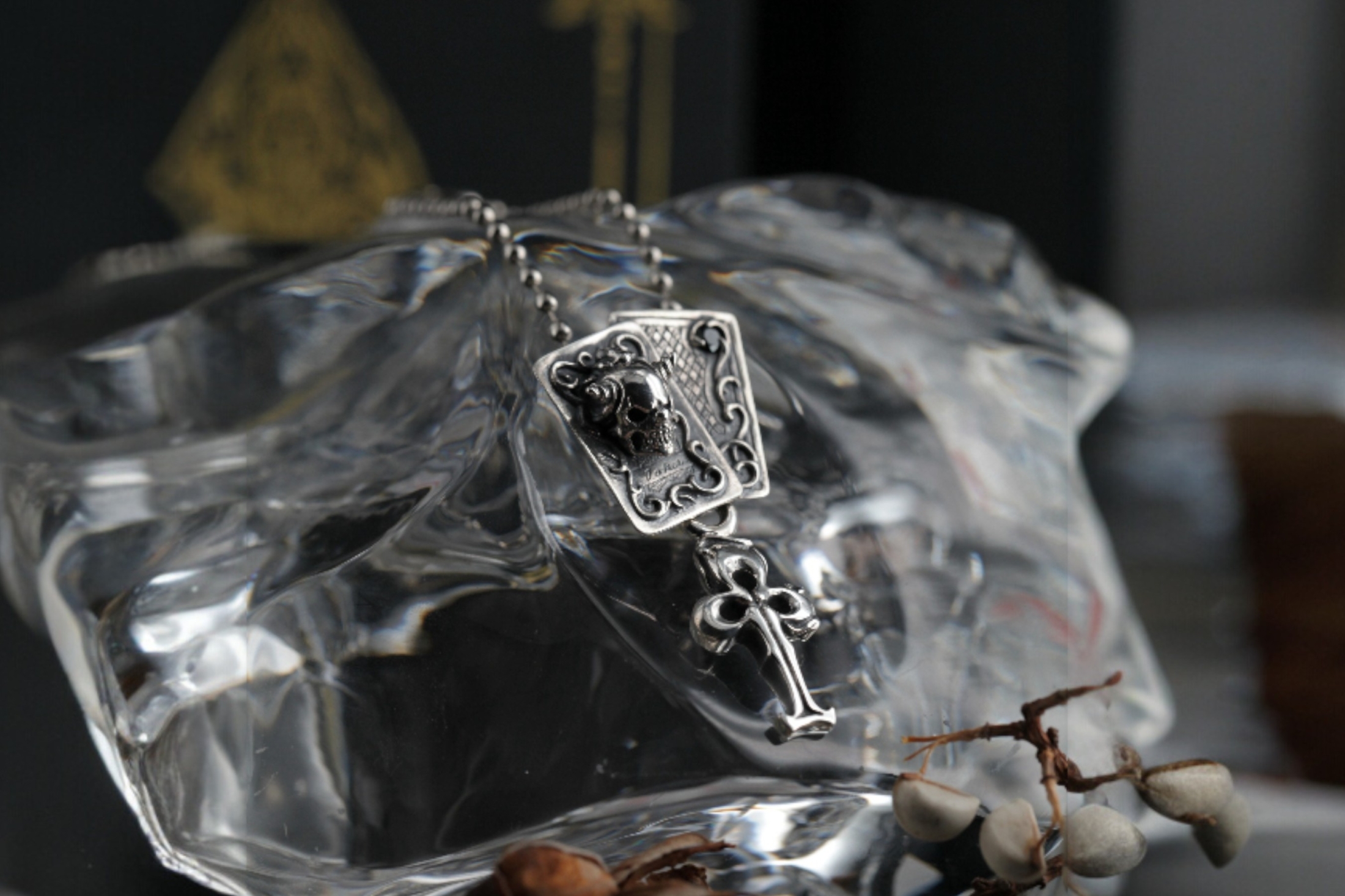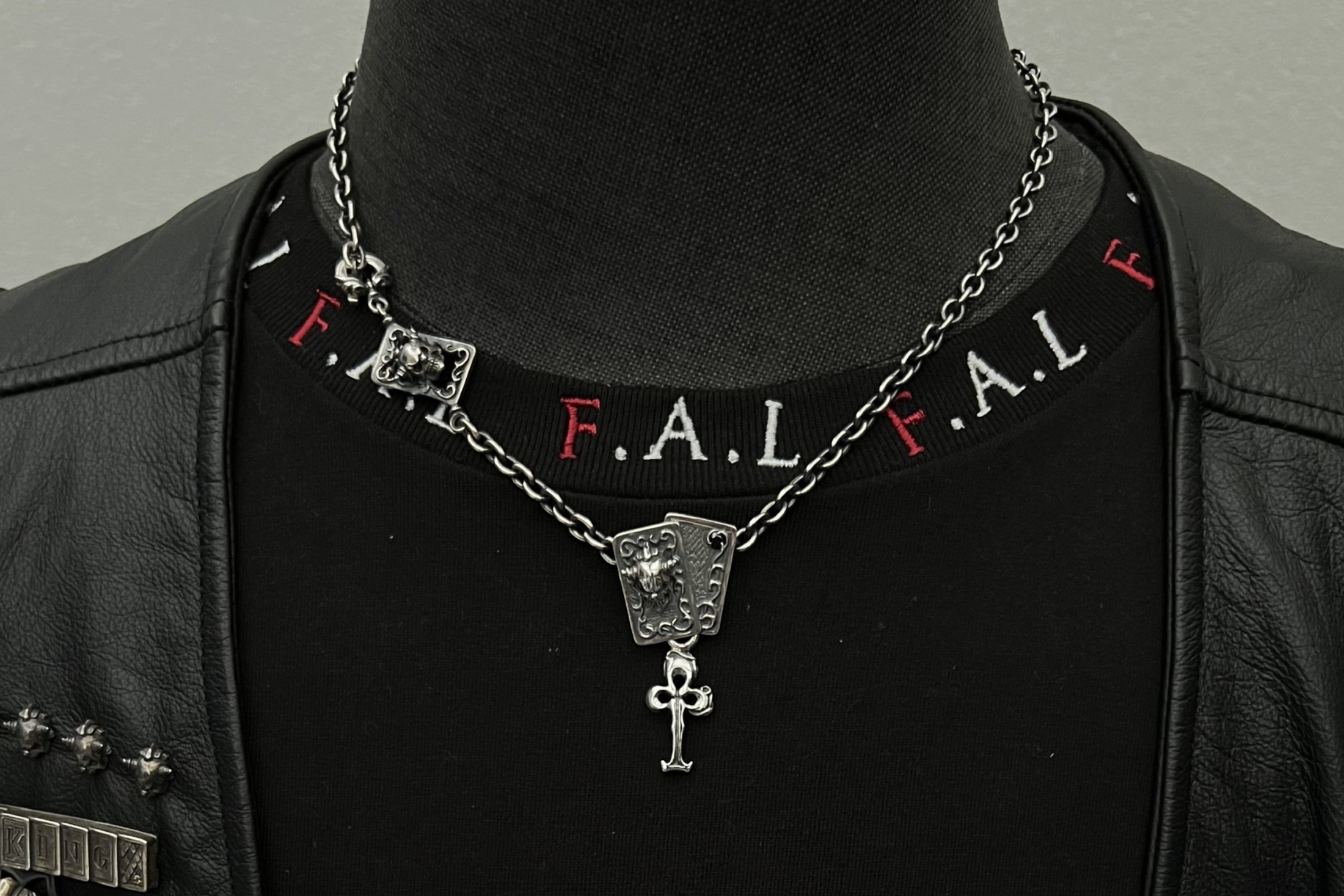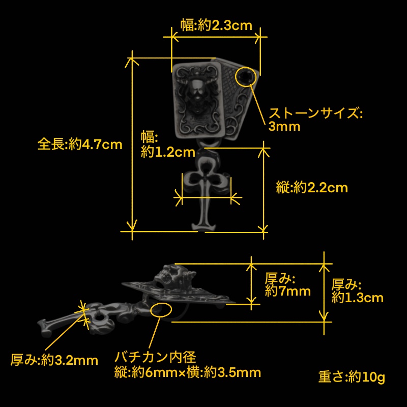 チェーンが通るデザインになっている。スウィルはジョーカーのカードを表現。