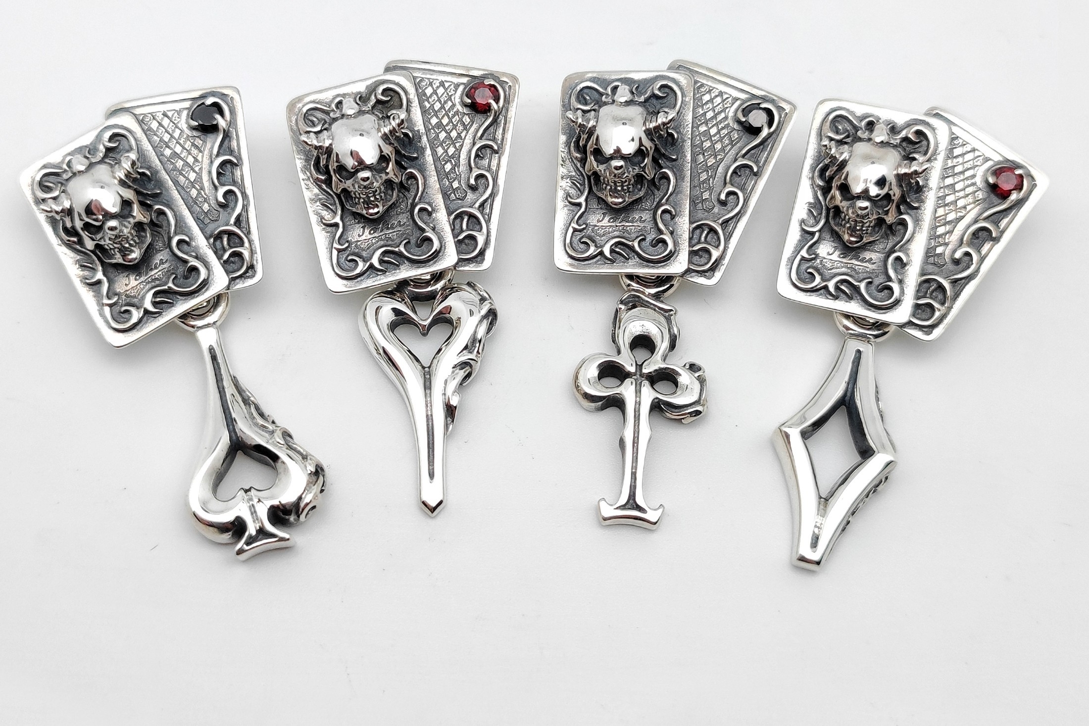 もう一方のカードの角にはスートに合わせたカラーのストーンをセット。カード