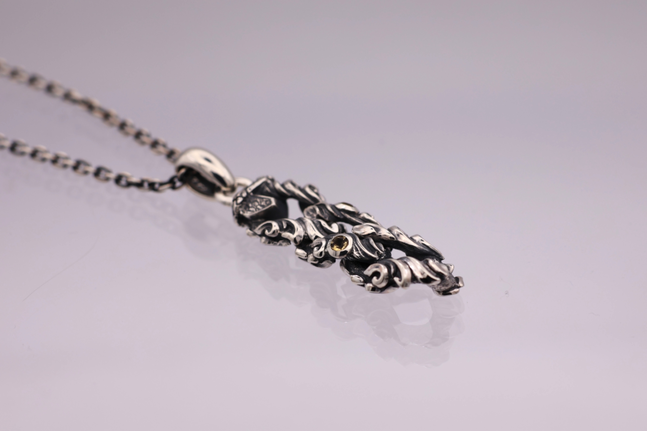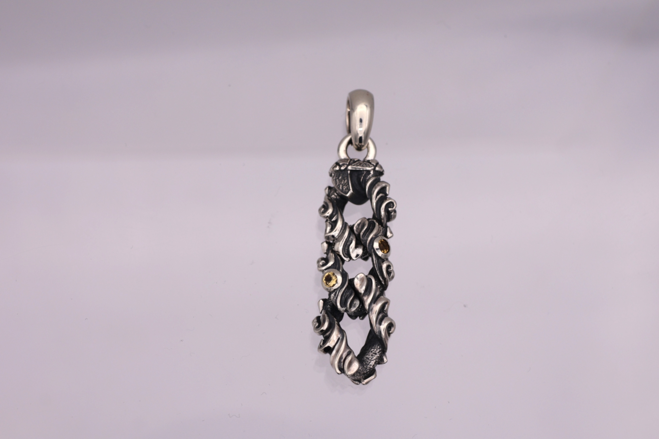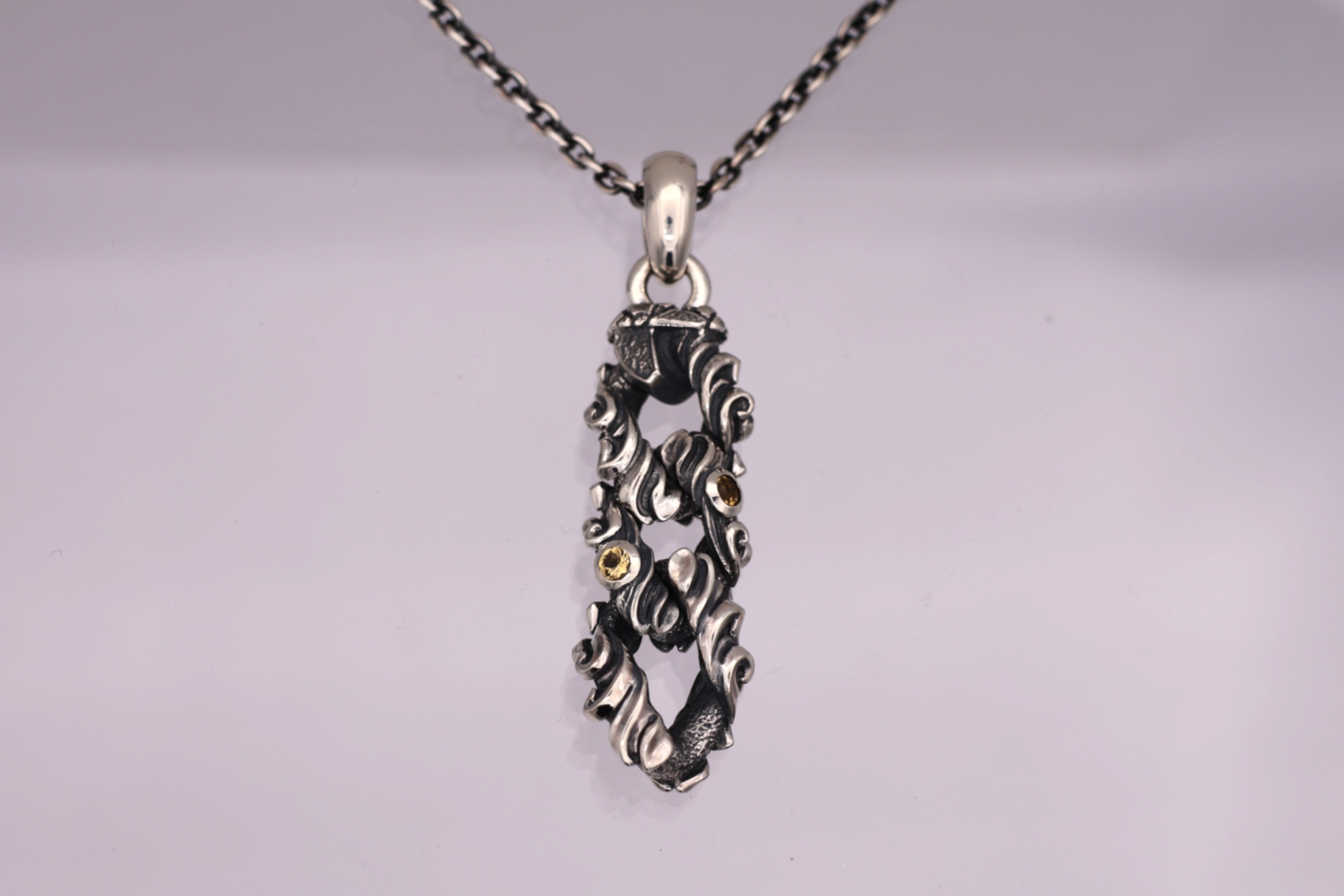 喜平(KIHEI)アラベスクリーフ【3連、中央パーツにシトリン2石フクリン留め】ペンダント