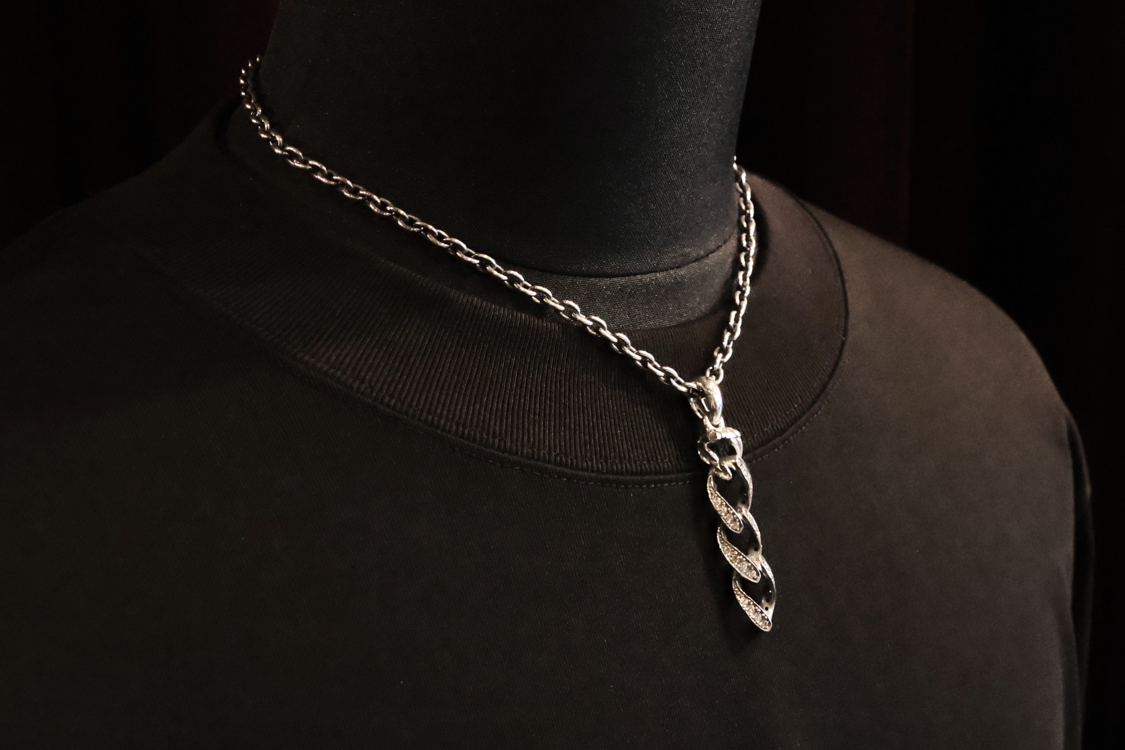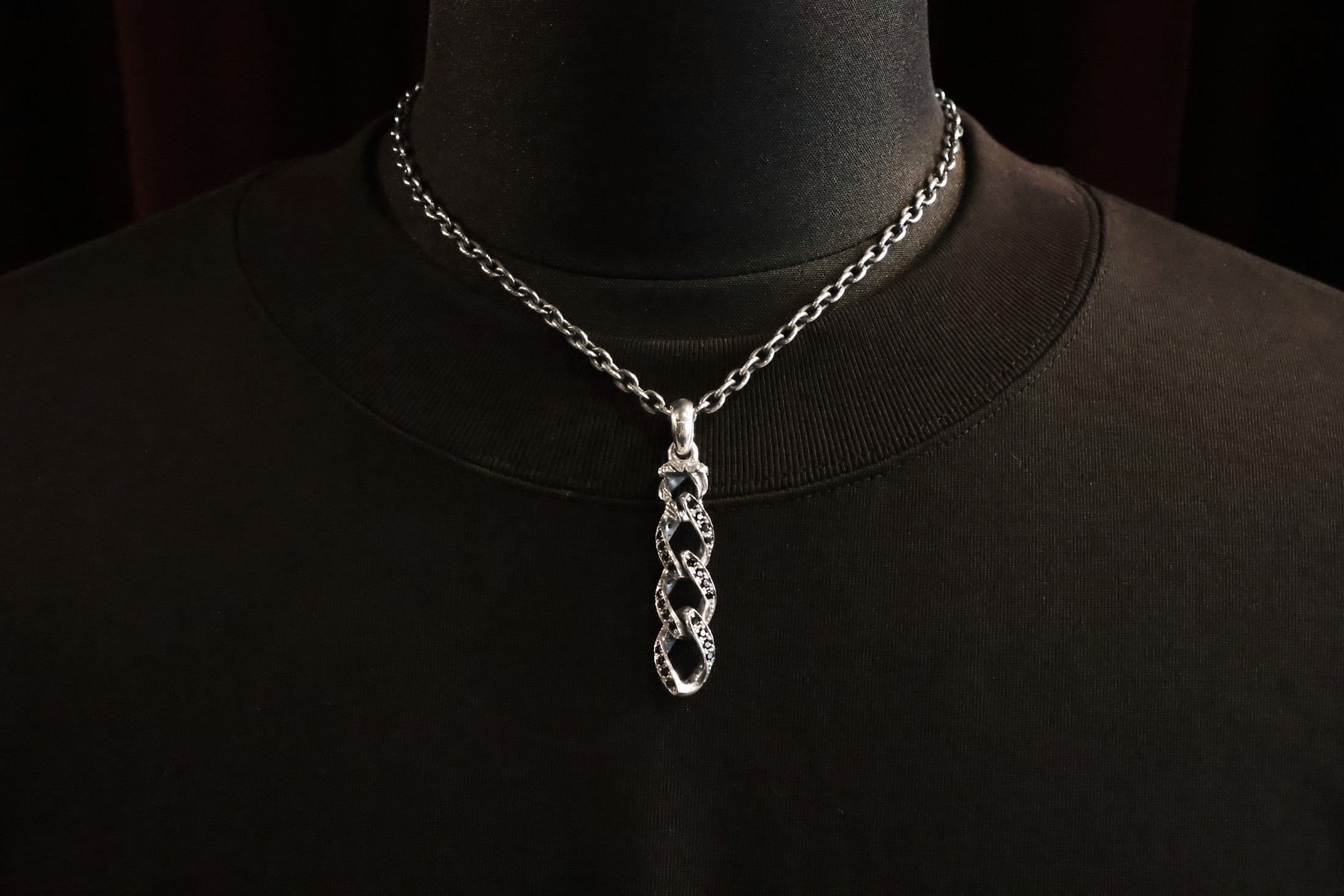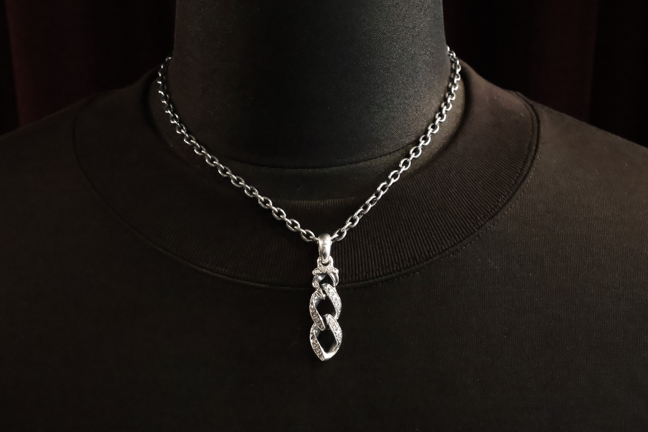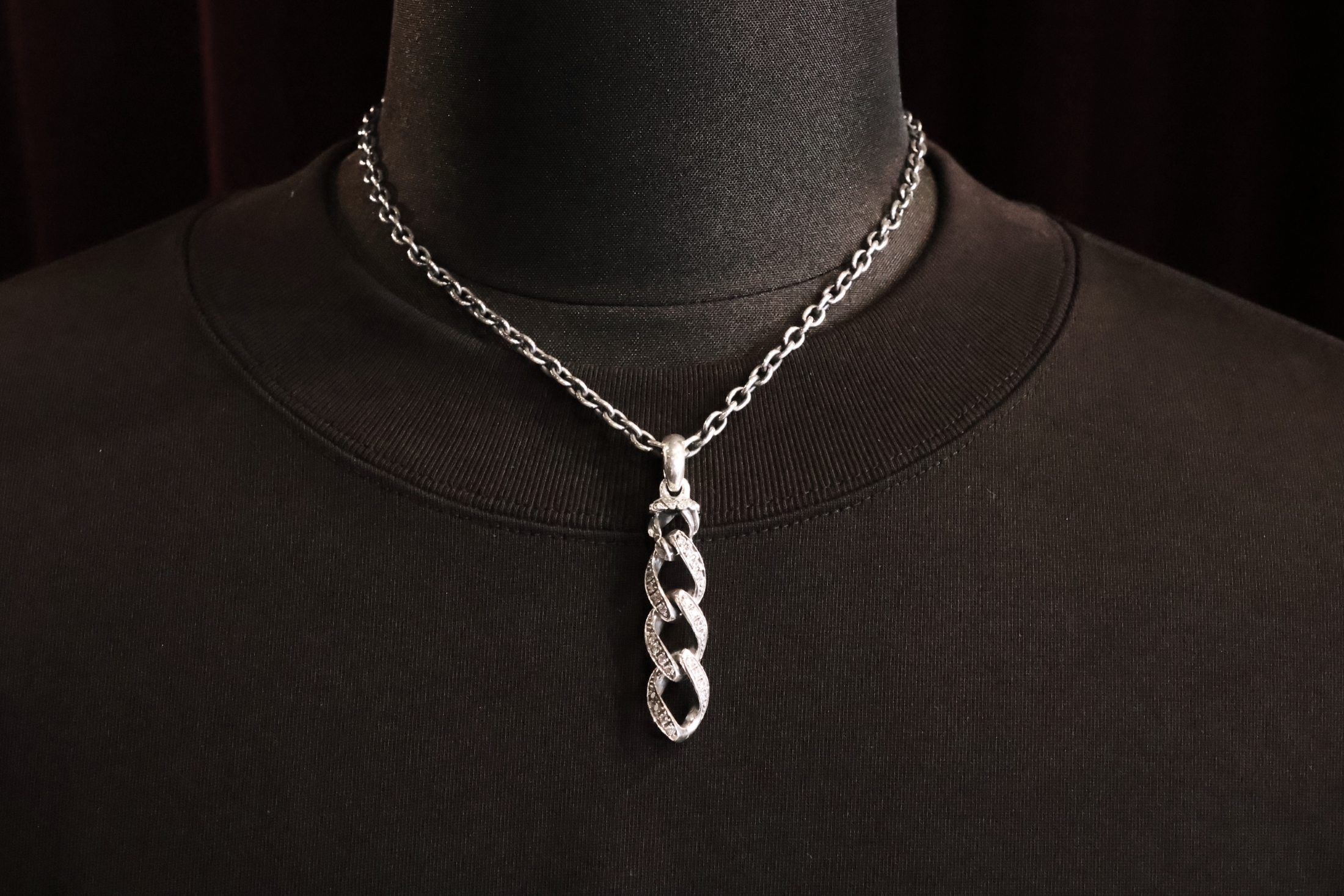 フラットリンクチェーン(キヘイチェーン)デザインのペンダント。キヘイパーツが