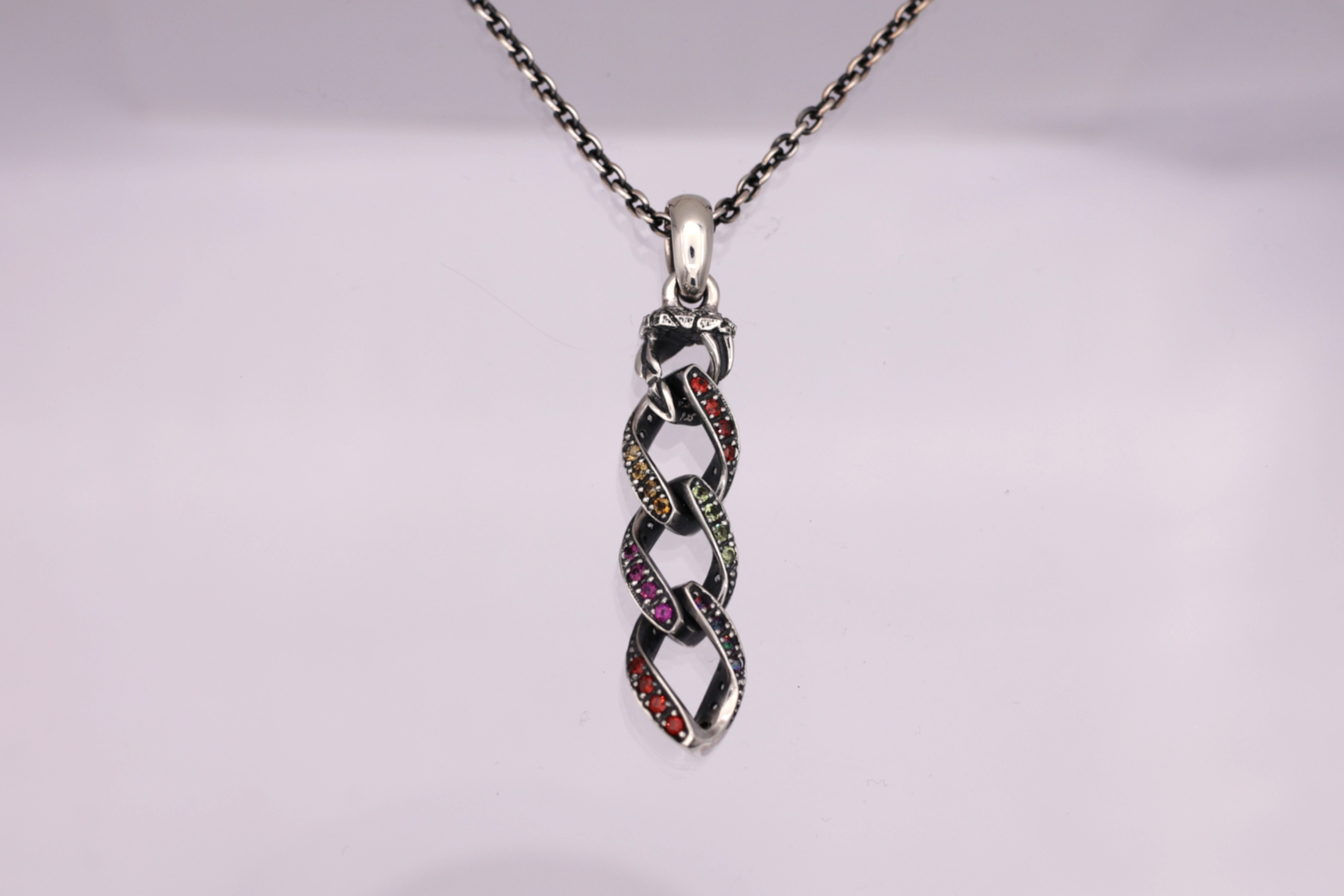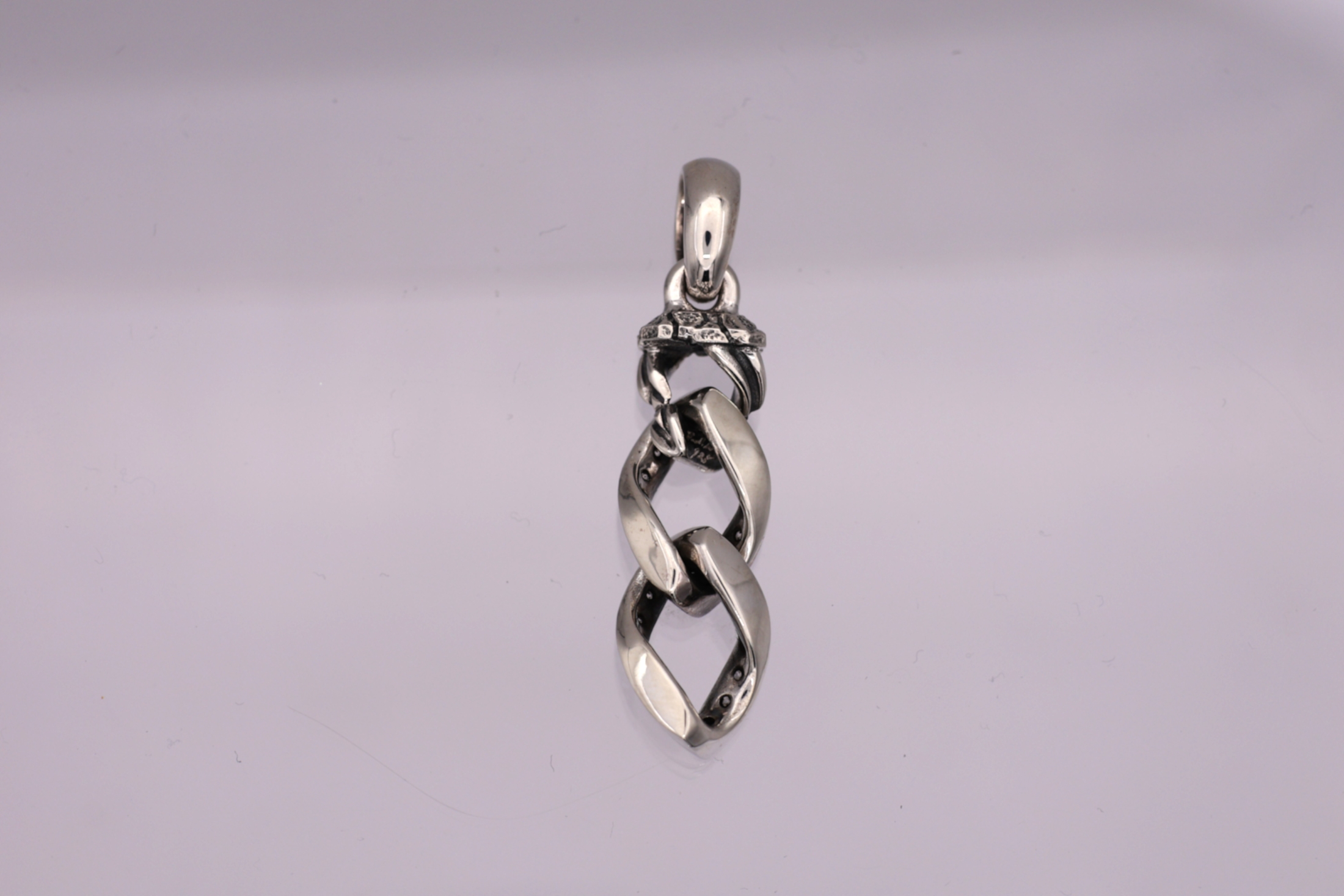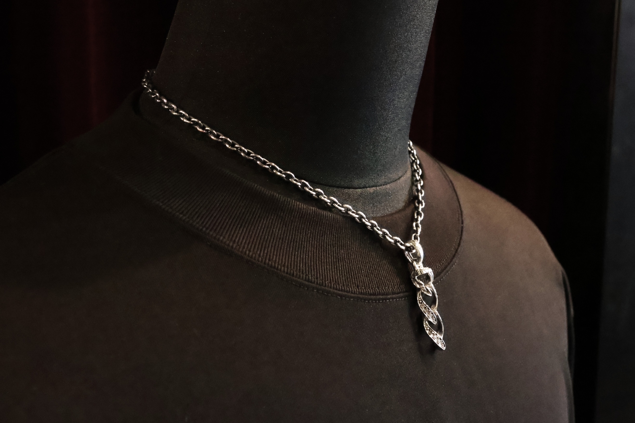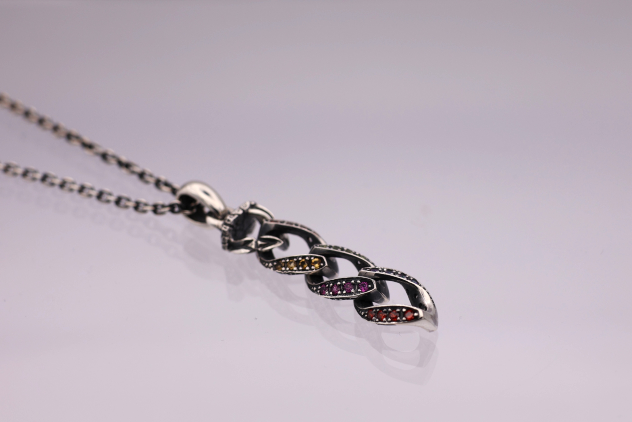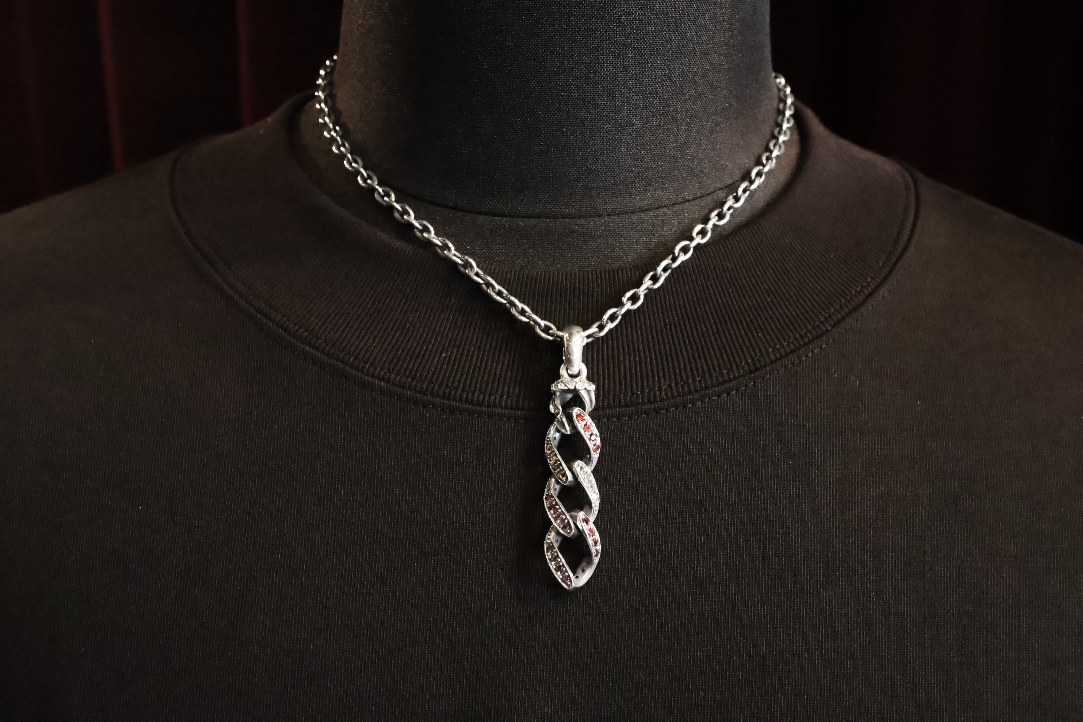 フラットリンクチェーン(キヘイチェーン)デザインのペンダント。キヘイパーツが