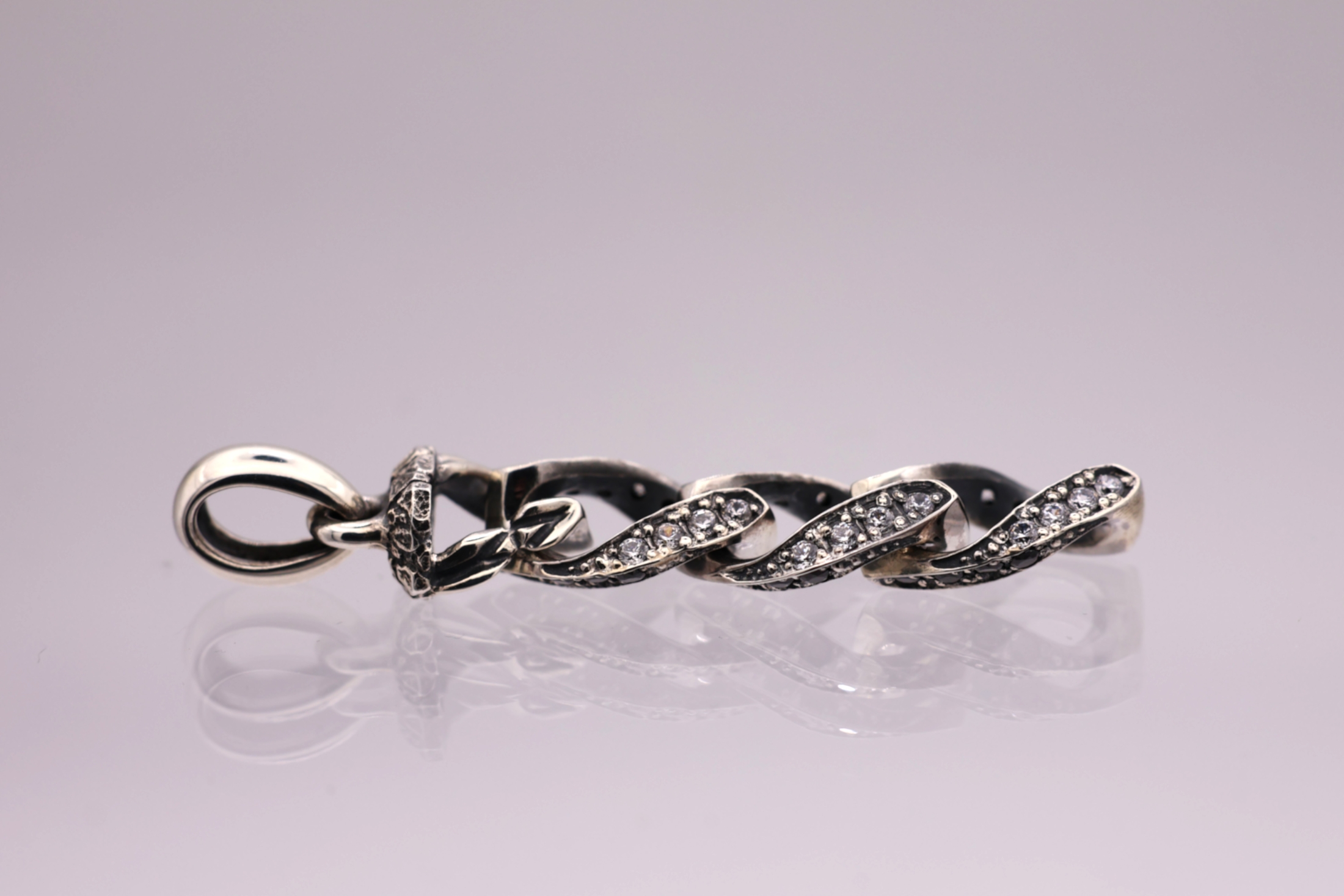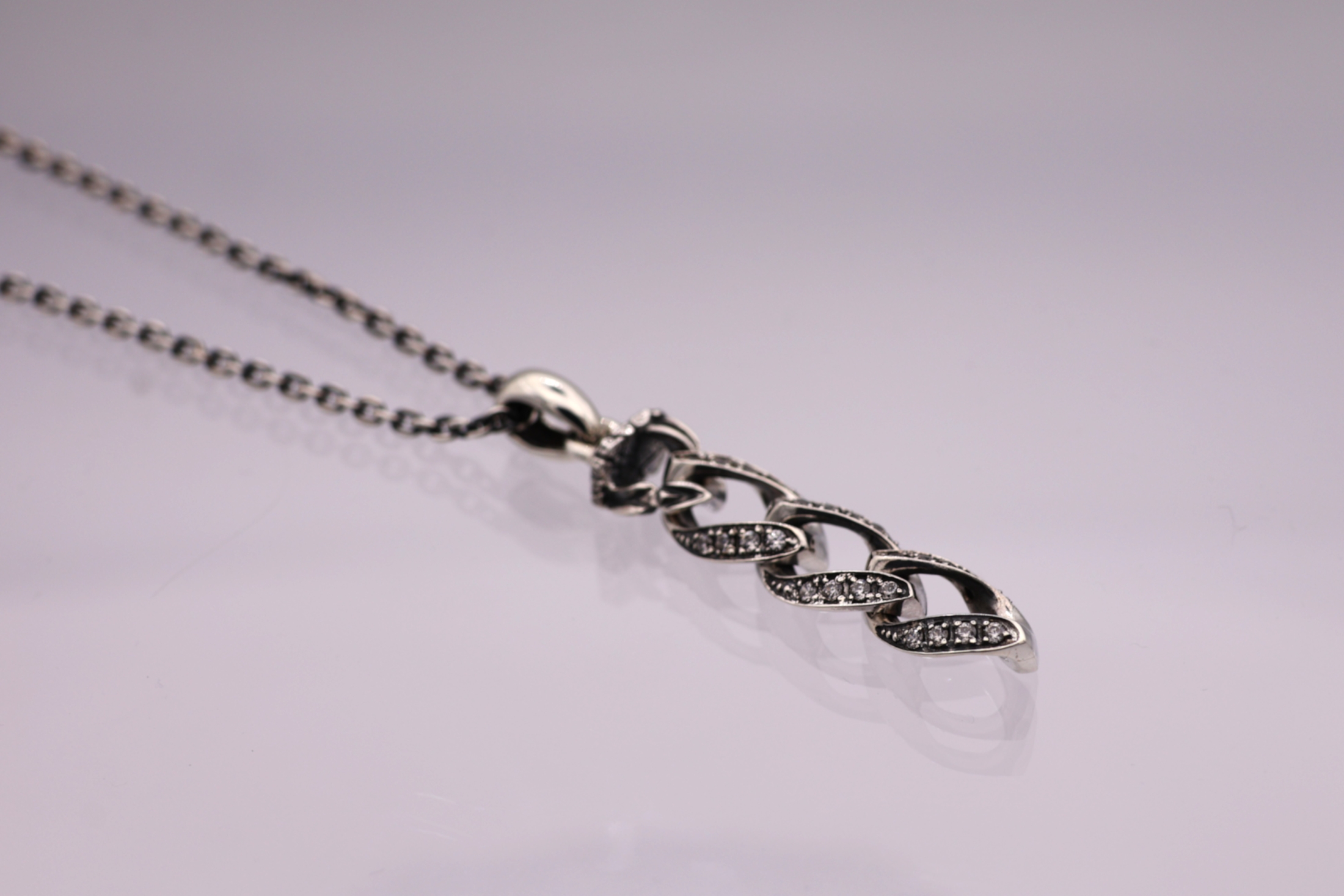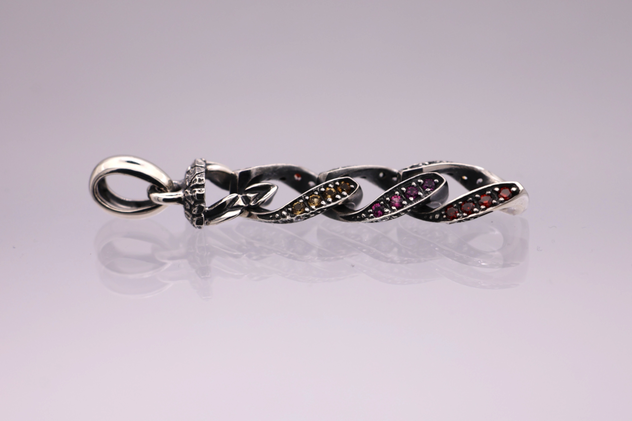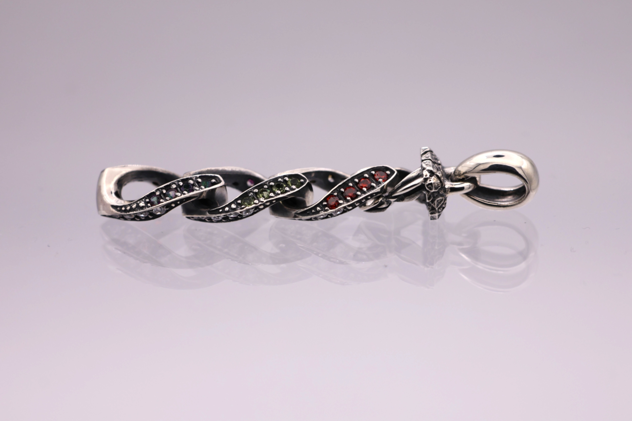 フラットリンクチェーン(キヘイチェーン)デザインのペンダント。キヘイパーツが