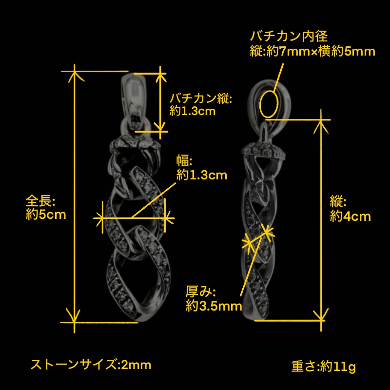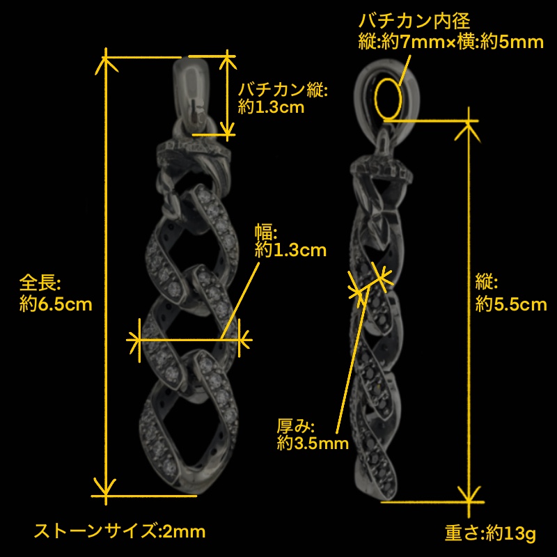が、もう一方はキュービックジルコニアブラックの石がそれぞれ24石パヴェセッ