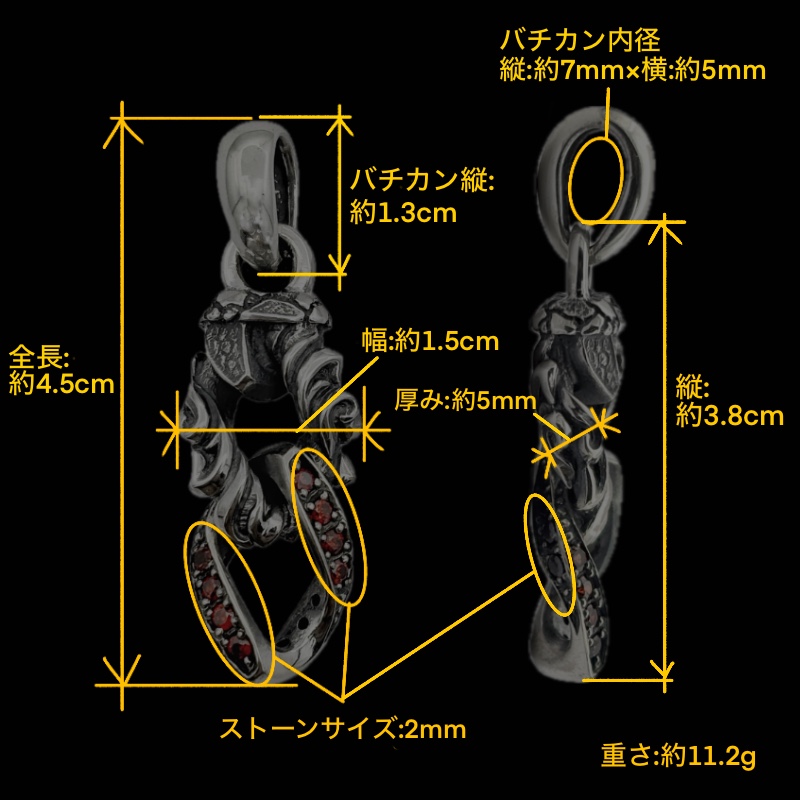 【2連、表面ガーネット8石、裏面CZブラック8石、リバーシブル計16石】ペンダント