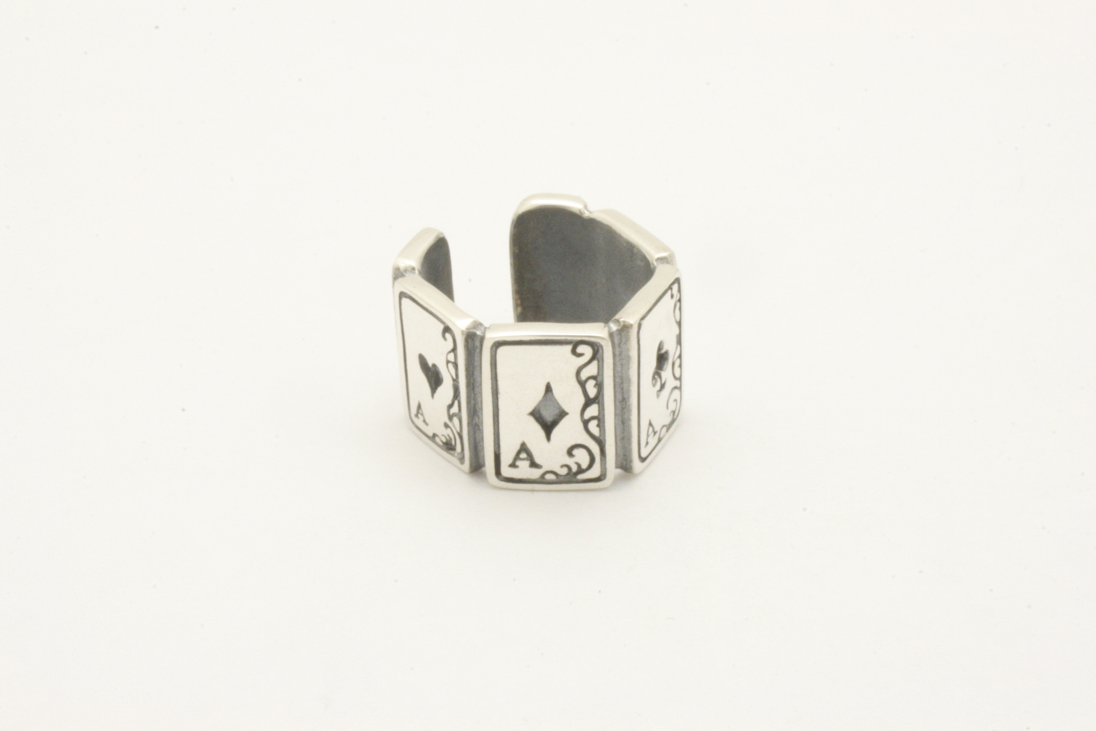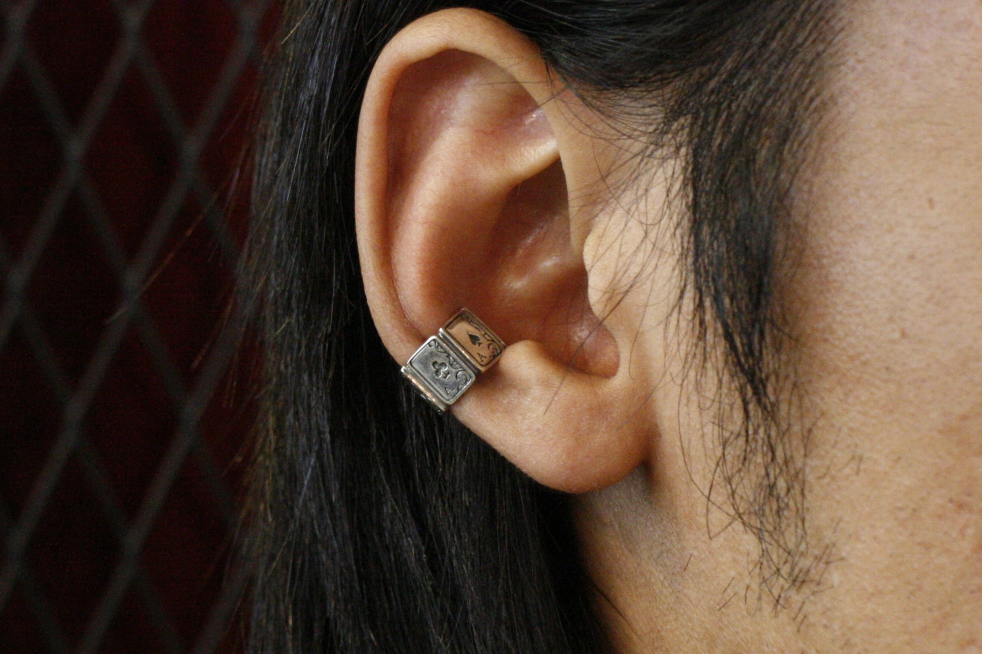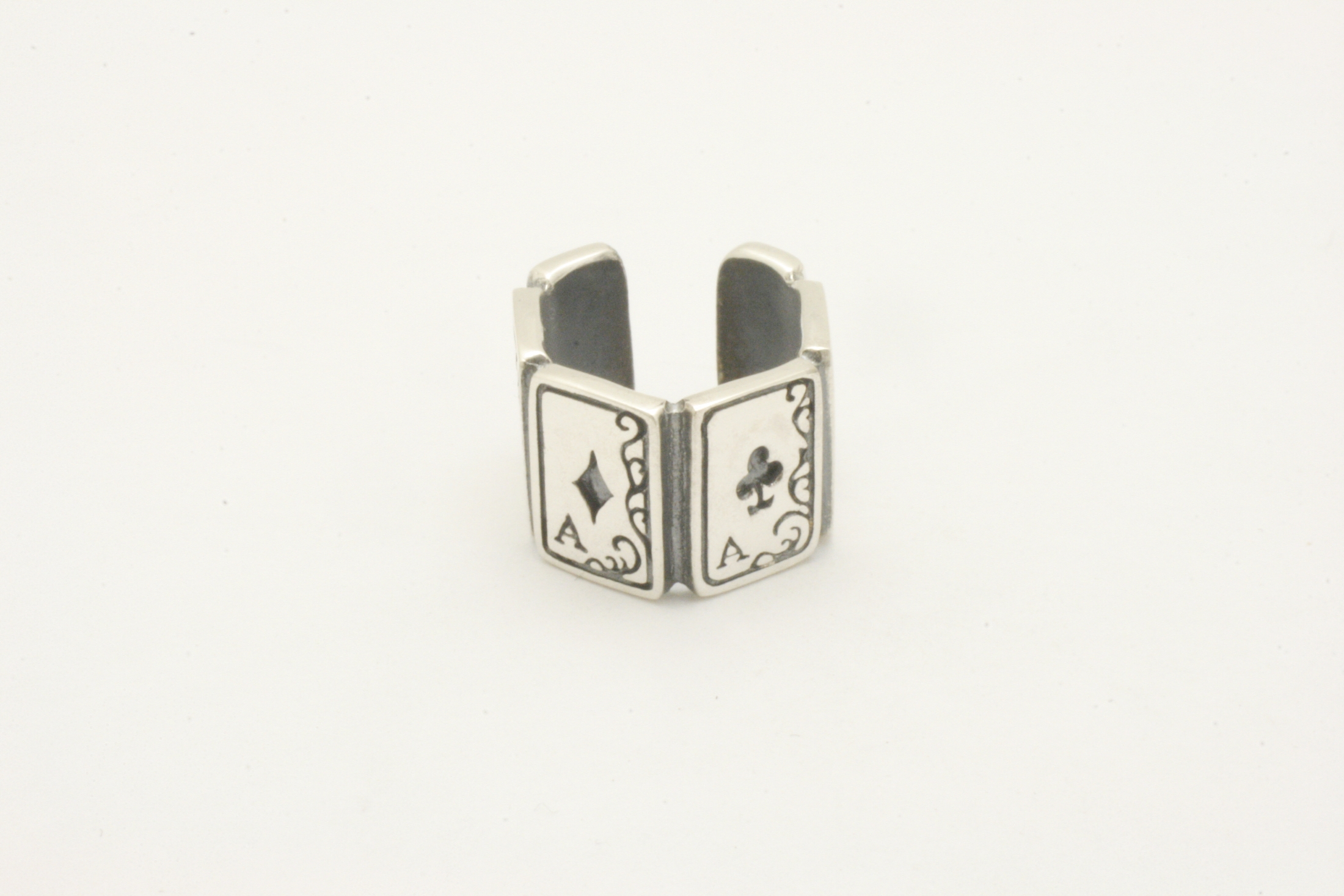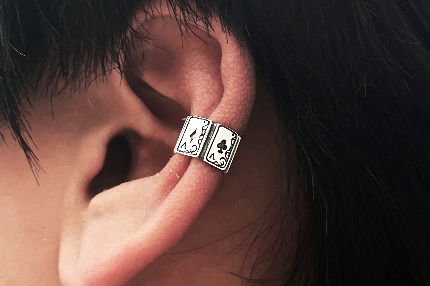 トランプのエースのカードをモチーフにしたイヤカフス。耳の上部あたりにつけ