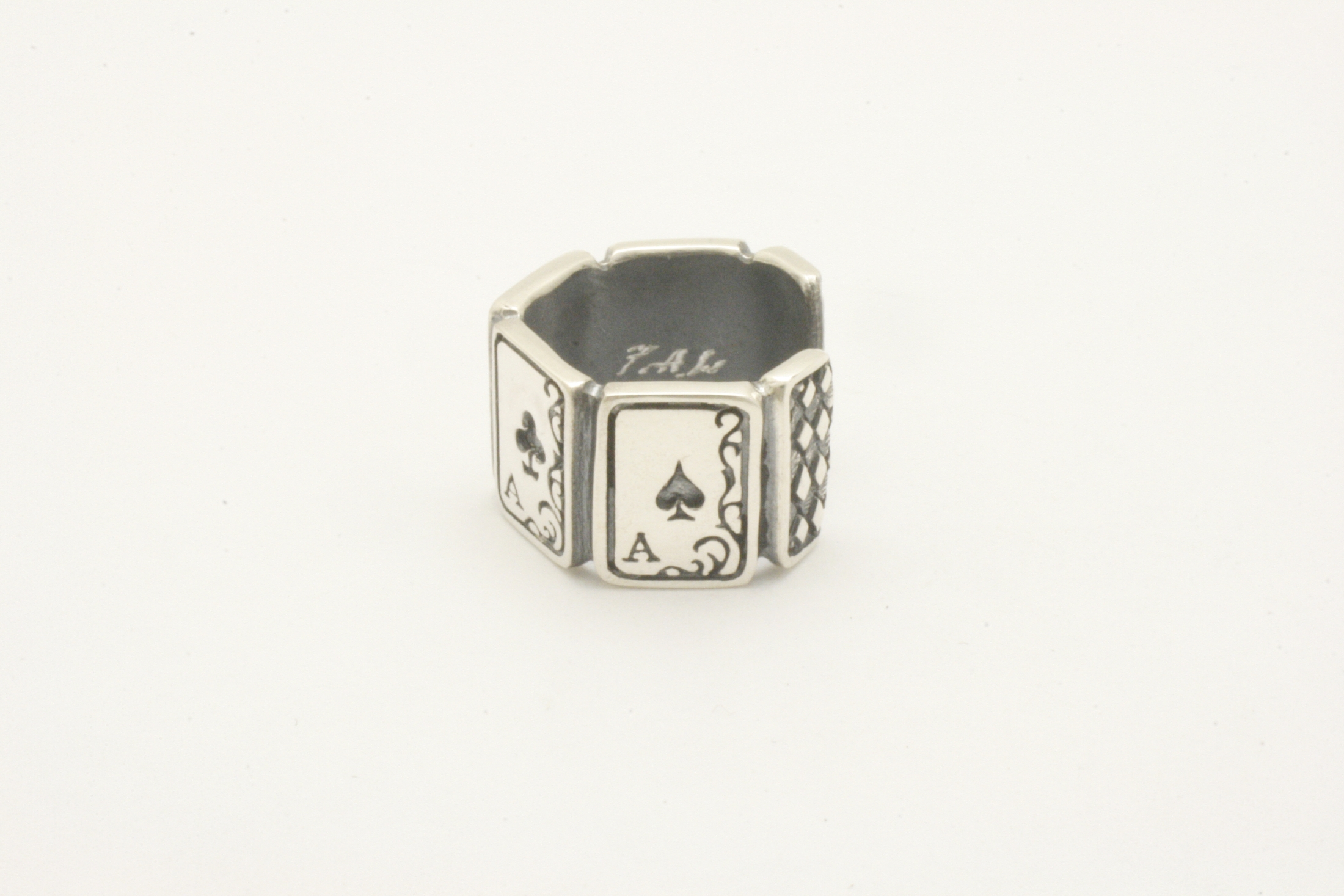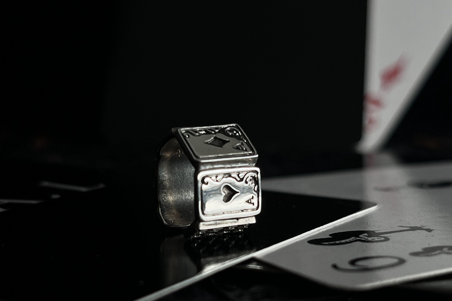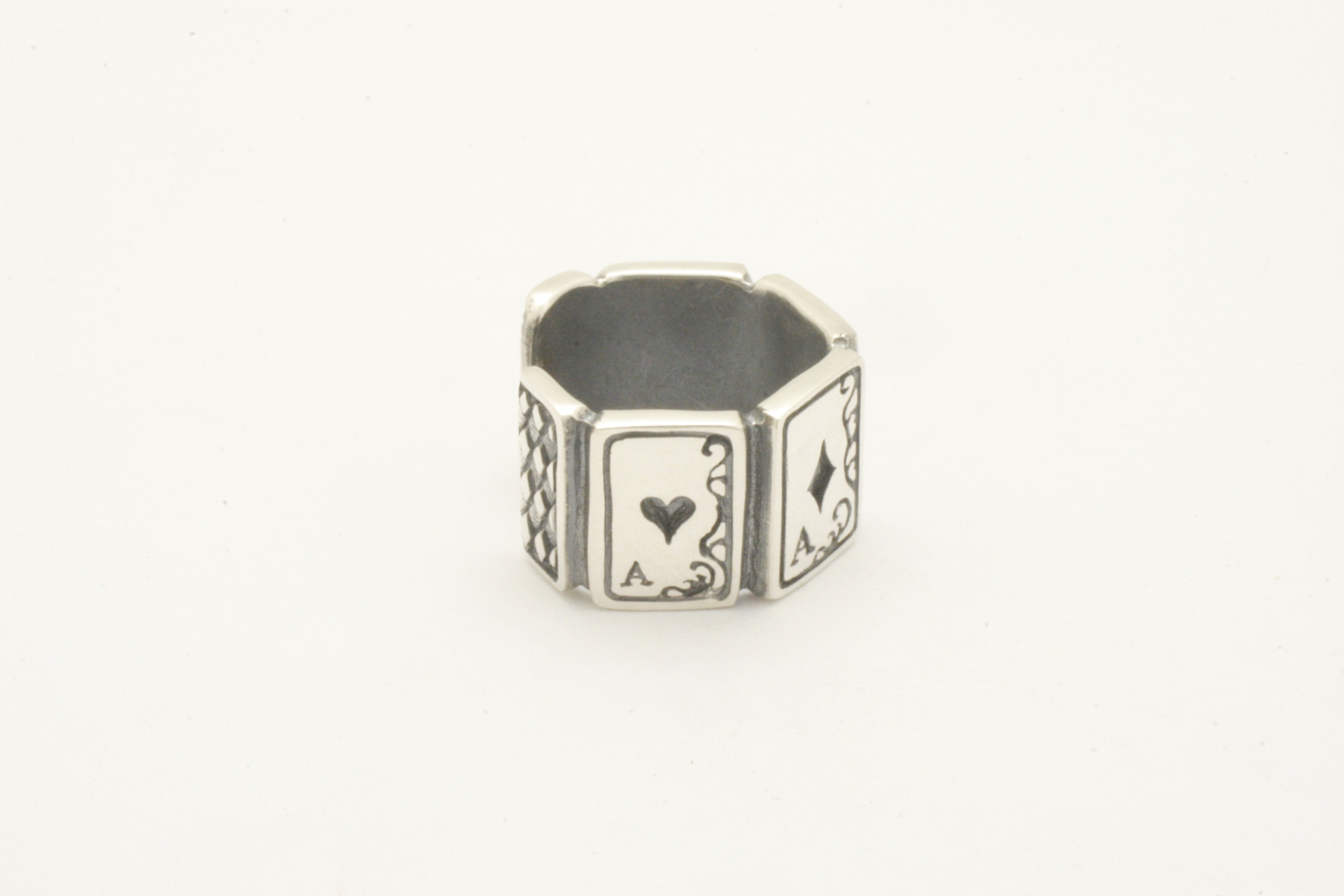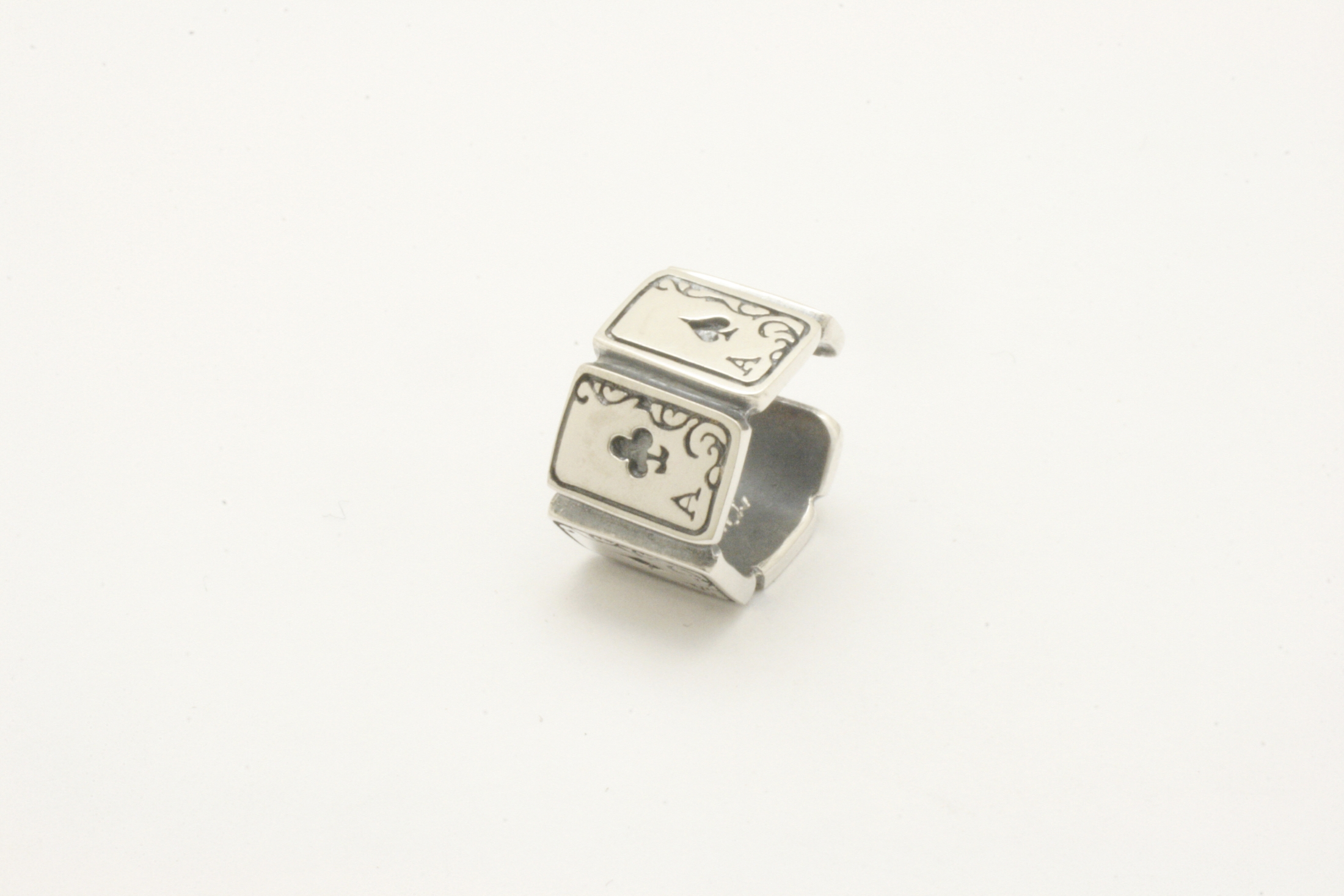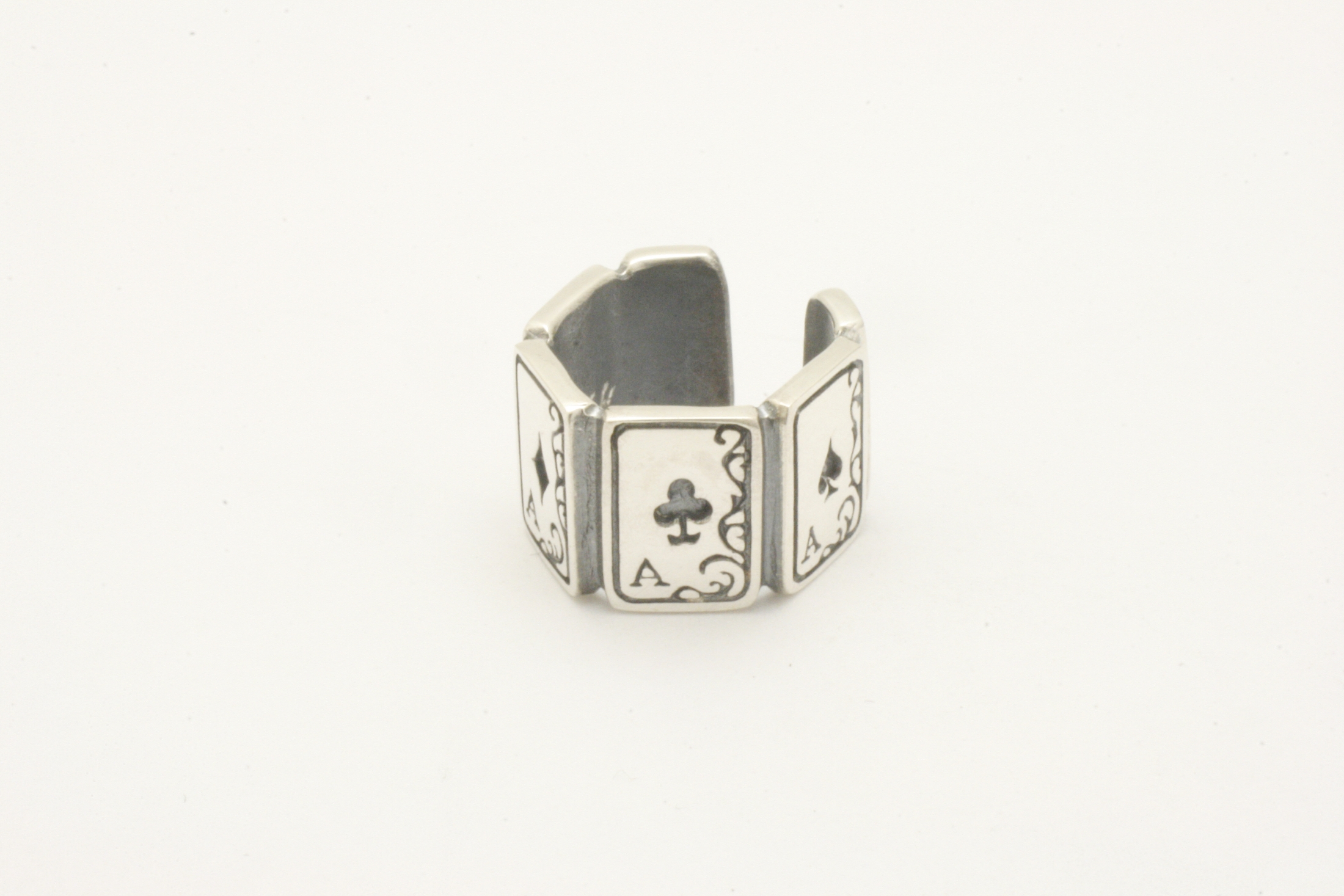 トランプのエースのカードをモチーフにしたイヤカフス。耳の上部あたりにつけ