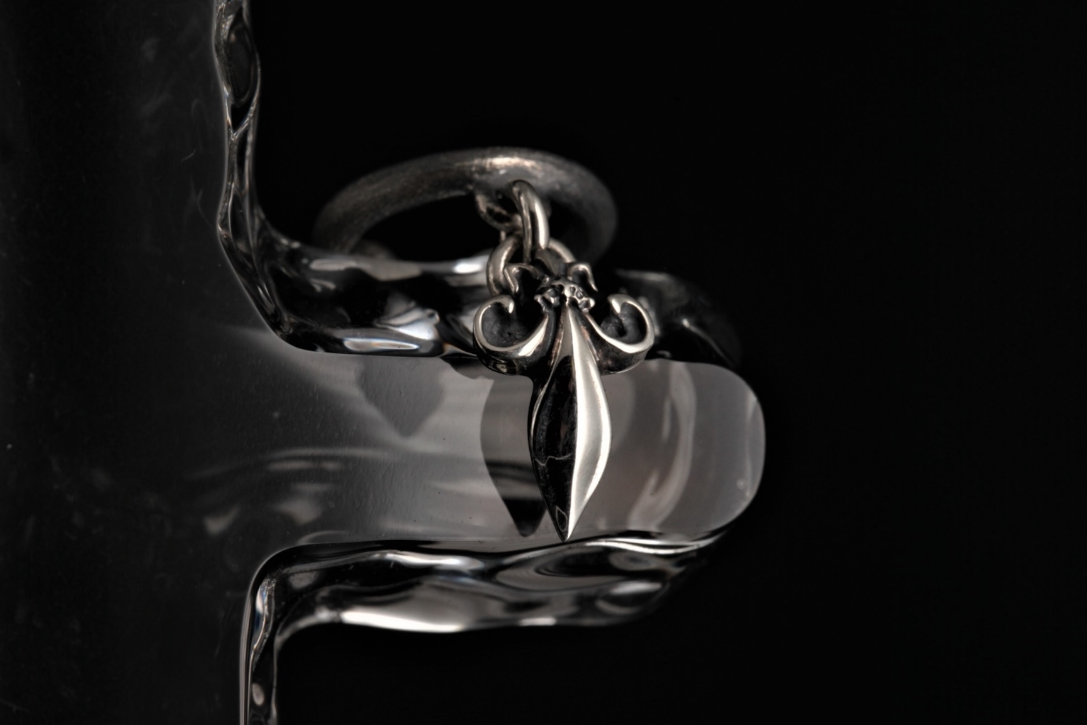 フ本体は燻し仕上げ、逆さ向きのユリの紋章は鏡面仕上げとなっており、質感