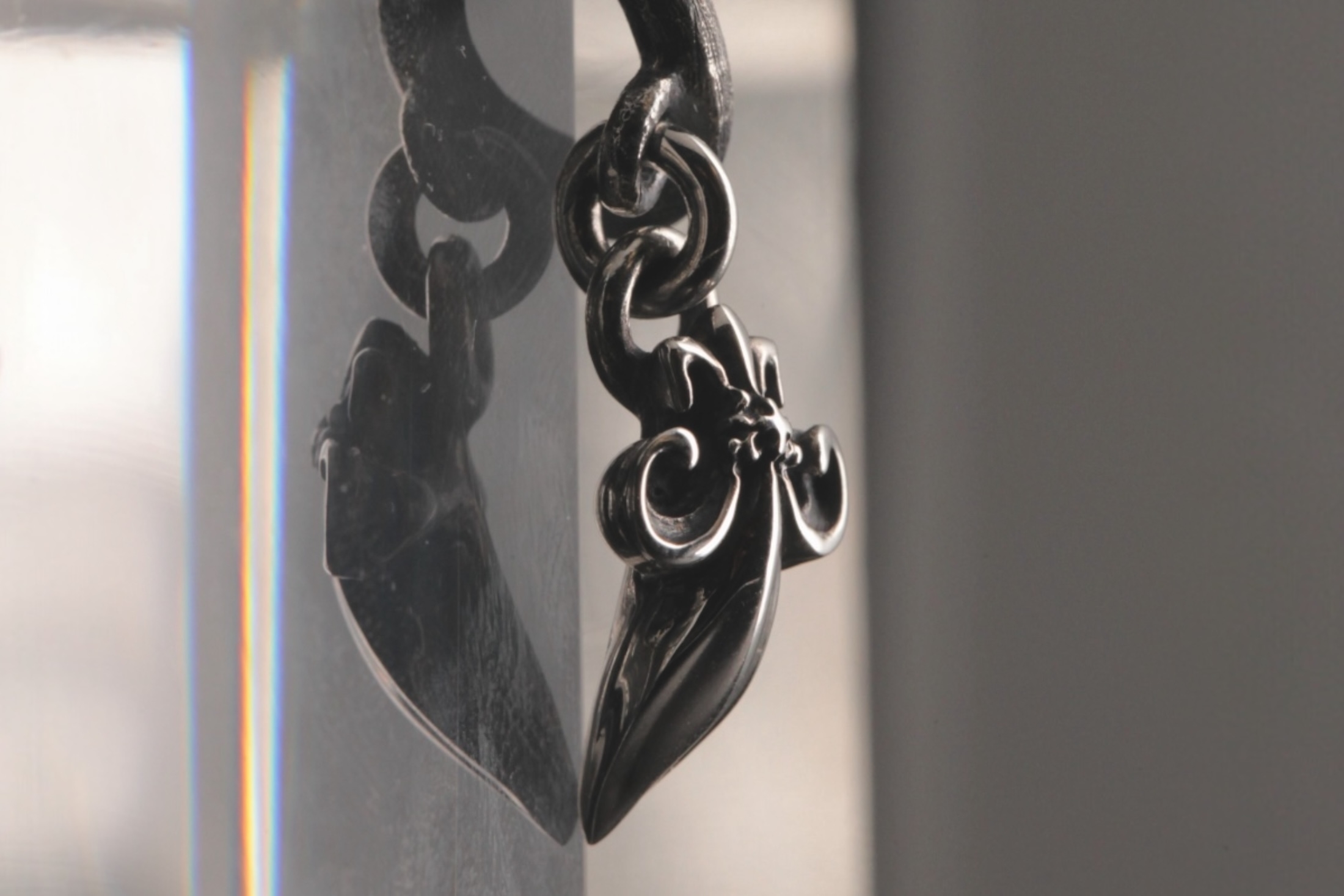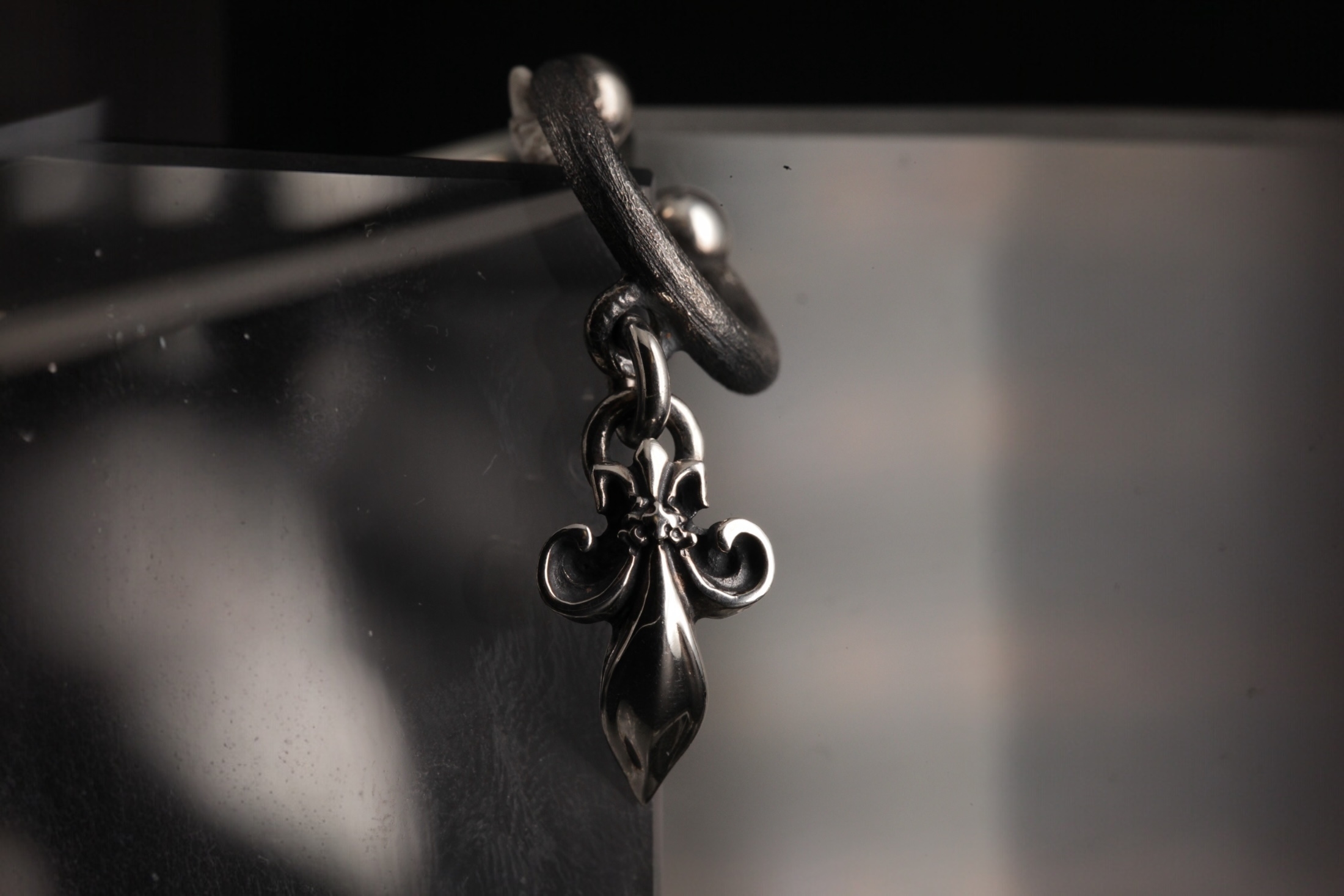 の対比によってチャームが際立つデザイン。チャームは丸環で接続された揺