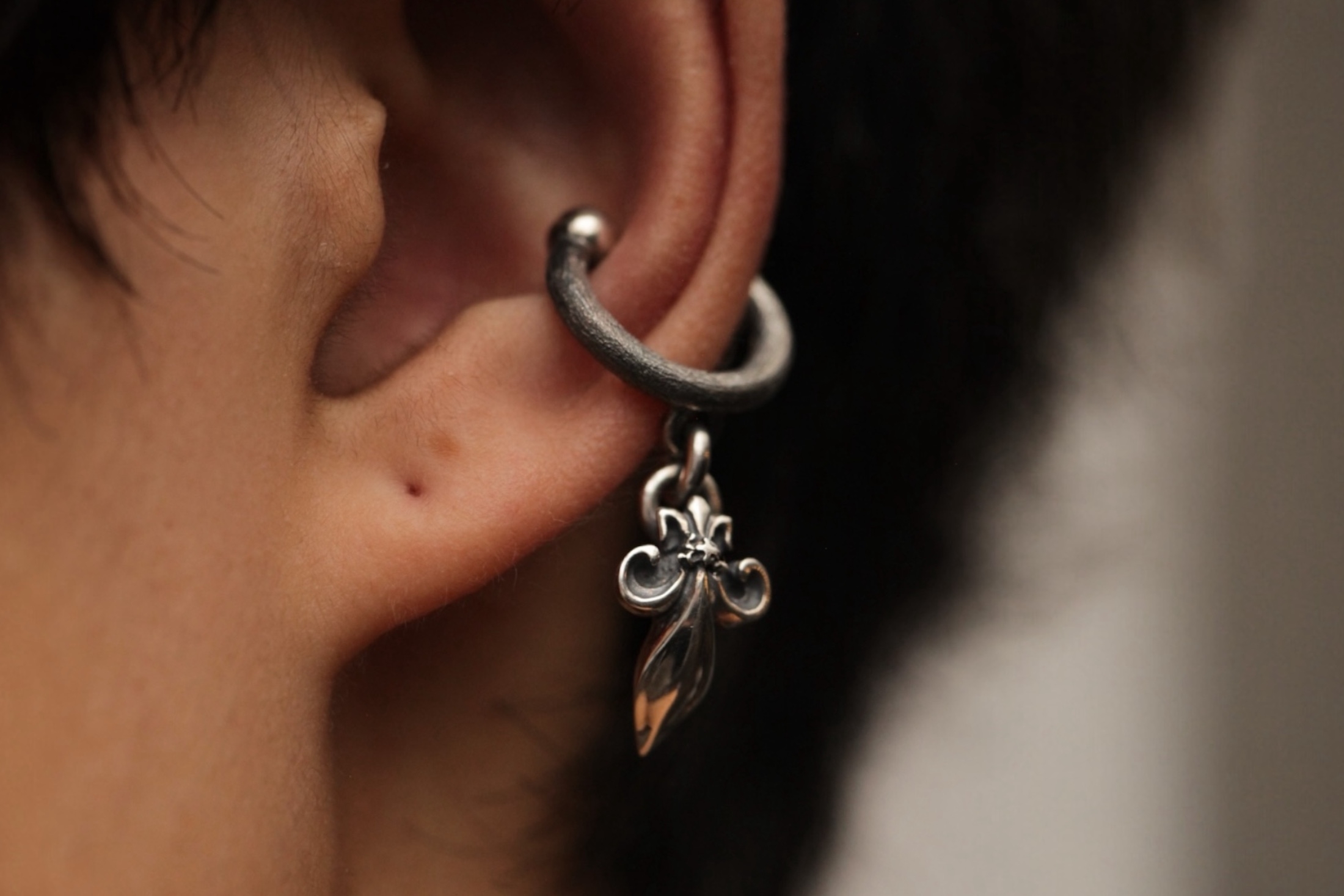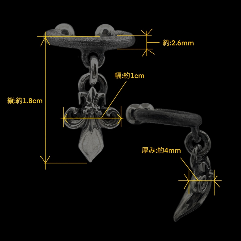 ユリの紋章をモチーフにしたチャームを組み合わせたC字型のイヤカフ。イヤカ