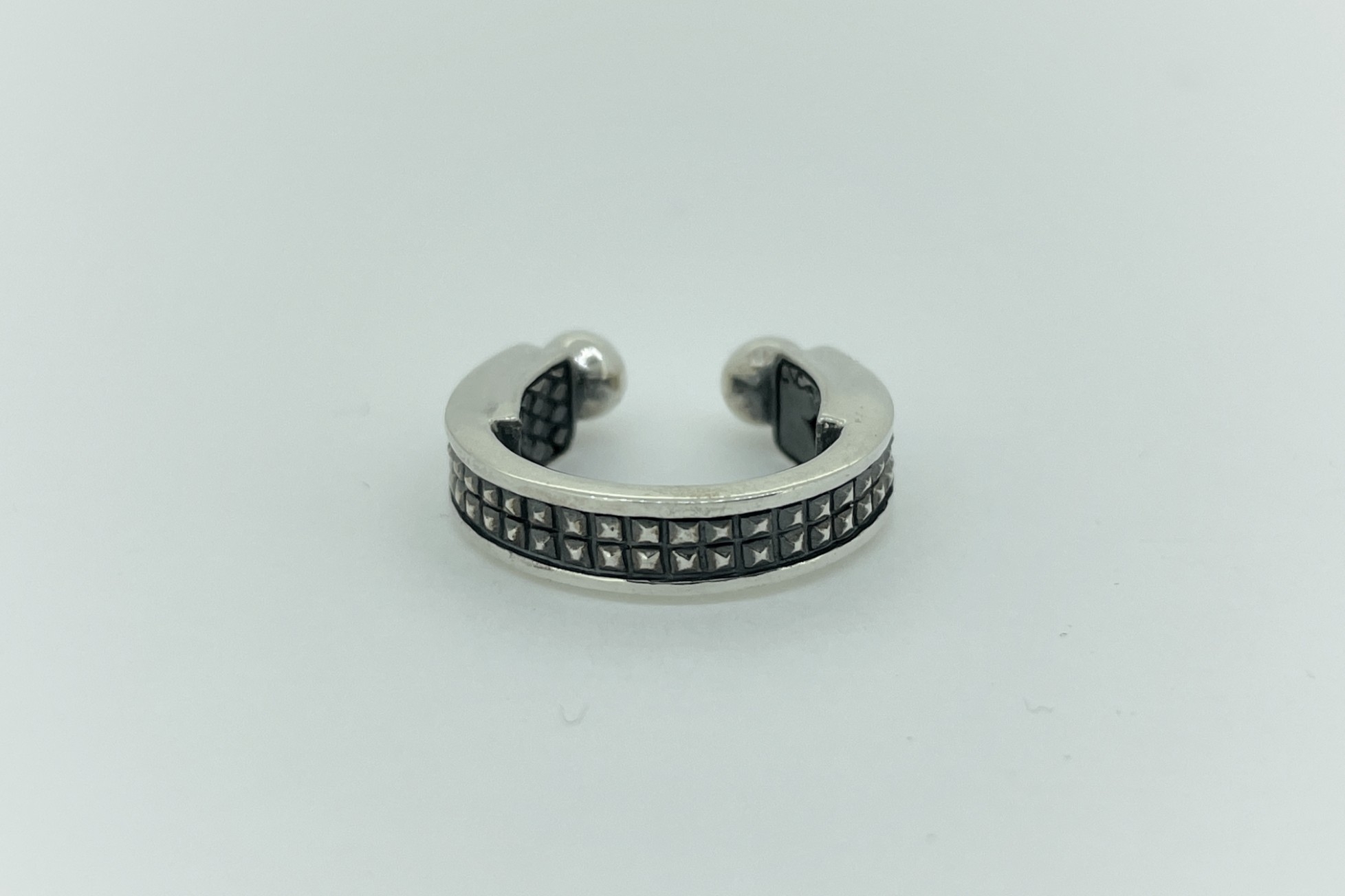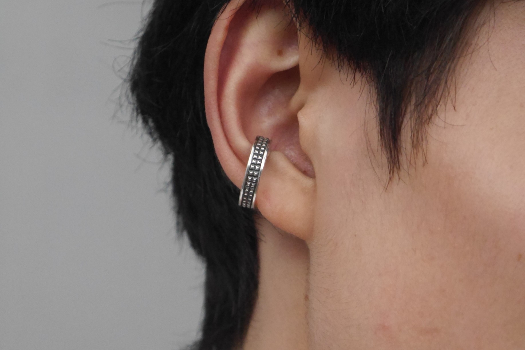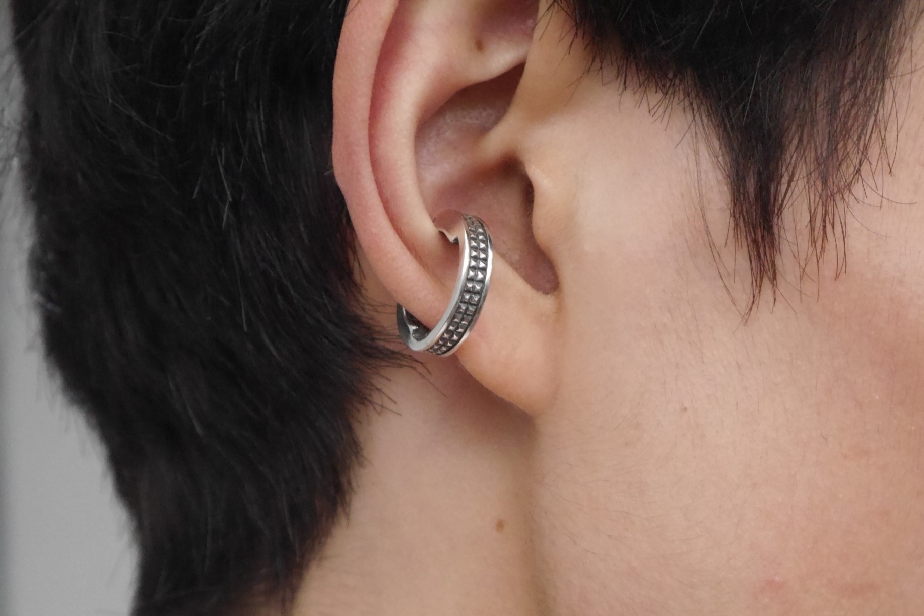 マイクロスタッズデザインのフープ型のイヤーカフ。フープの裏面に2枚のトラン