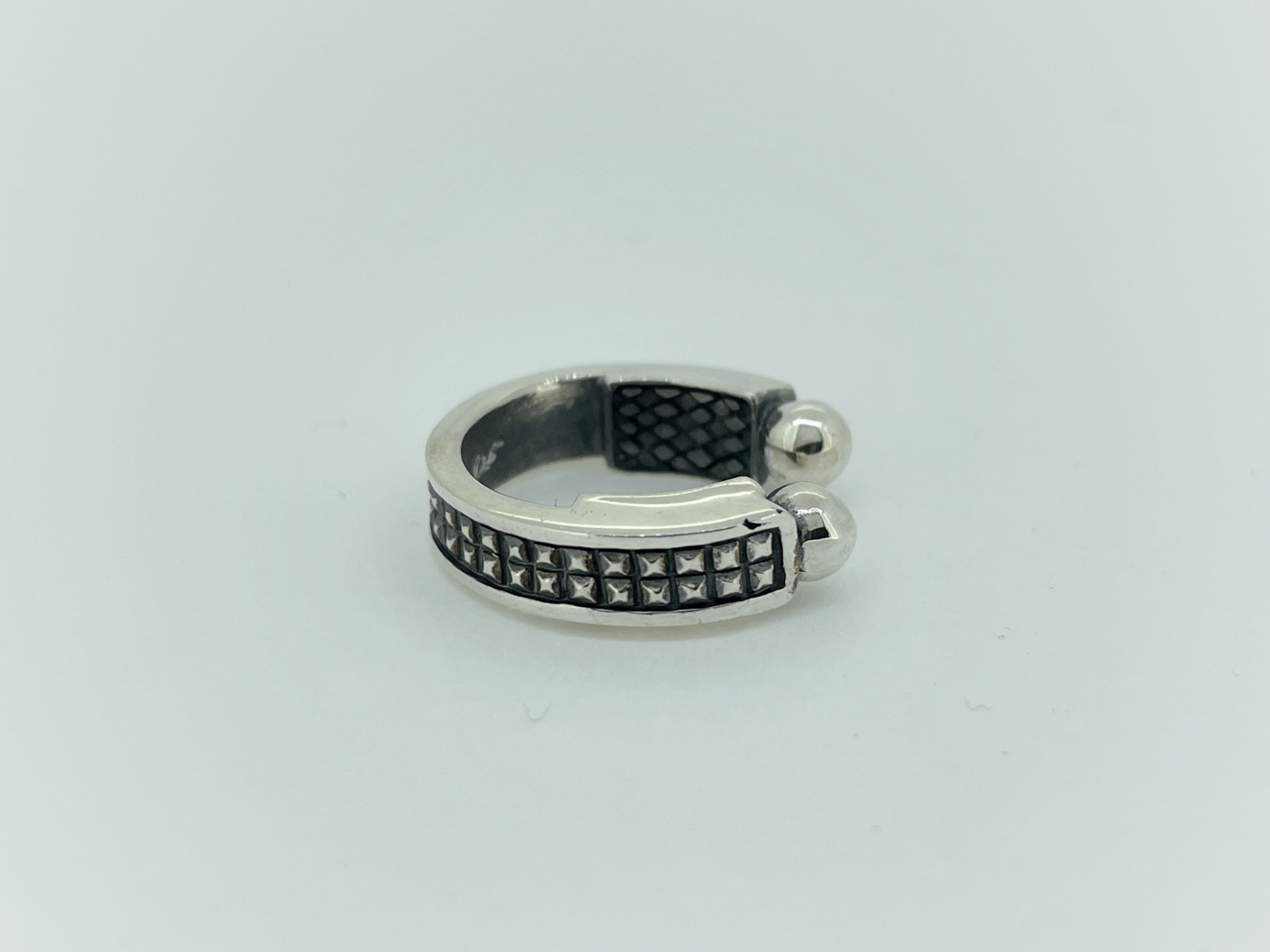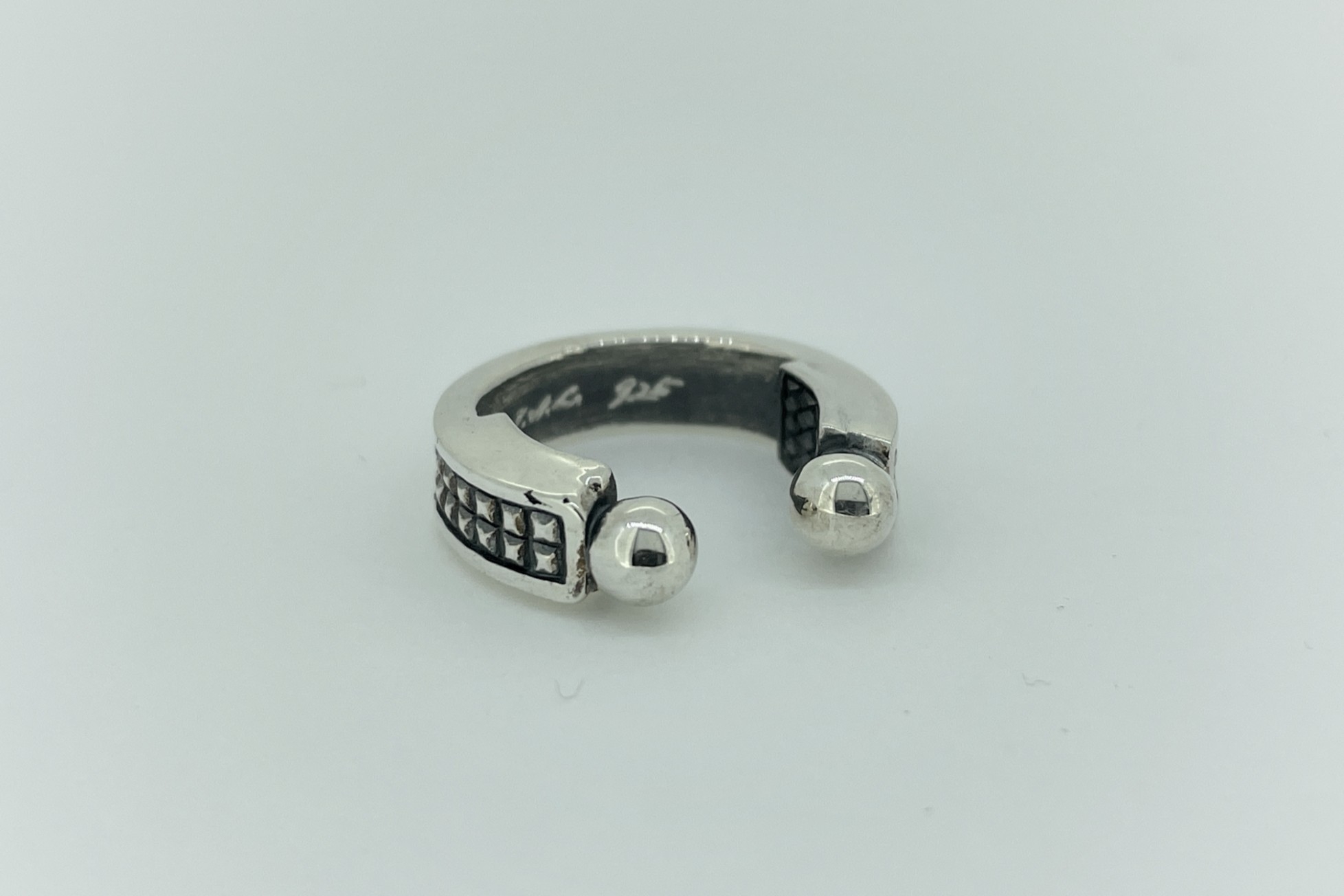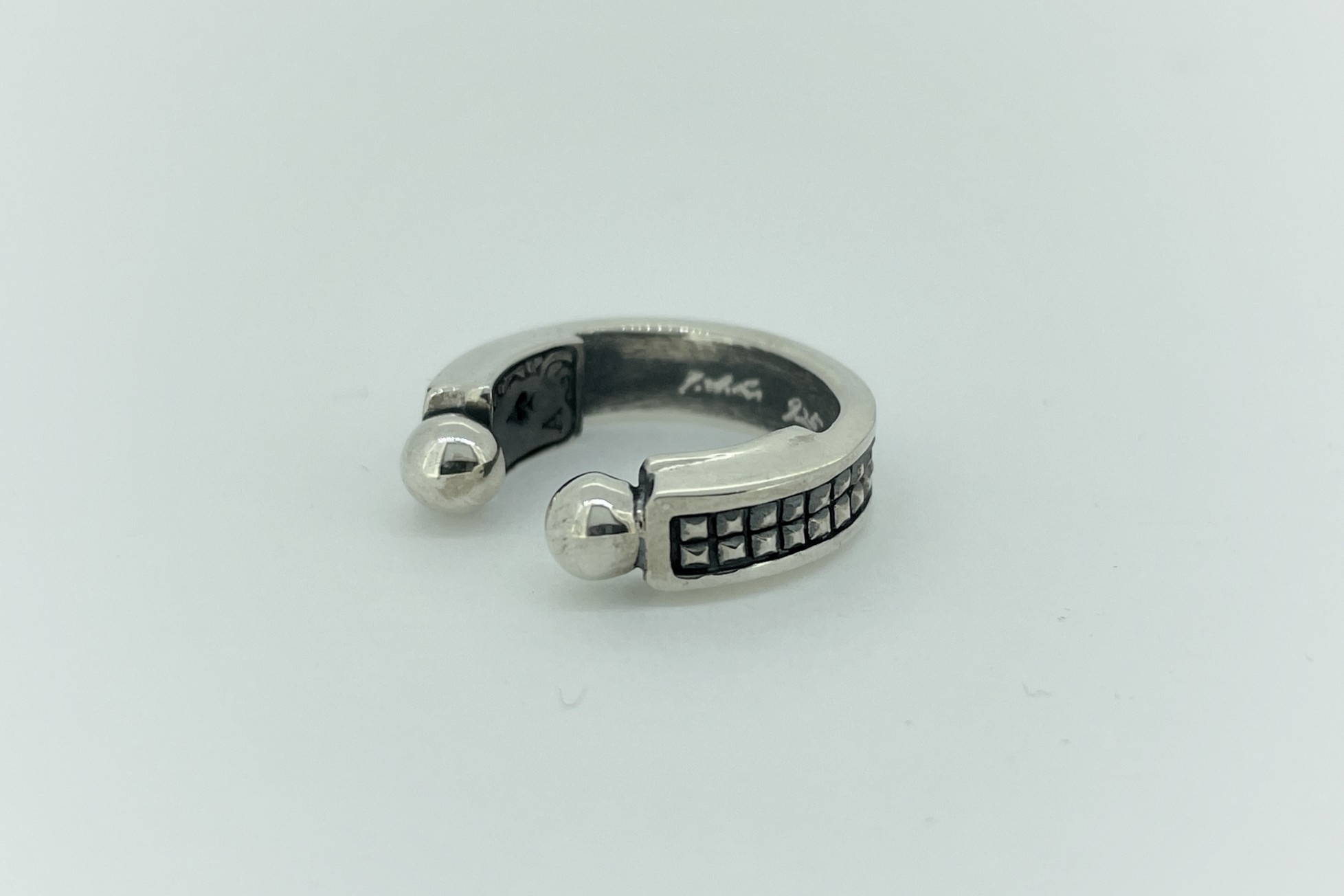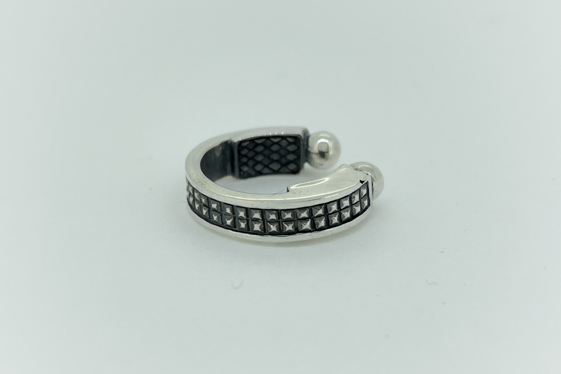 マイクロスタッズデザインのフープ型のイヤーカフ。フープの裏面に2枚のトラン