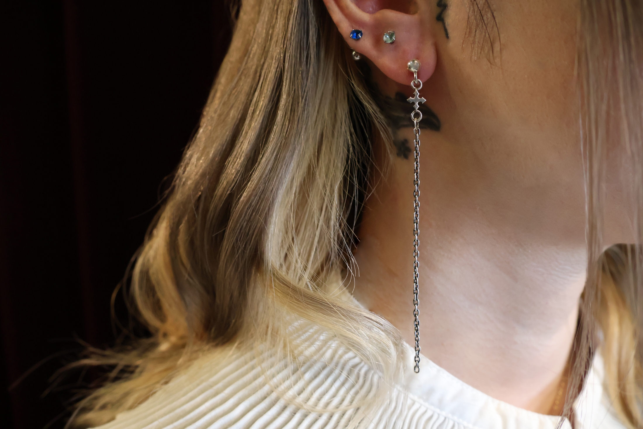 ーンが垂れるデザインのピアス。F.A.Lのピアスでは最長のロングピアスで、着