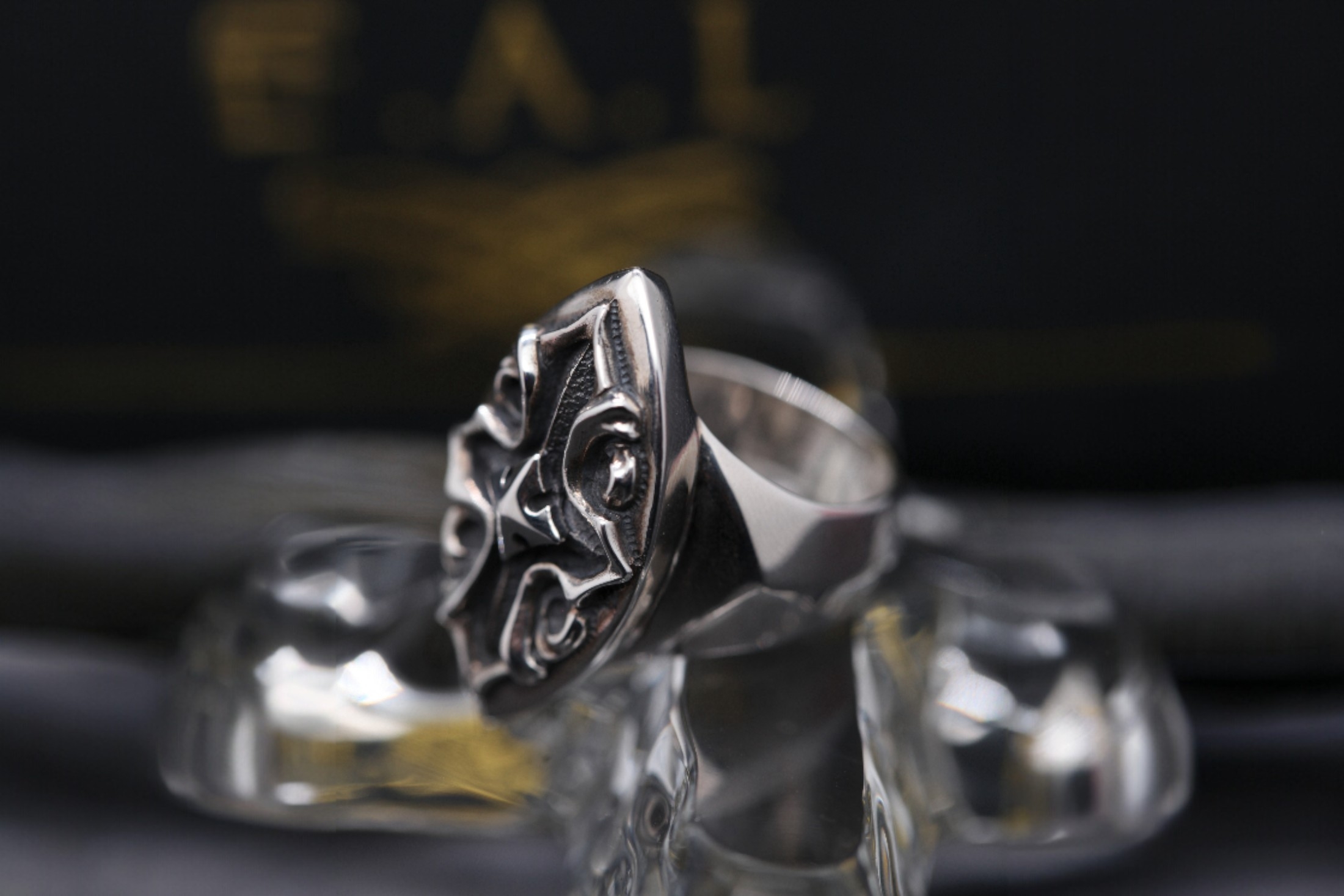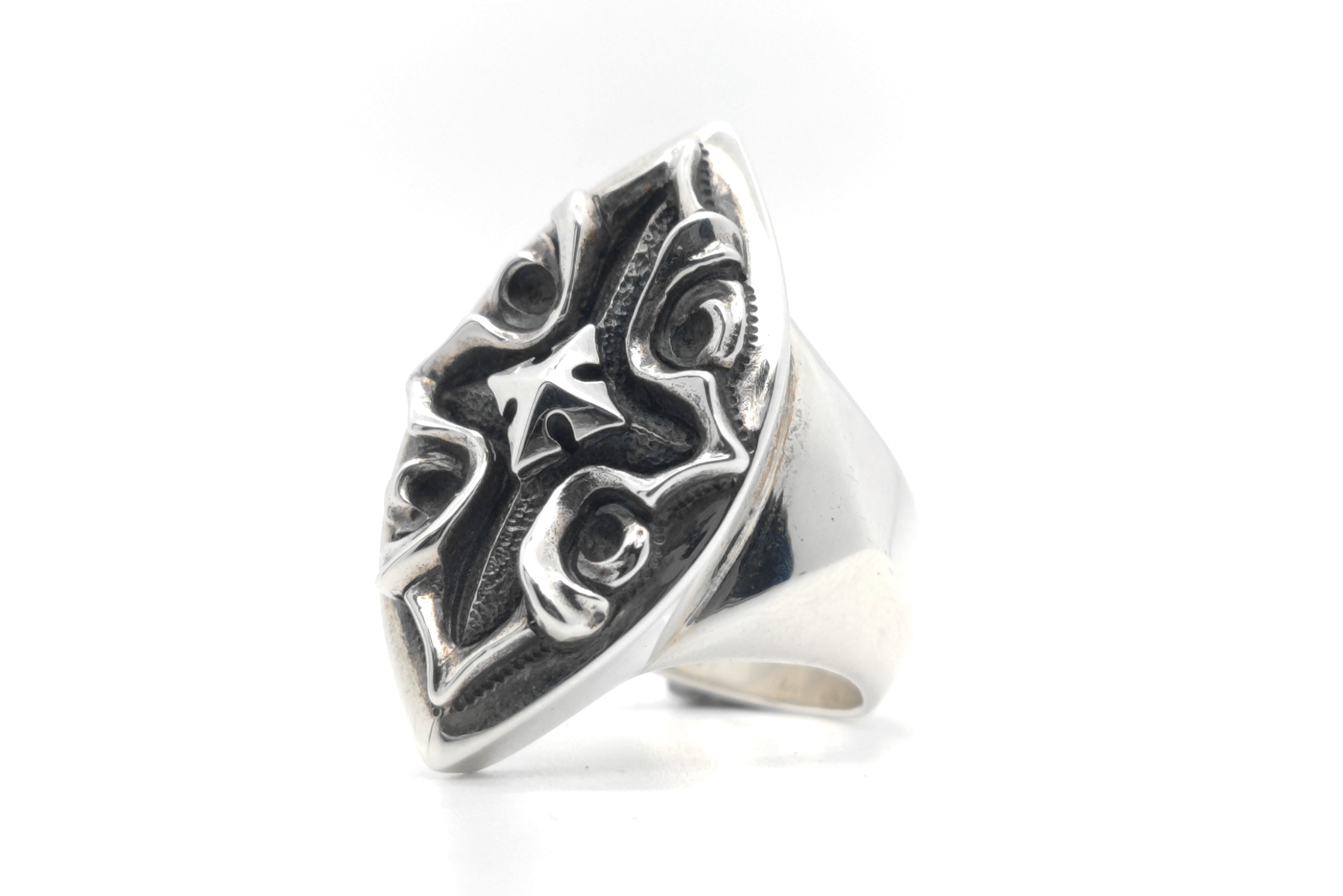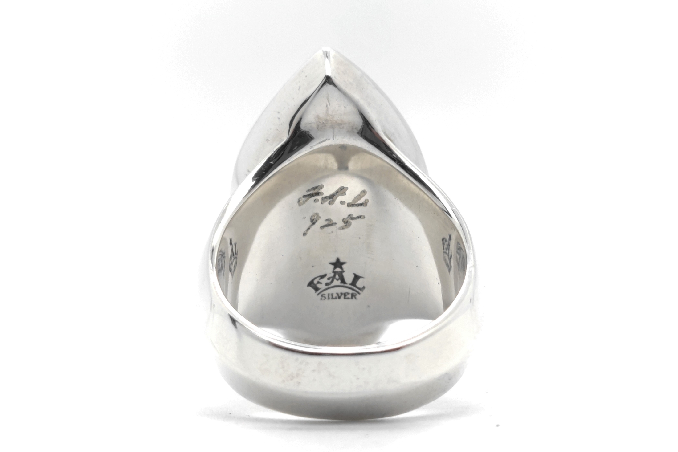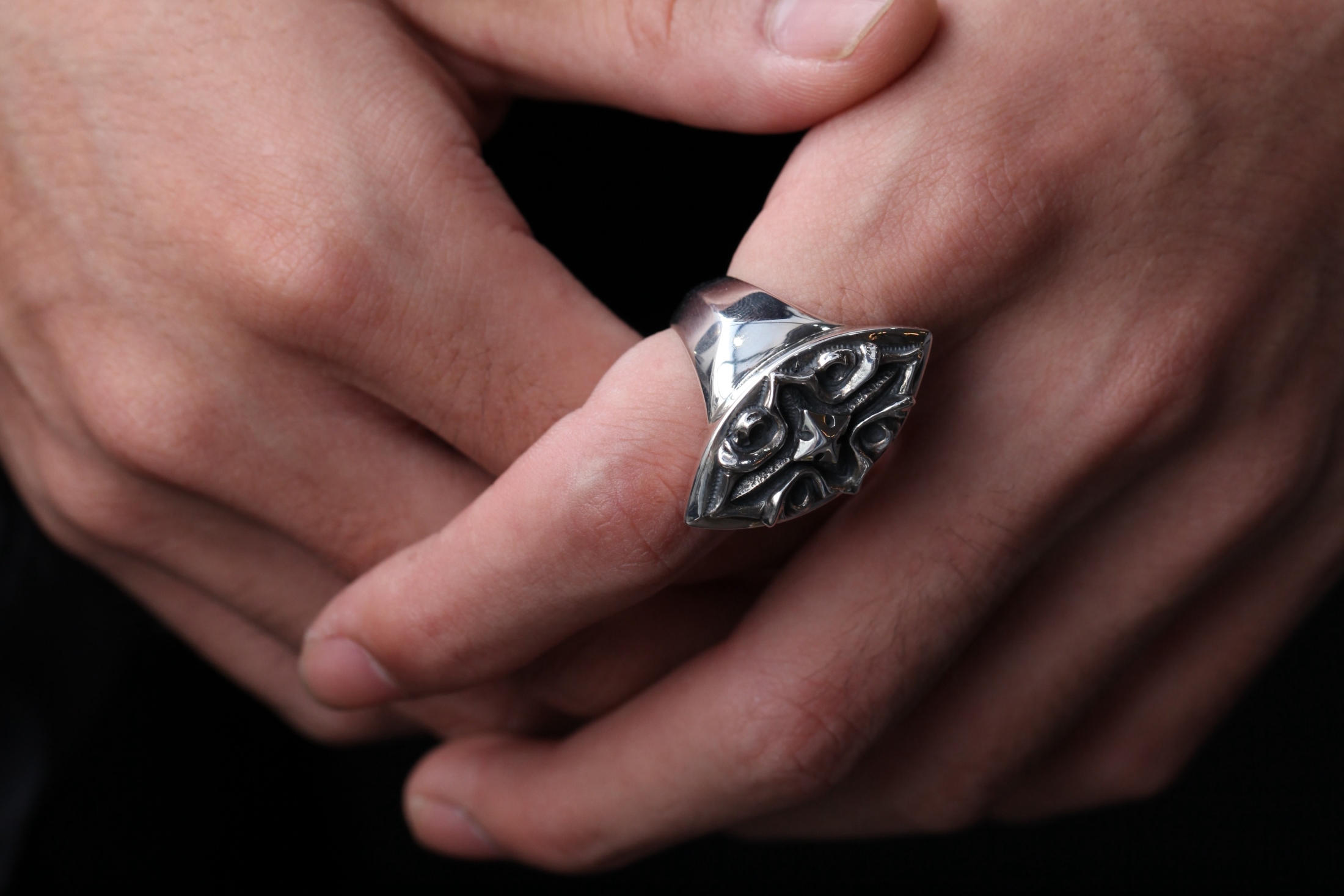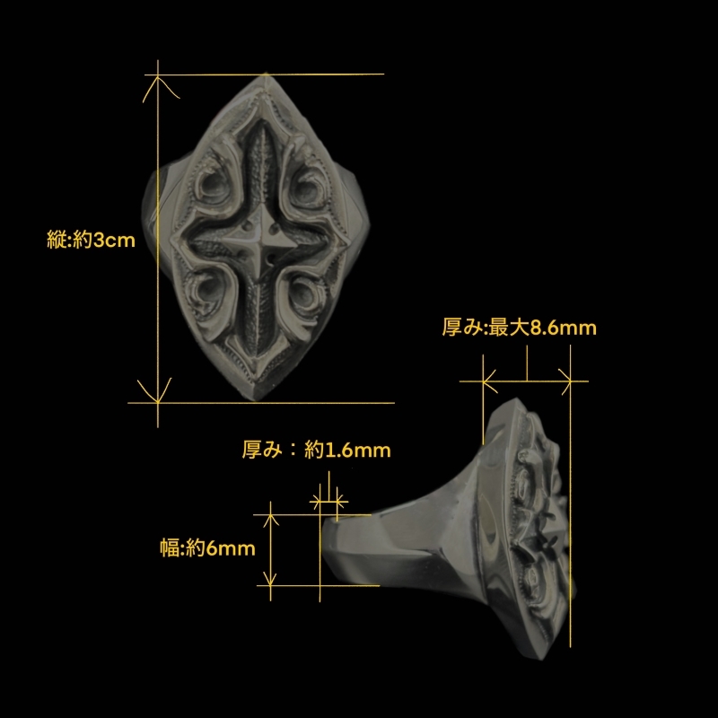 縦長のマーキス型シルエットをベースにしたアンダーテイカーリング。中央には
