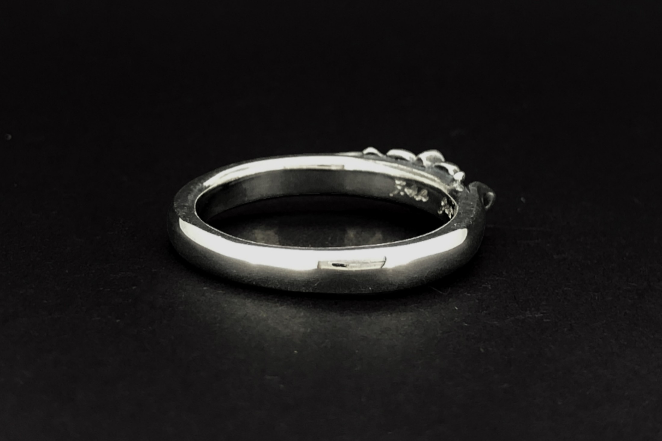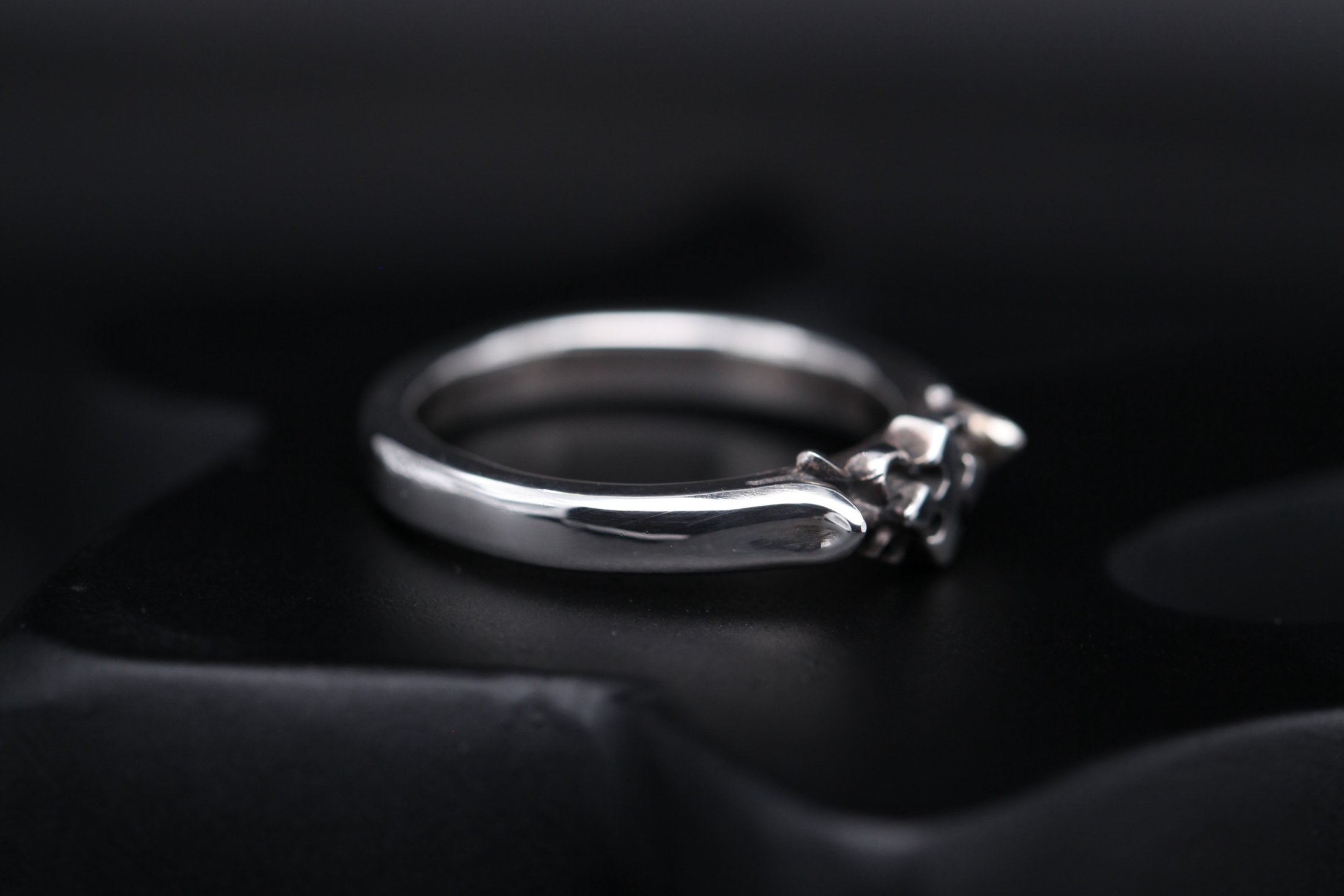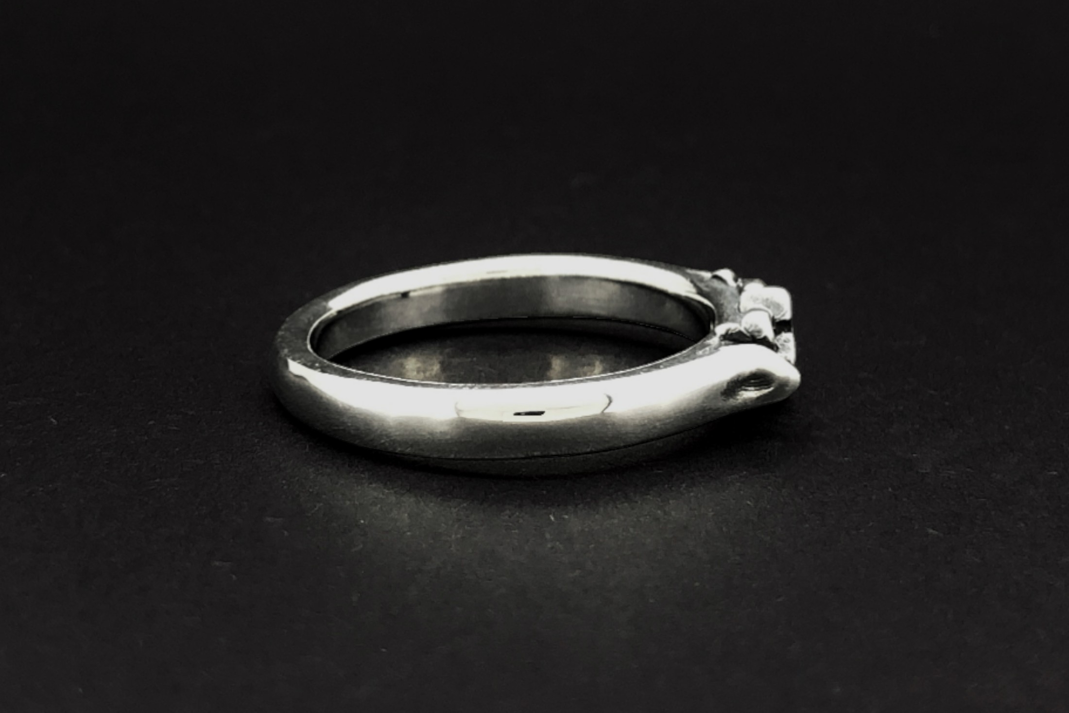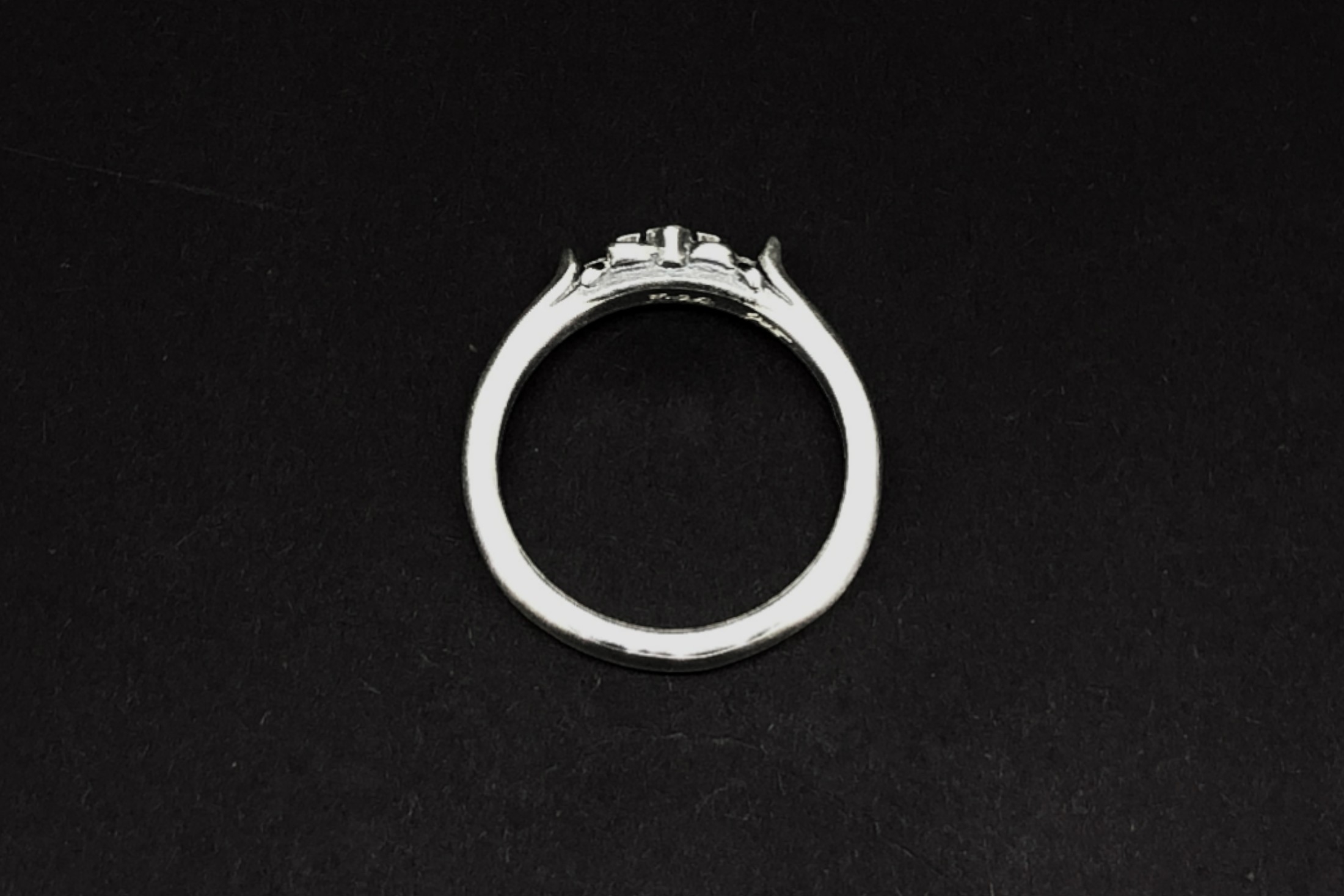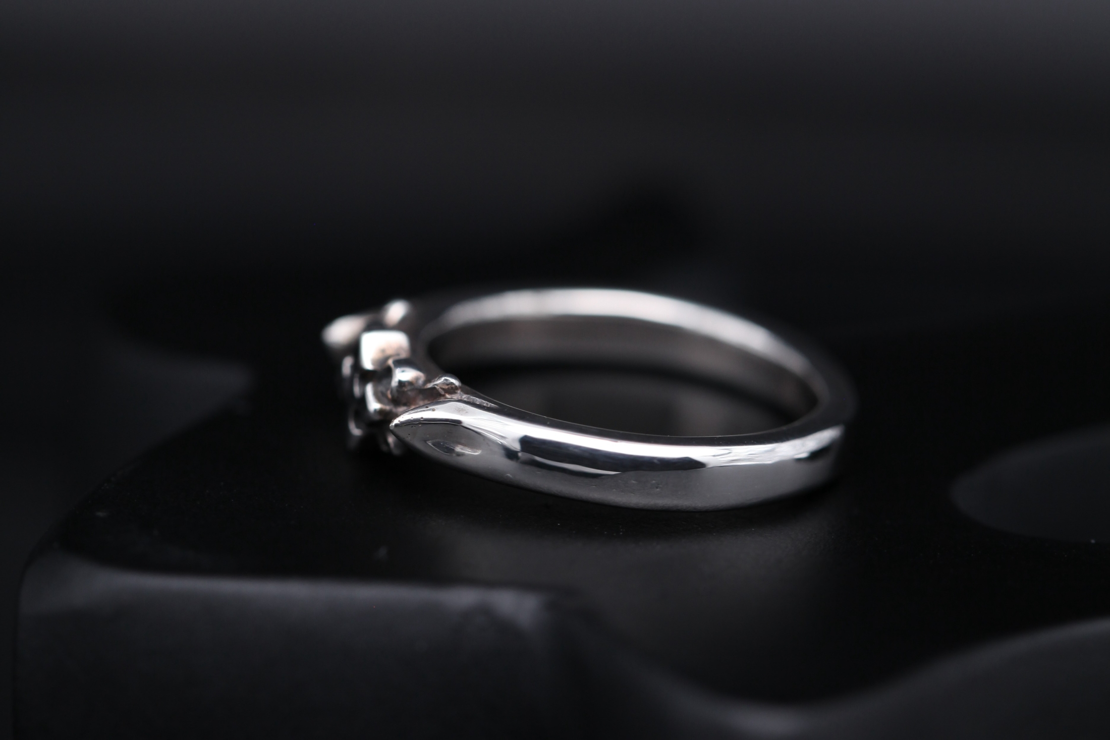細身のリングに、クロスモチーフと細かな装飾を施したデザイン。中央部分は