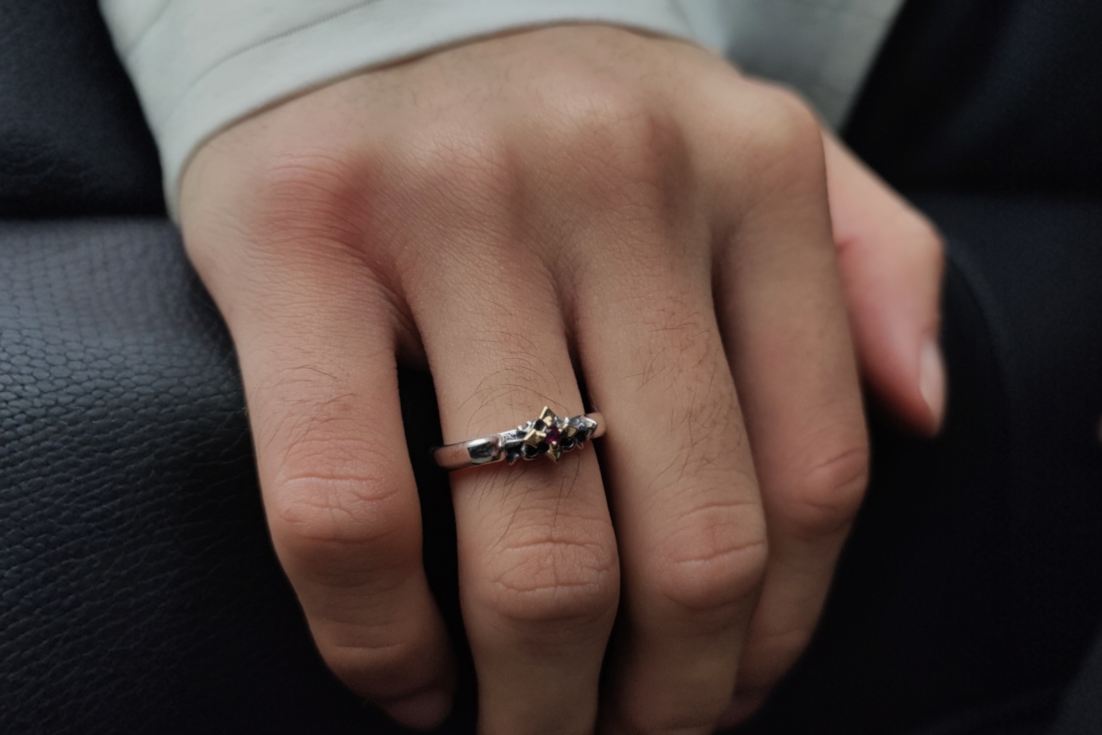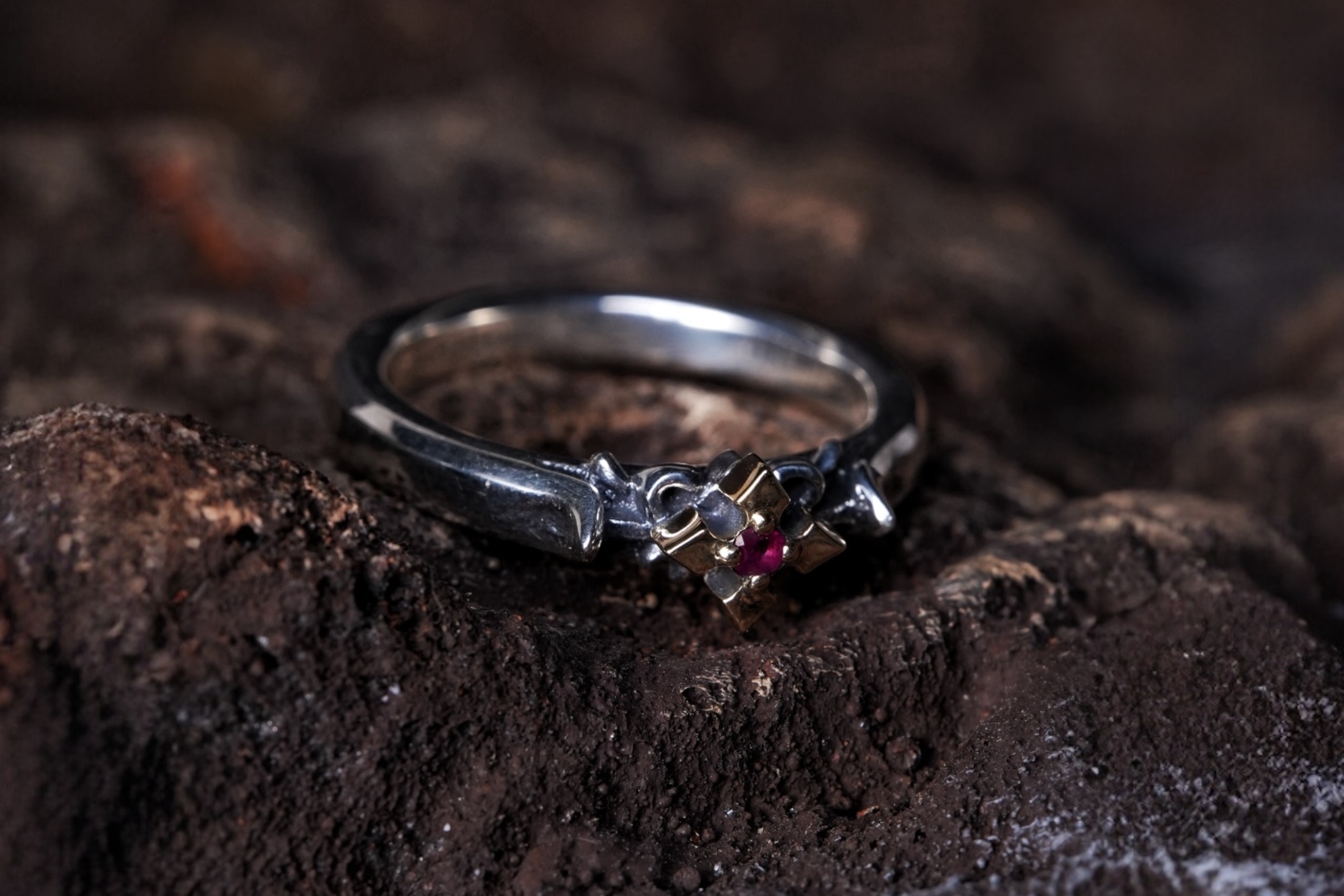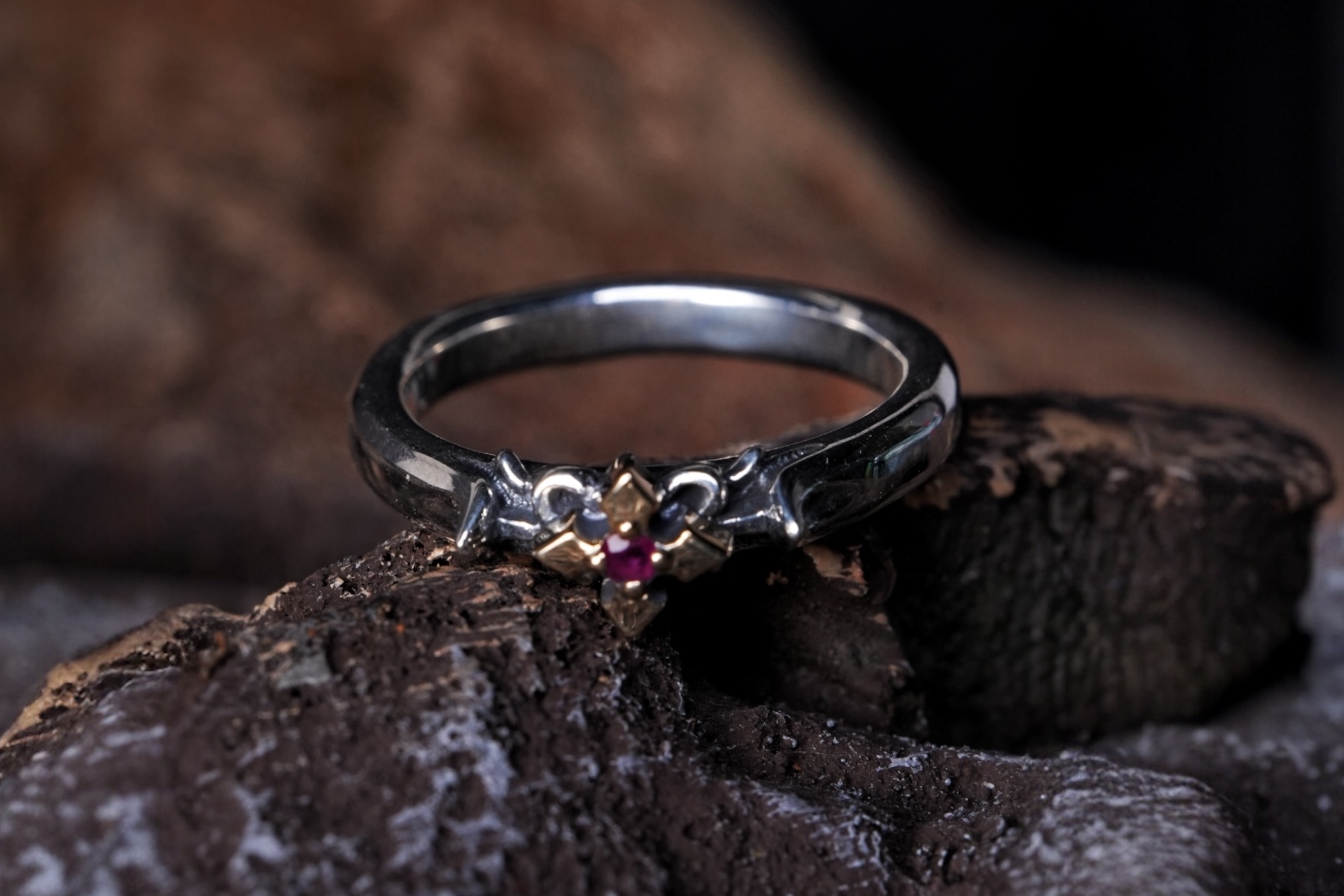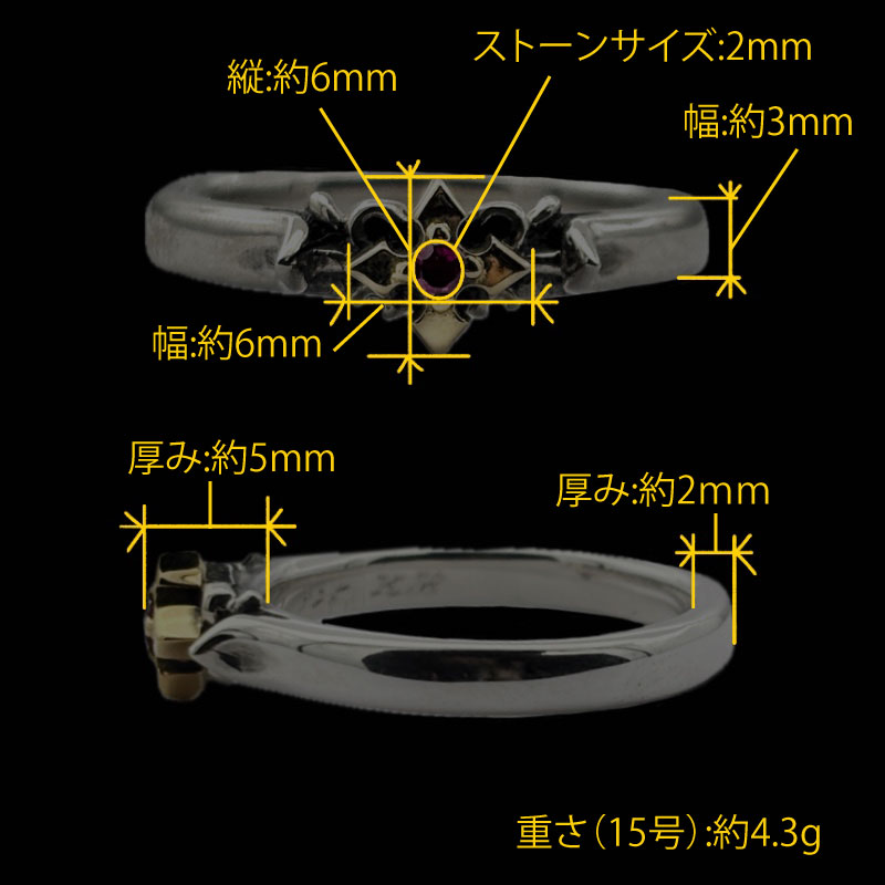 ヴァンパイアブロッサムリング、中央クロスK18センターにルビー