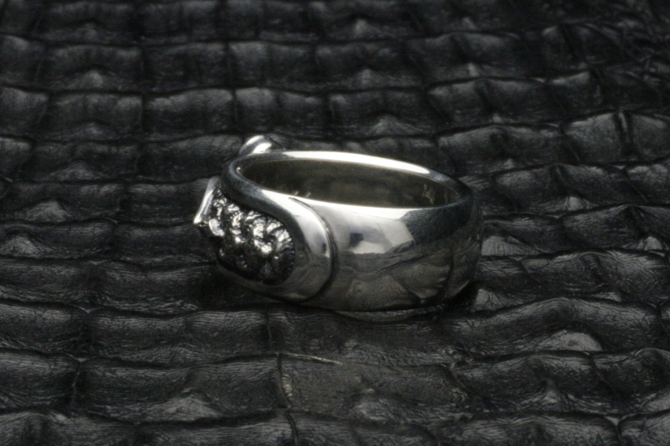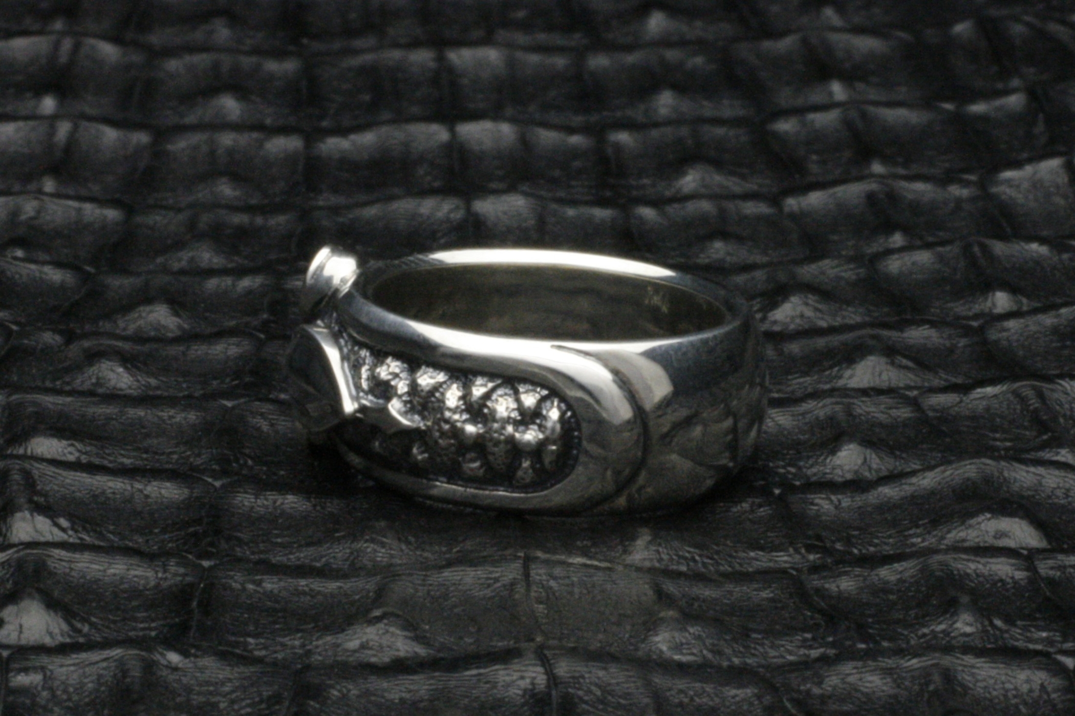 に合わせ、燻し仕上げにしている。その周りの縁部分は鏡面に仕上げ、コント