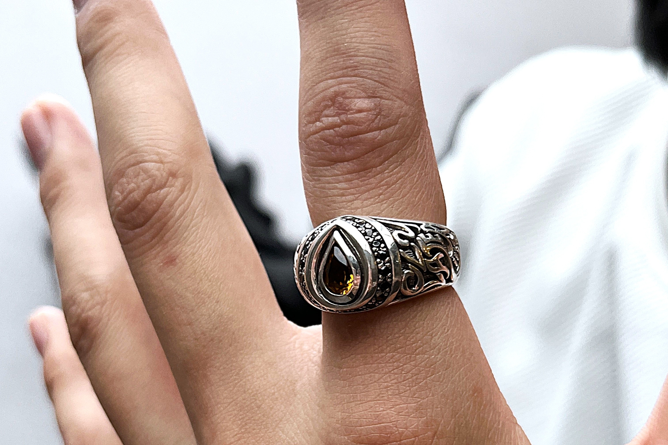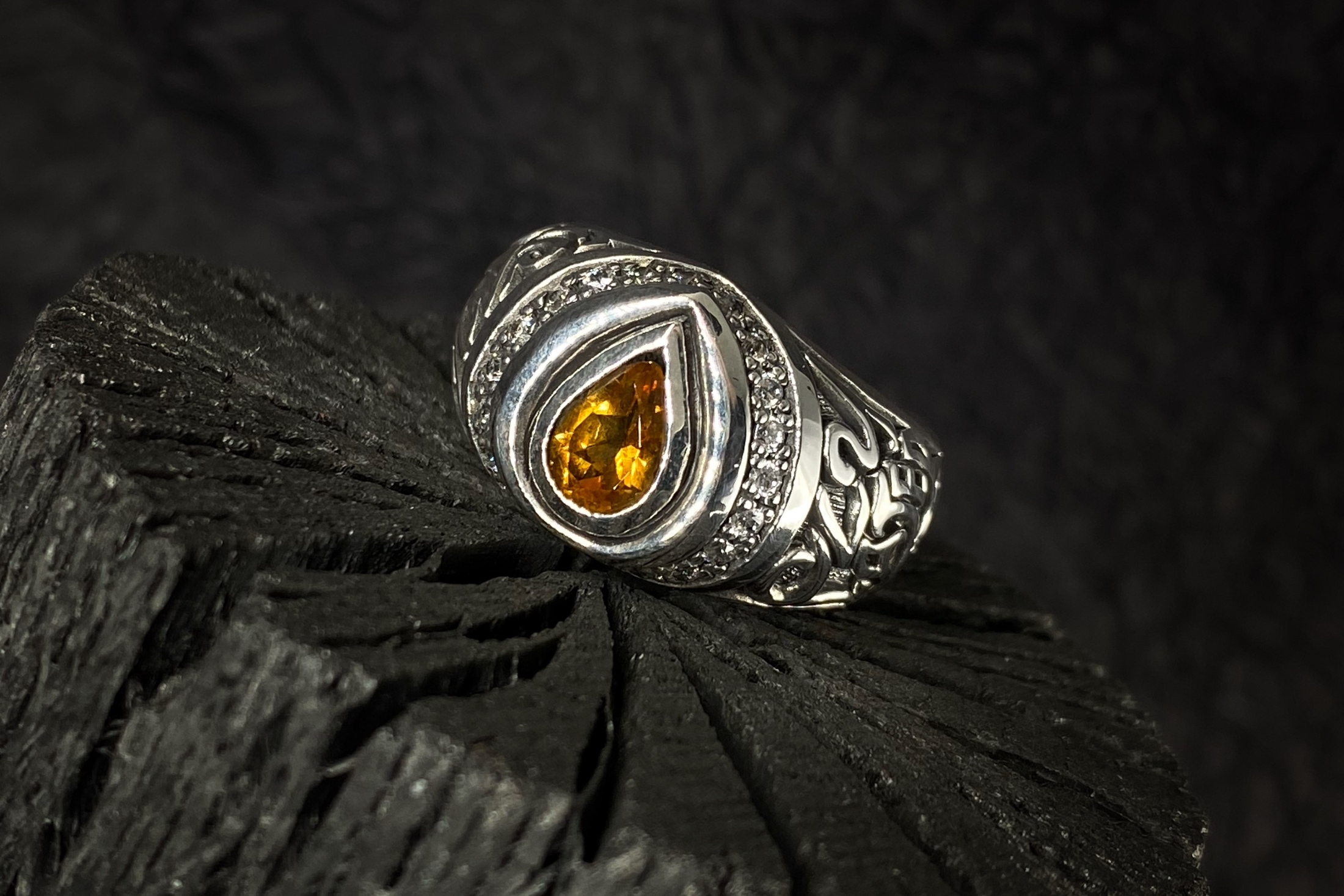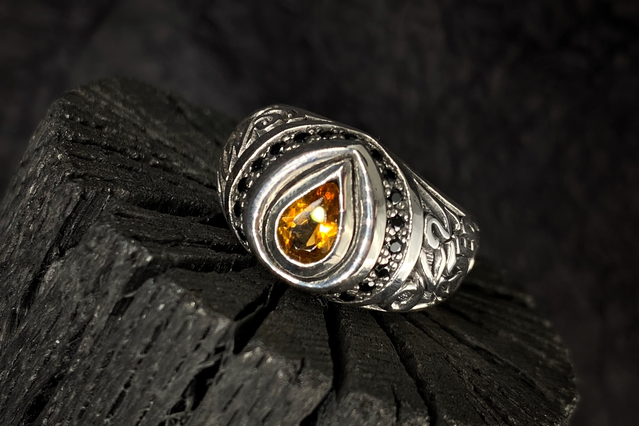 ◆ コンクエスト”PS”リング【シトリン】 CZブラック